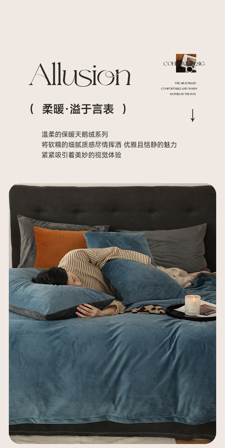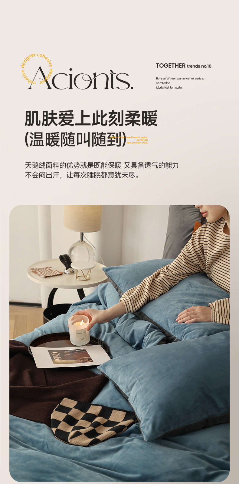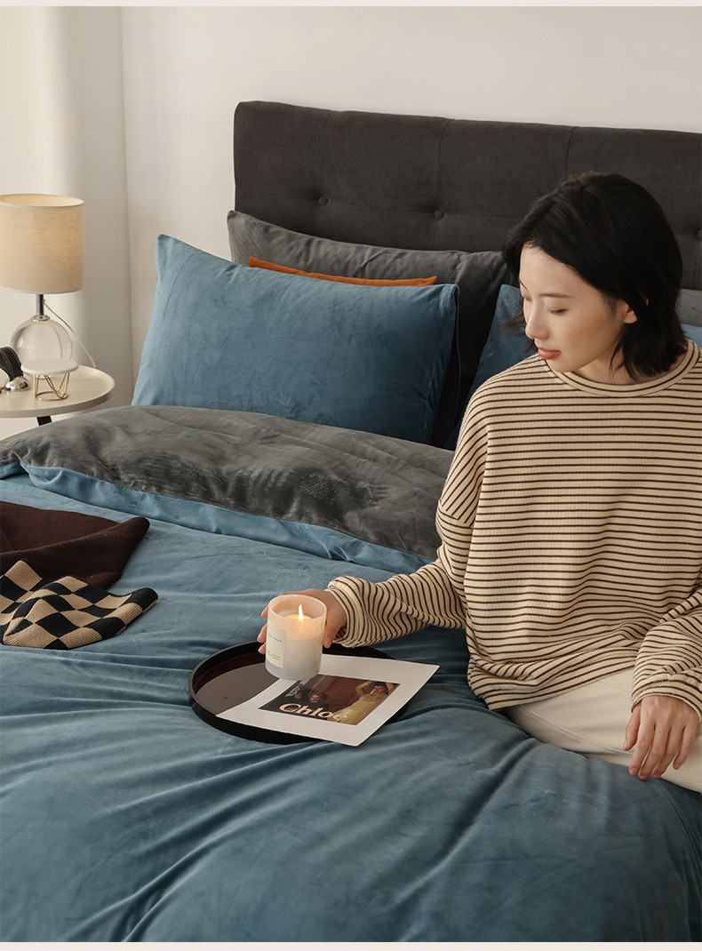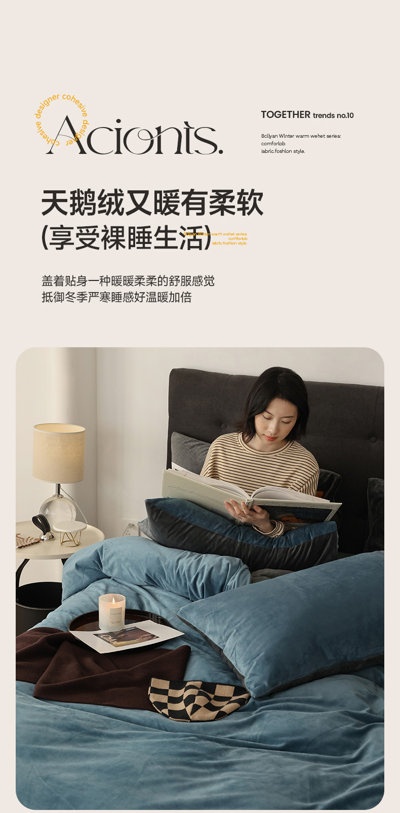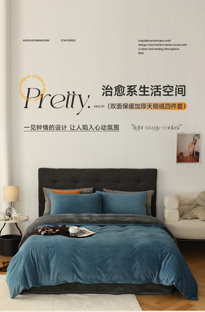 当前位置: 91家纺网 > 商品网购 > 床品套件 > 四件套 > 阳绒四件套 > 寐眠 2023新款双面保暖加厚天鹅绒四件套 雾蓝深灰