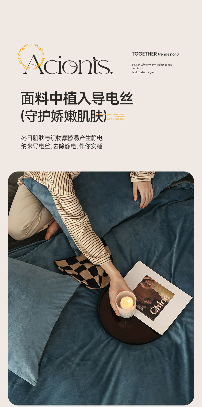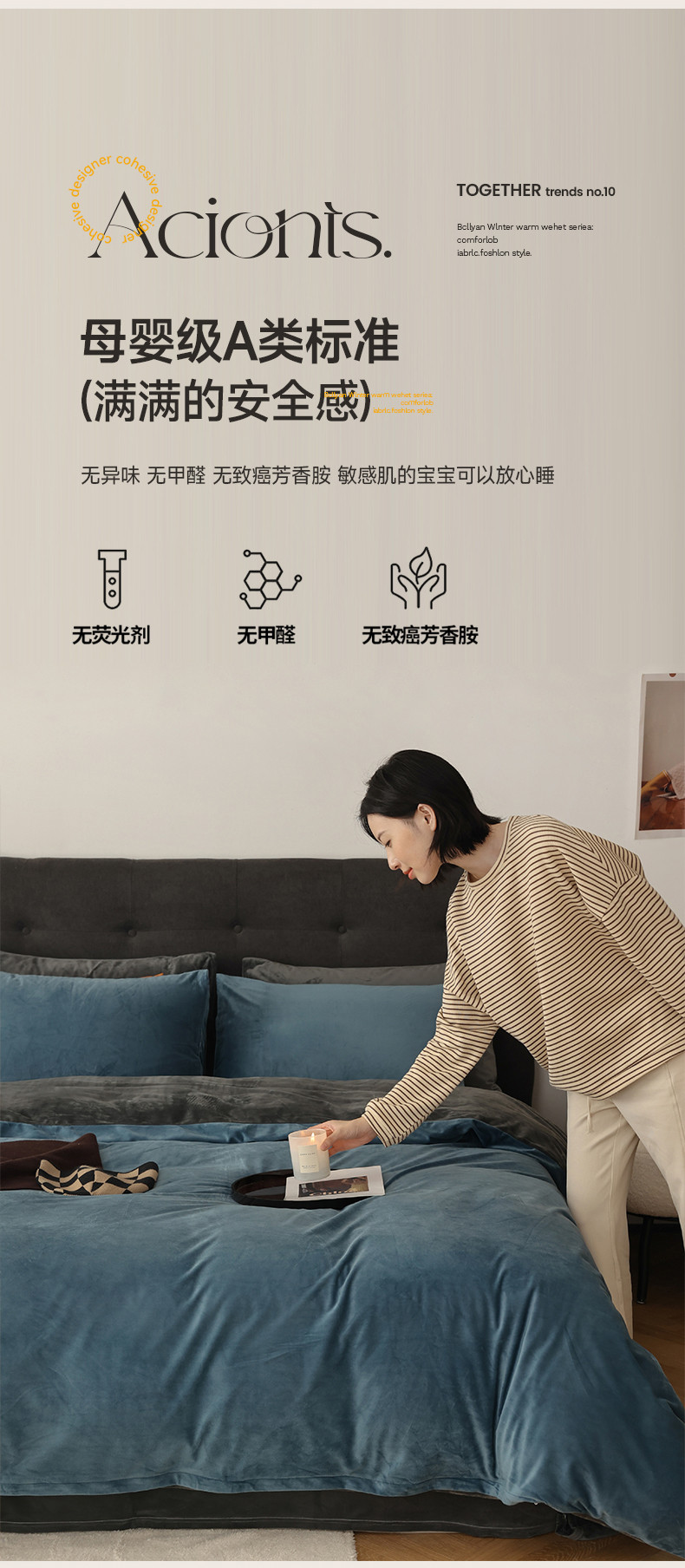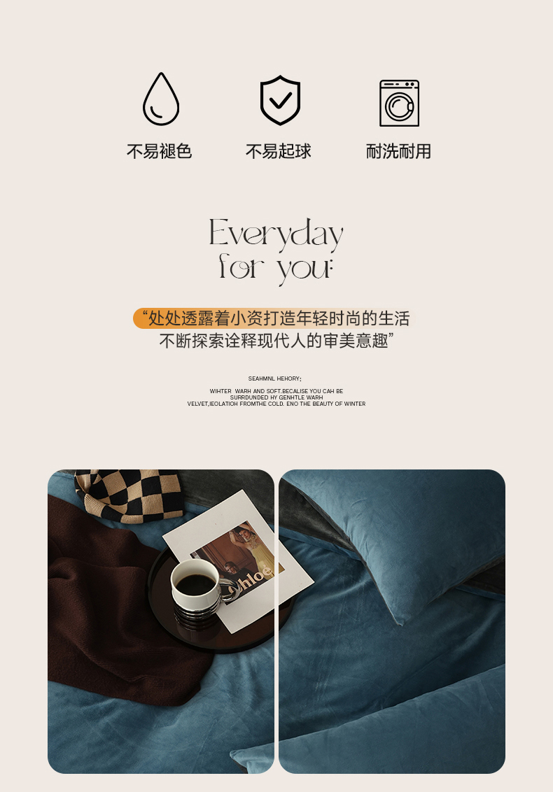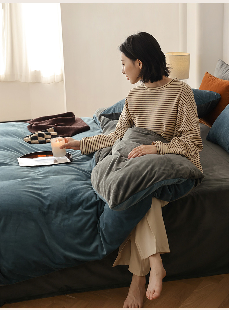 当前位置: 91家纺网 > 商品网购 > 床品套件 > 四件套 > 阳绒四件套 > 寐眠 2023新款双面保暖加厚天鹅绒四件套 雾蓝深灰