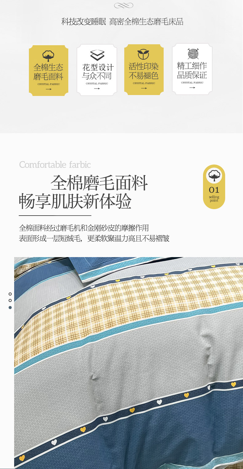 商品名称:晶缦家纺 2023新款风尚系全棉生态磨毛多规格单被套 艾兰星