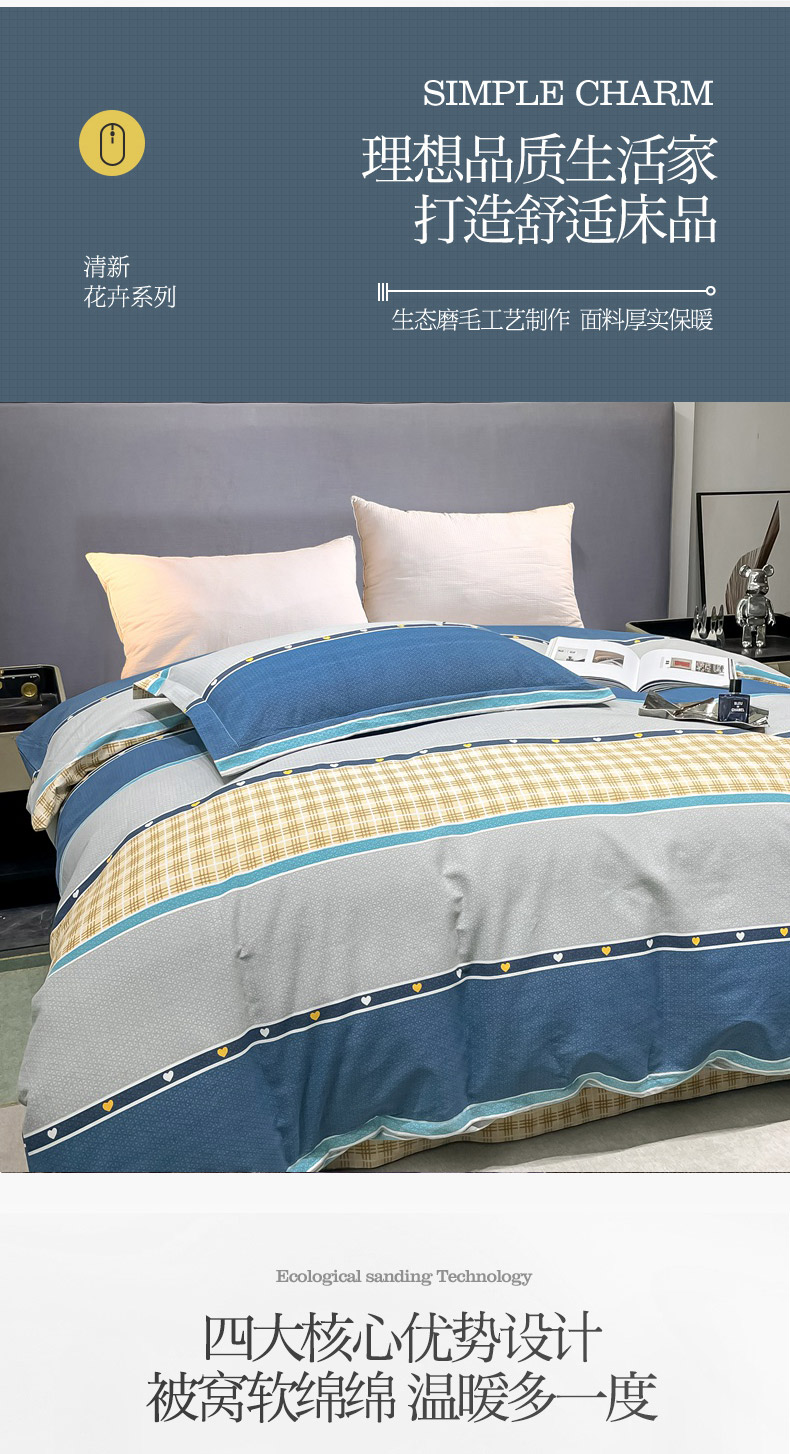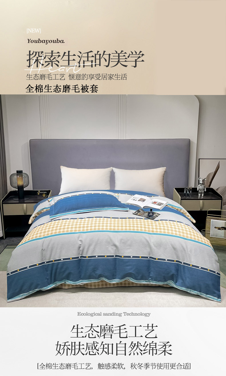 晶缦家纺 2023新款风尚系全棉生态磨毛多规格单被套 艾兰星