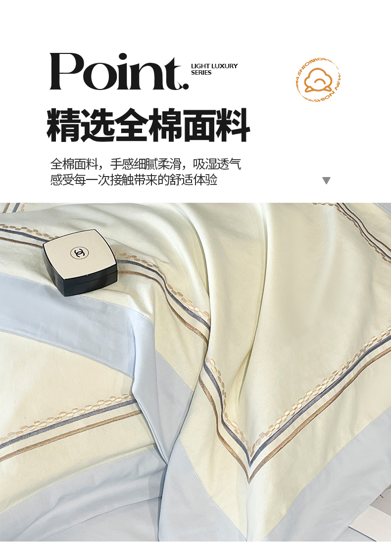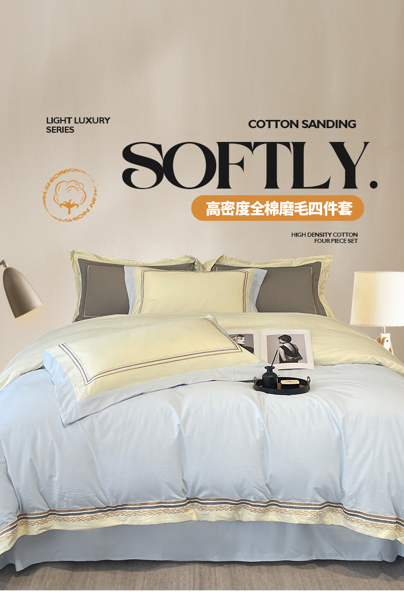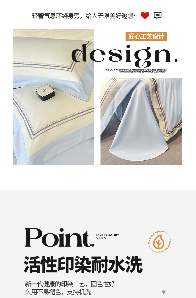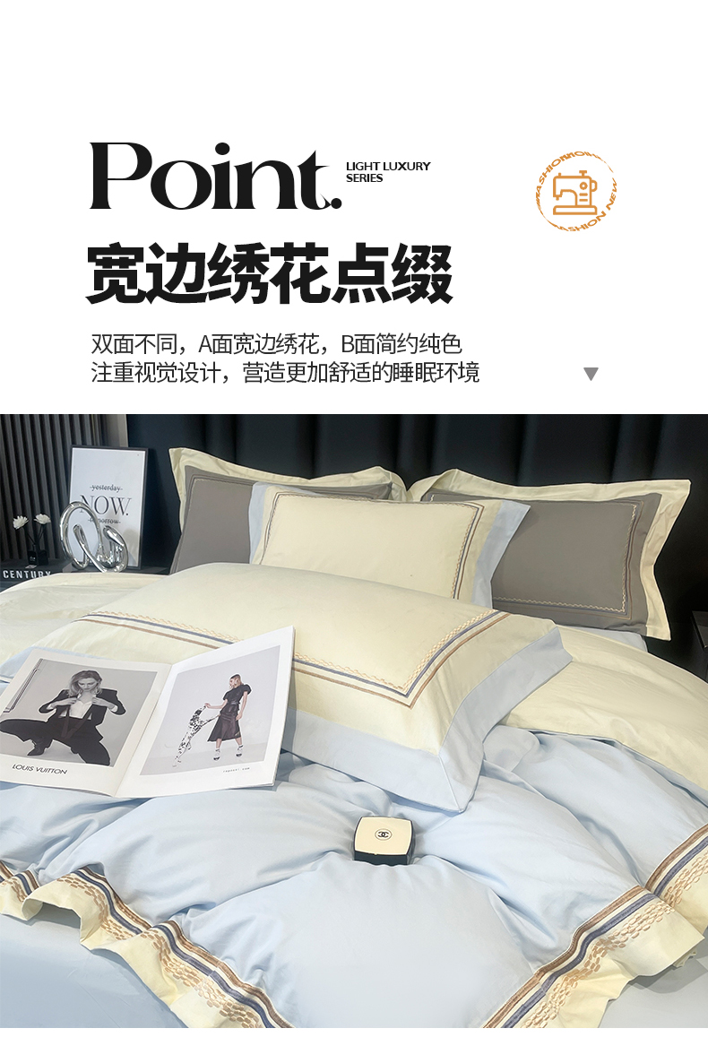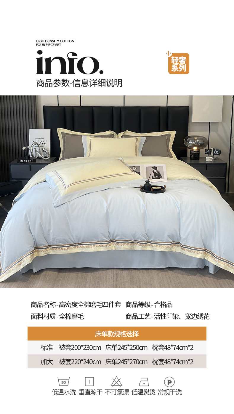 商品名称:懒猫 2024新款高精密全棉磨毛绣花四件套 泰洛-梦境蓝