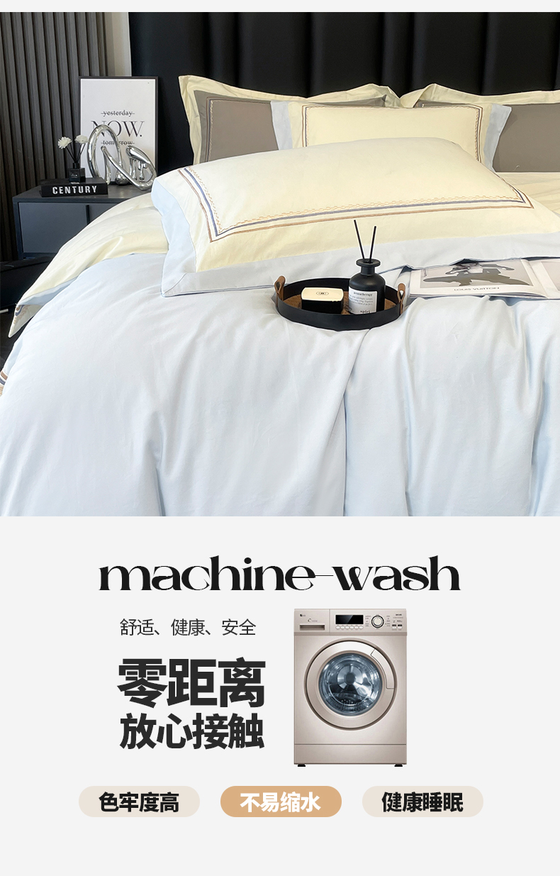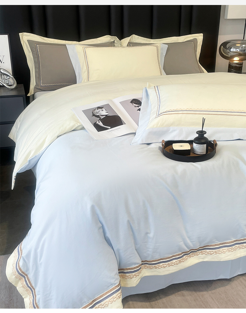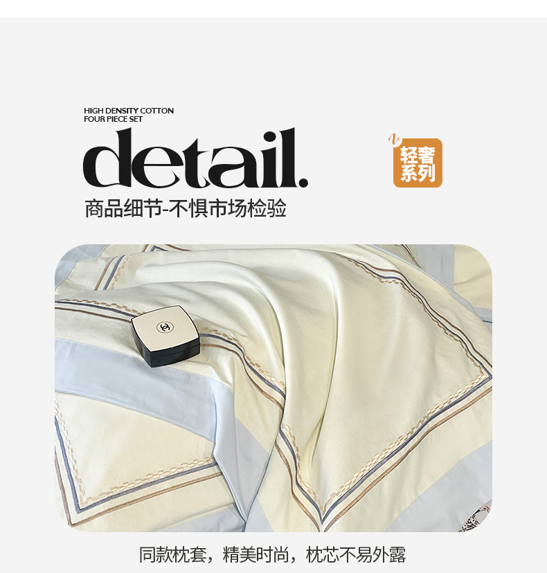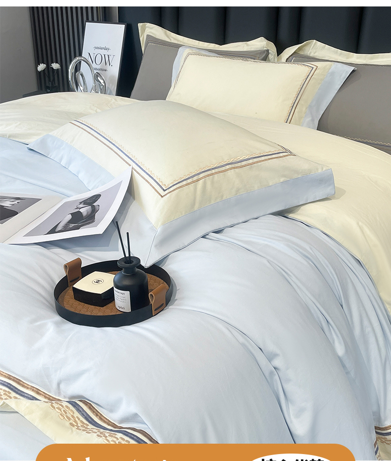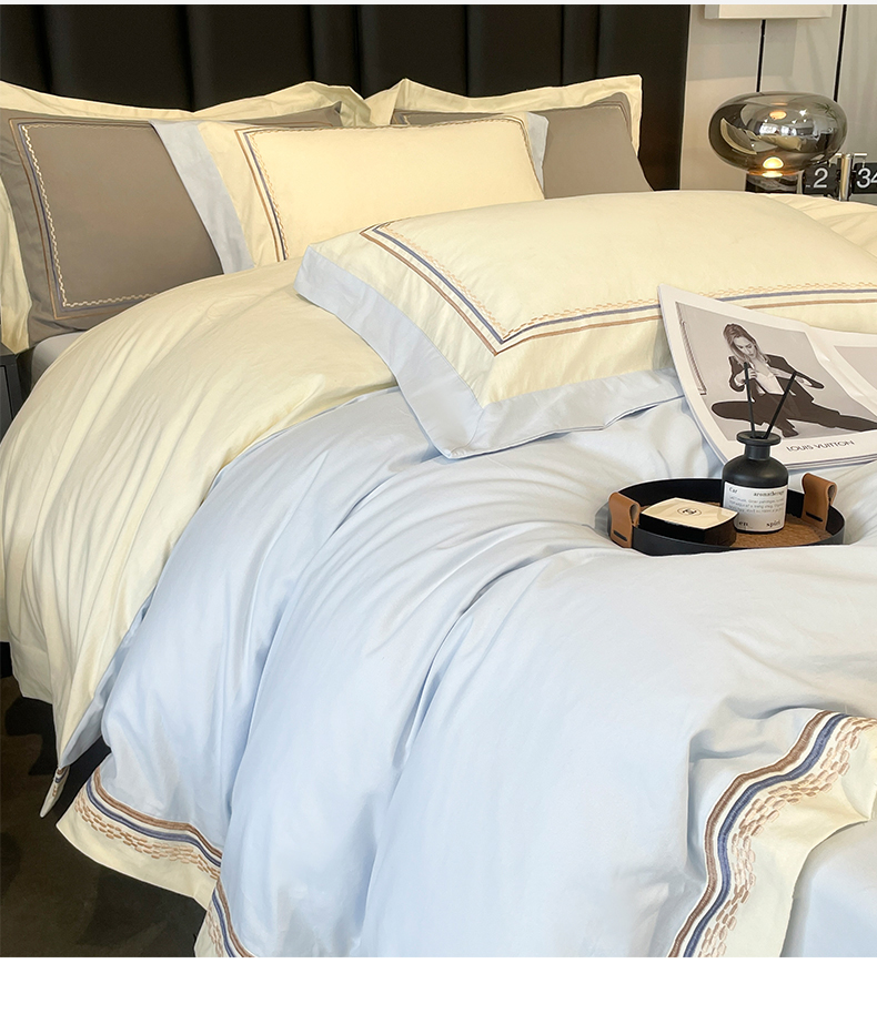 商品名称:懒猫 2024新款高精密全棉磨毛绣花四件套 泰洛-梦境蓝