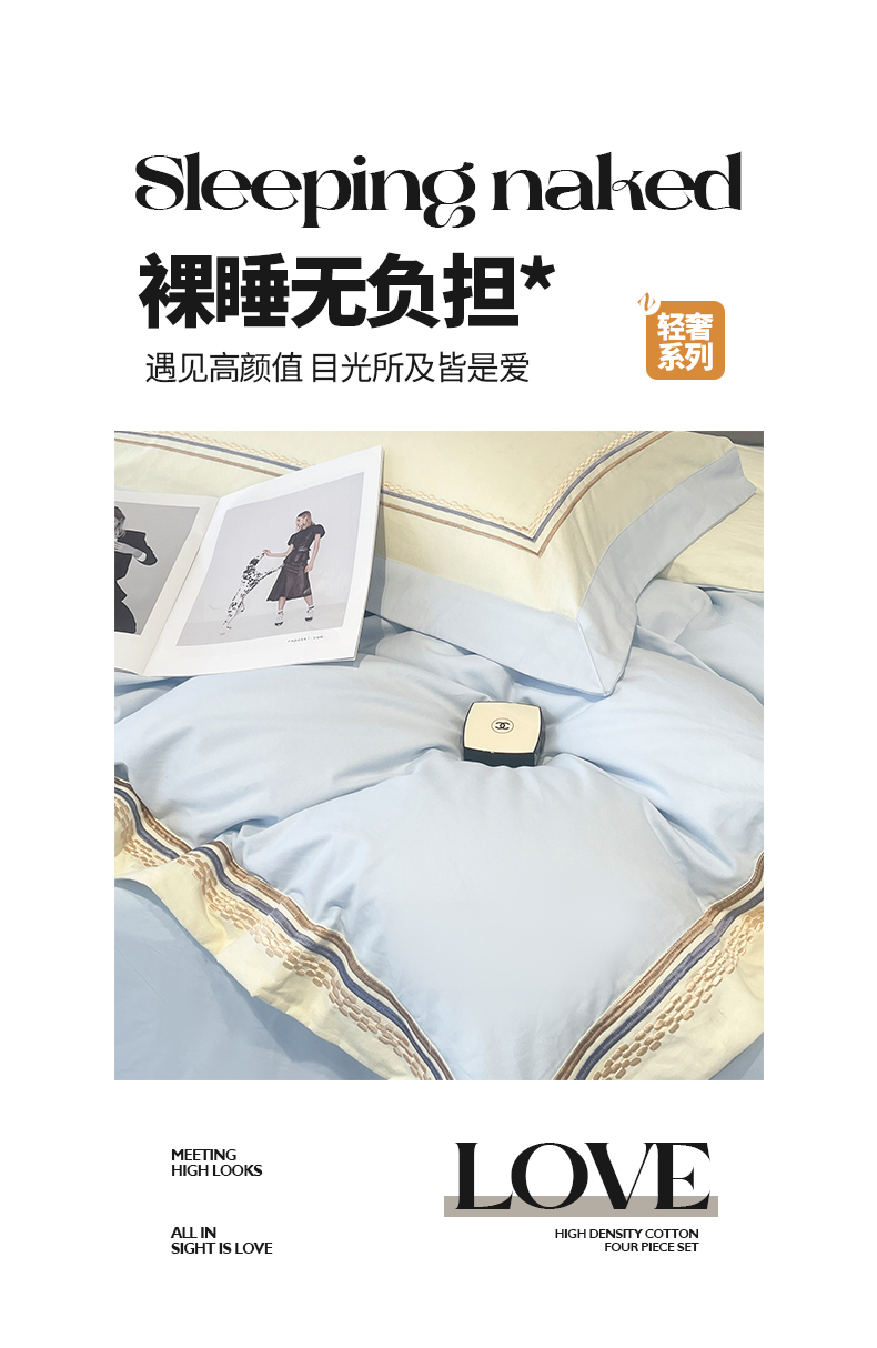 懒猫 2024新款高精密全棉磨毛绣花四件套 泰洛-梦境蓝