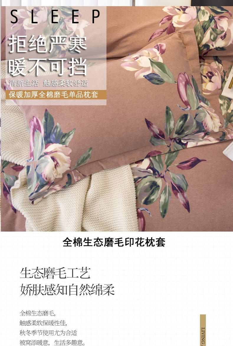 商品名称:晶缦家纺 2023新款风尚系全棉生态磨毛多规格单品枕套 浣溪沙-豆沙
