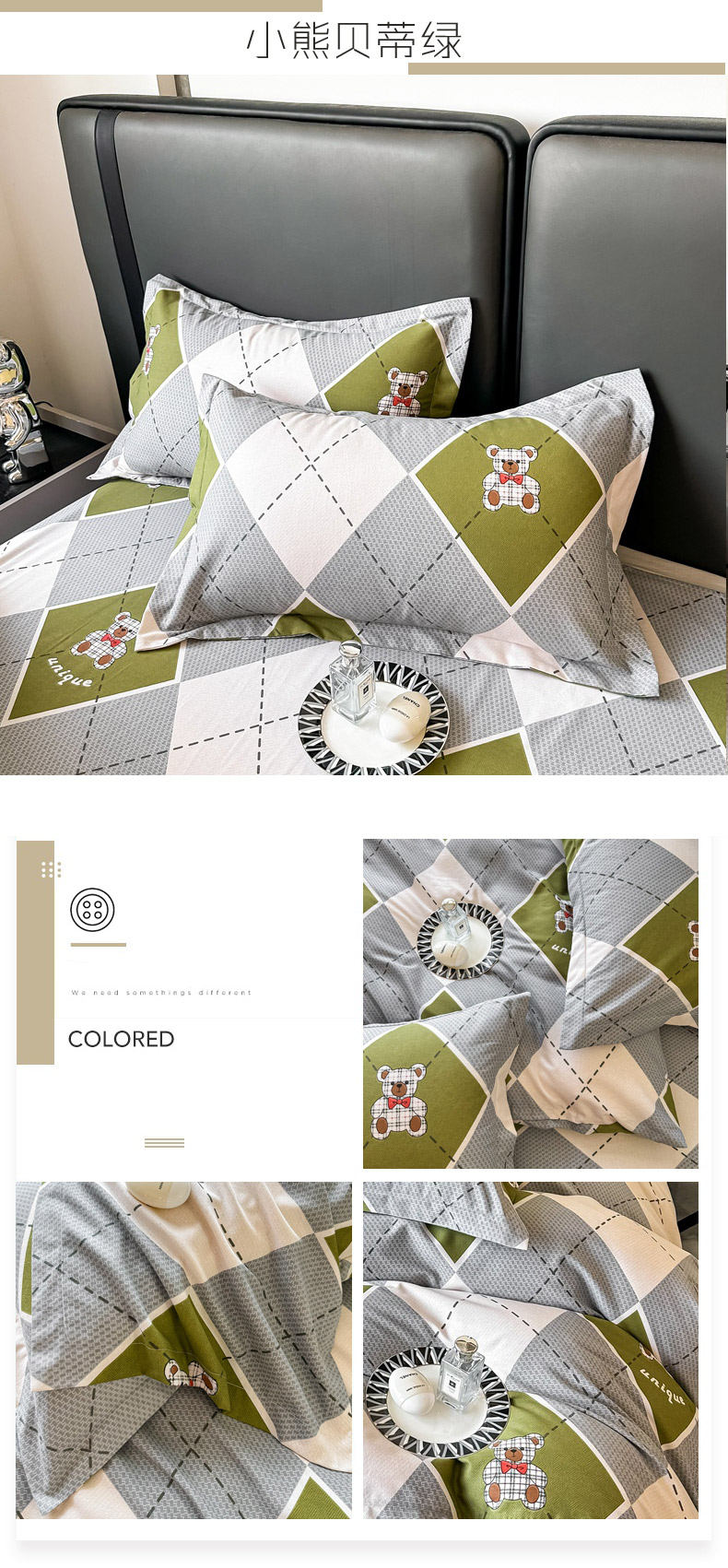 晶缦家纺 2023新款风尚系全棉生态磨毛多规格单品枕套 小熊贝蒂绿