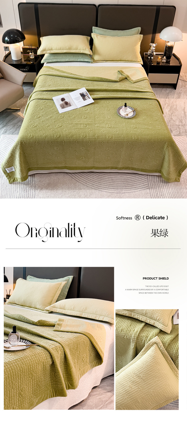 诗黛尔 2023新款天丝绒夹棉床盖三件套系列 果绿