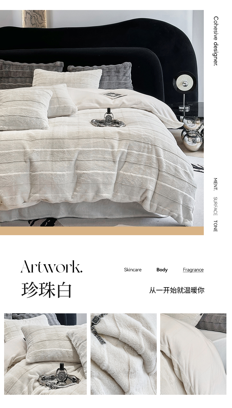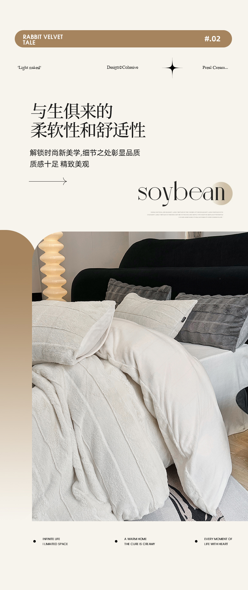 丝芙妮家居(原乐视家纺) 2024新款兔兔绒牛奶绒四件套-黎梦系列 黎梦-珍珠白