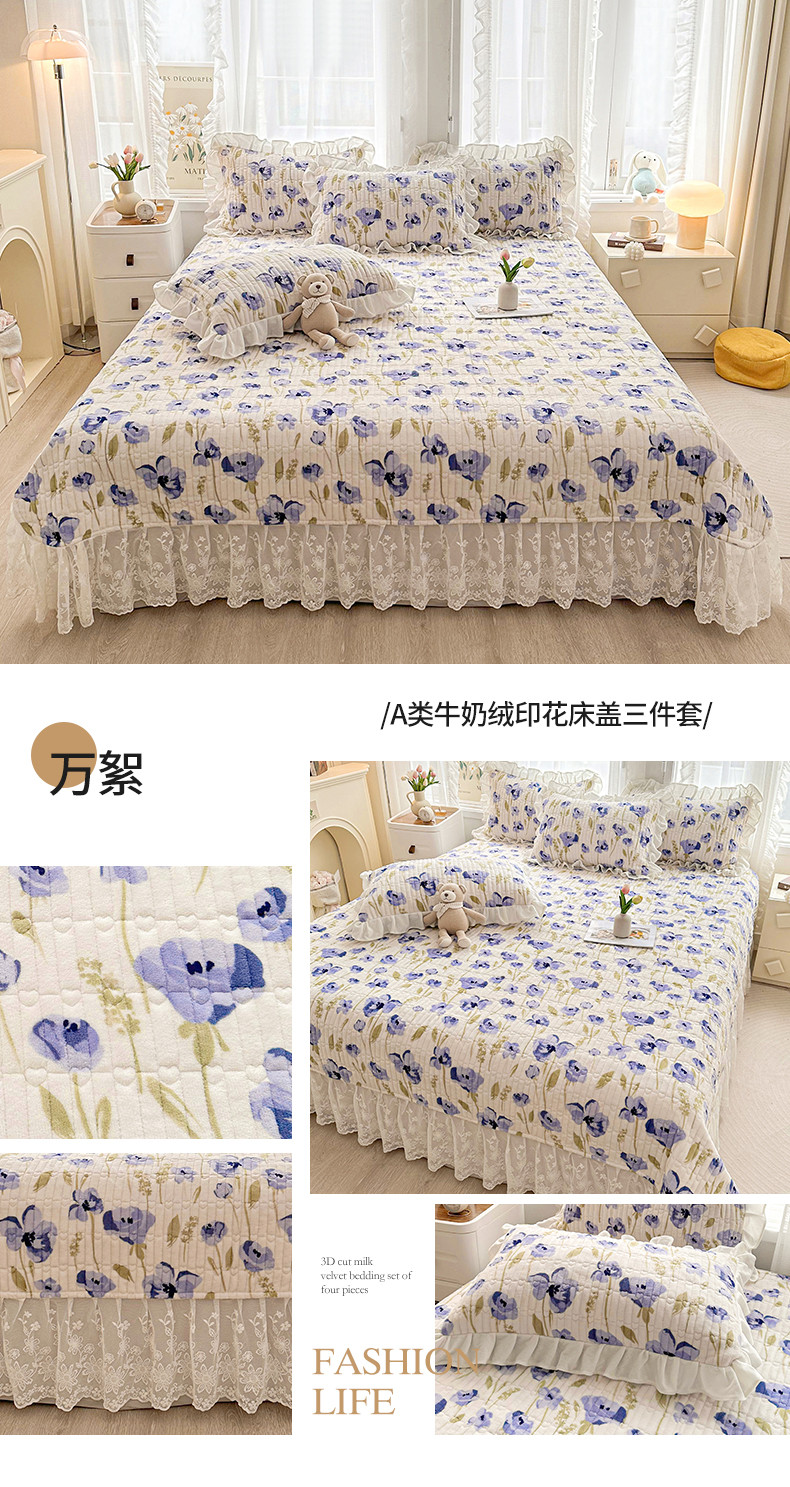 商品名称:宜凡家纺 2023新款牛奶绒印花夹棉被套床盖三件套 万絮
