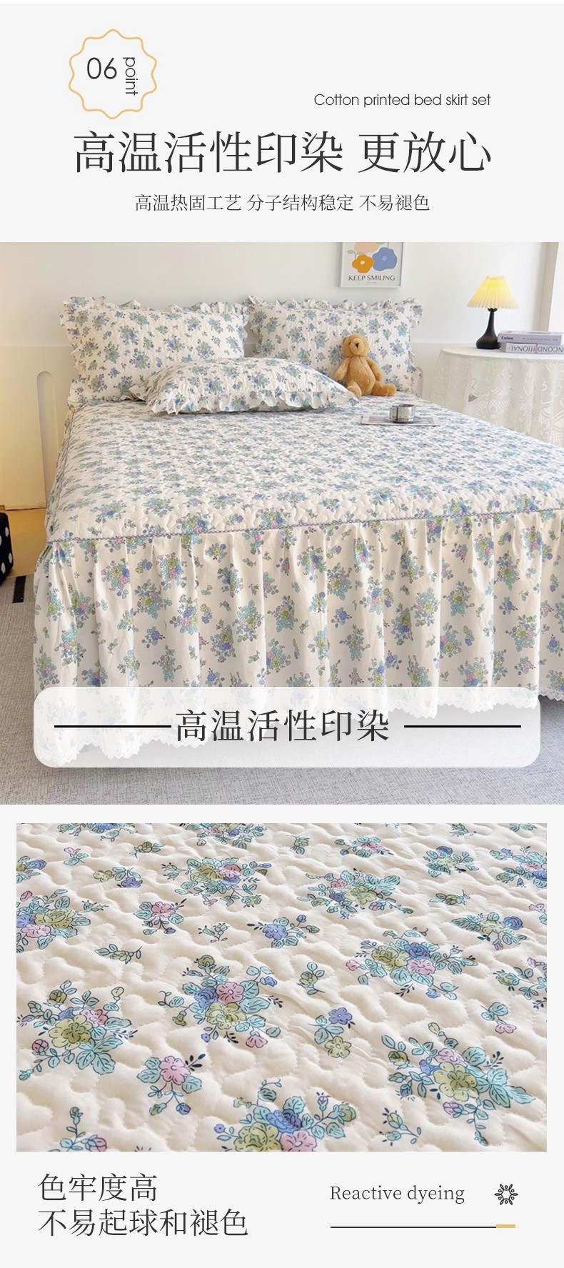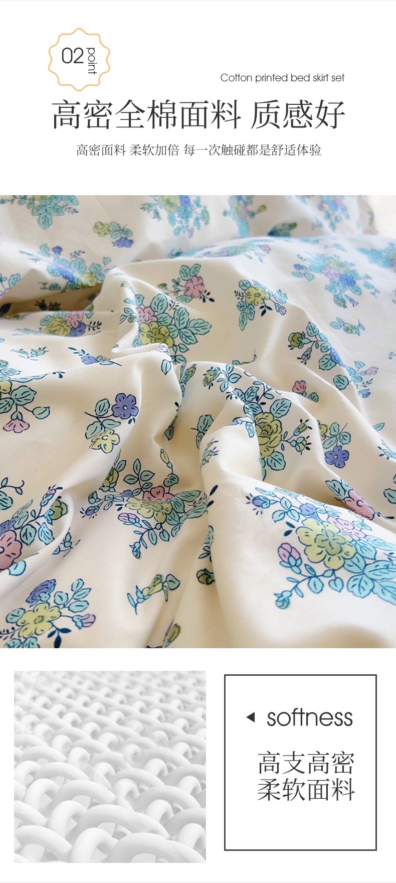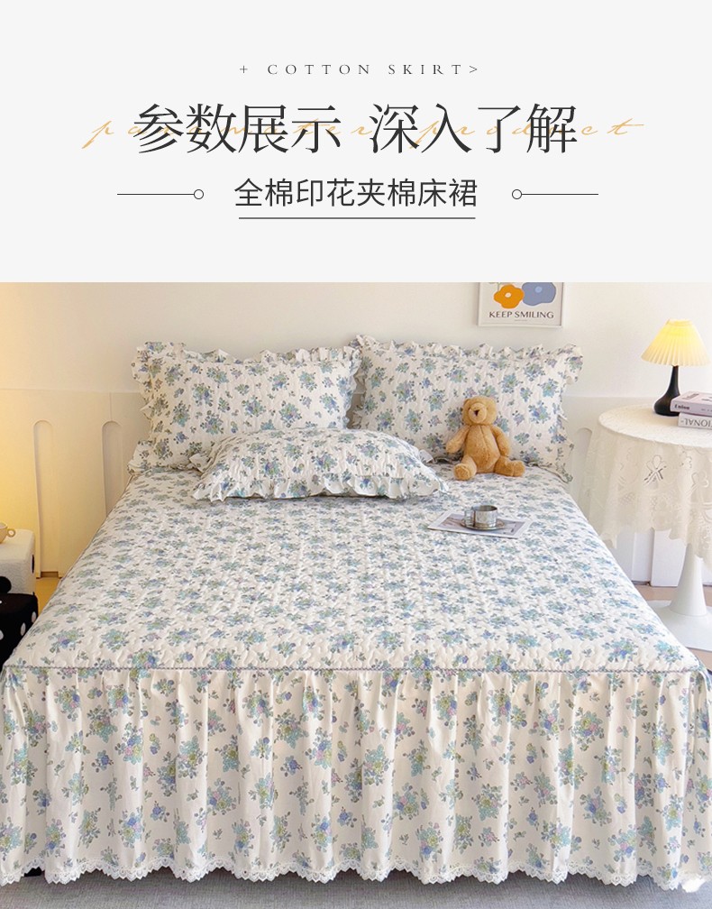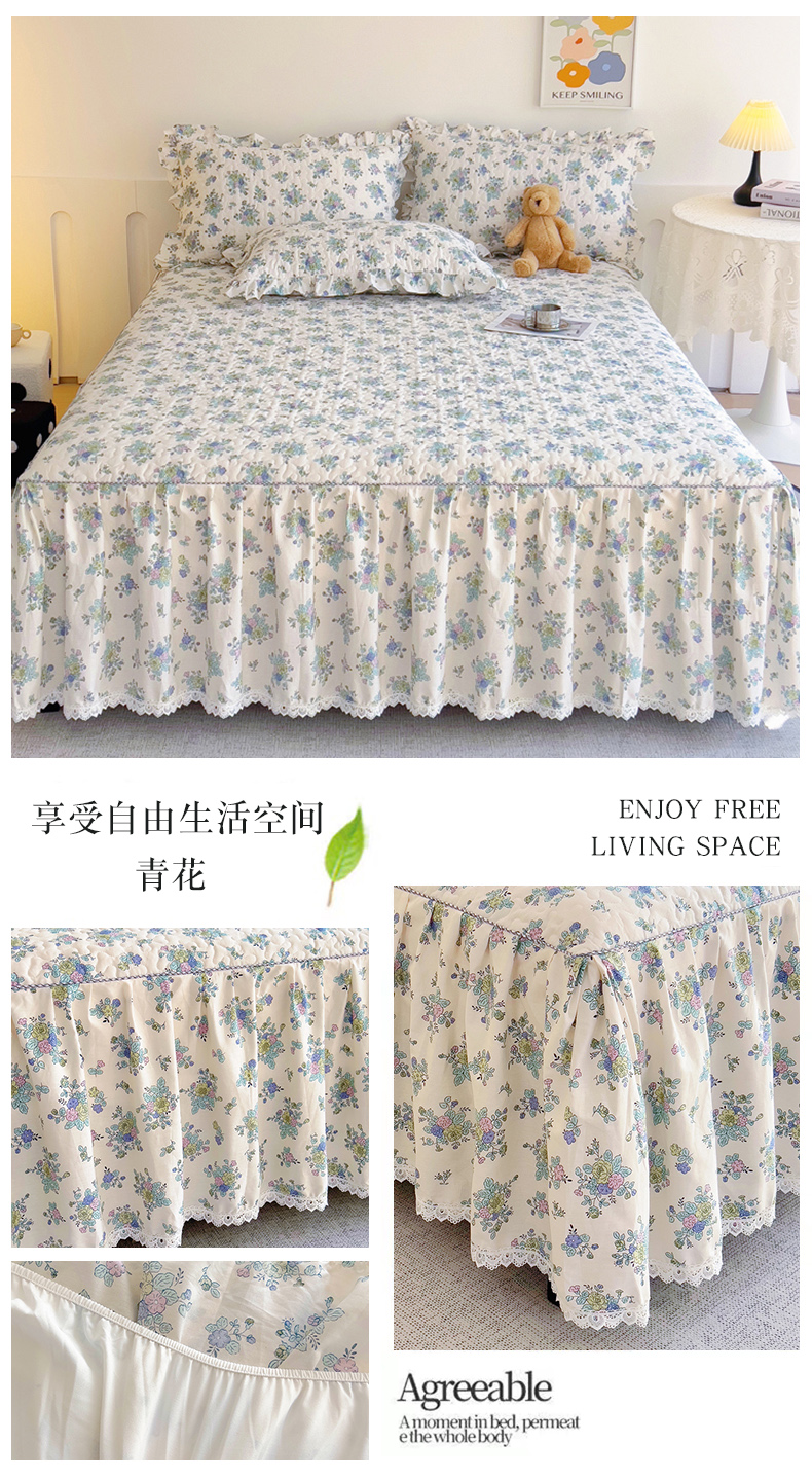 十个点 2024新款全棉印花床笠式单品床裙-樱桃系列 青花