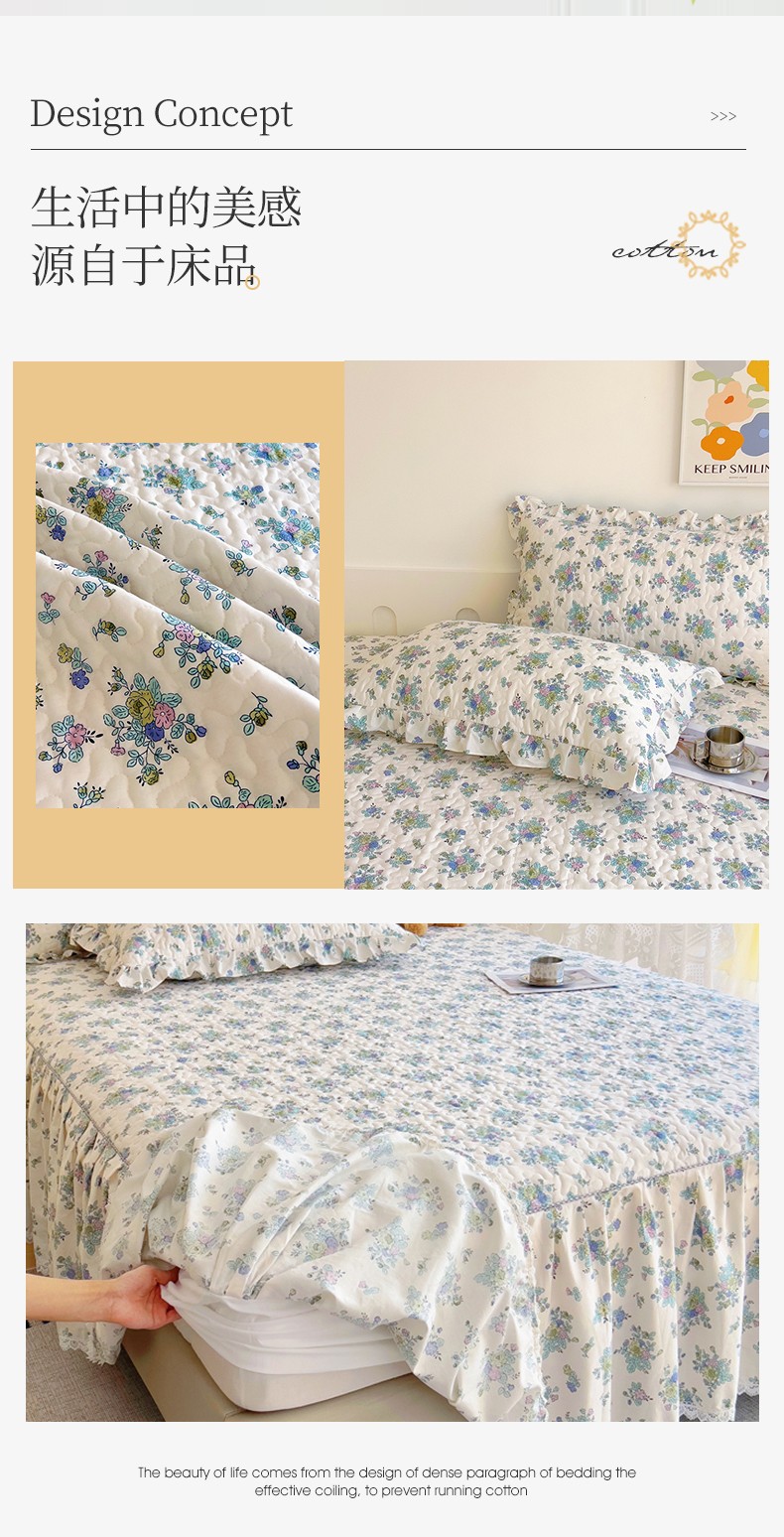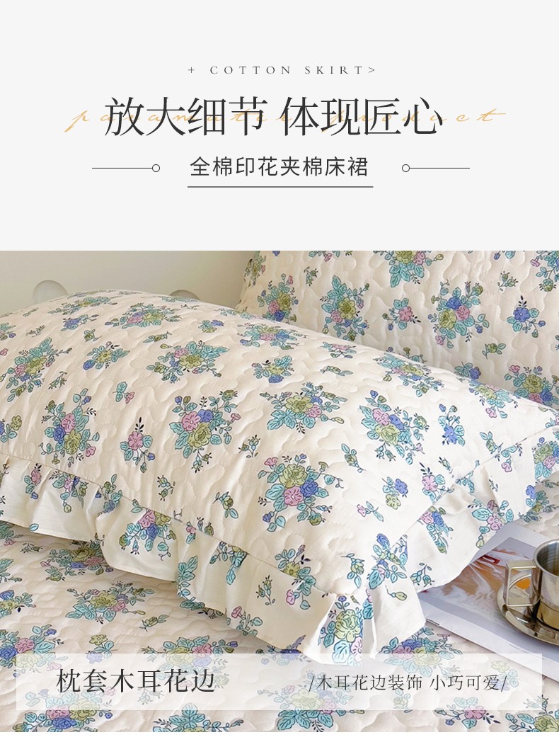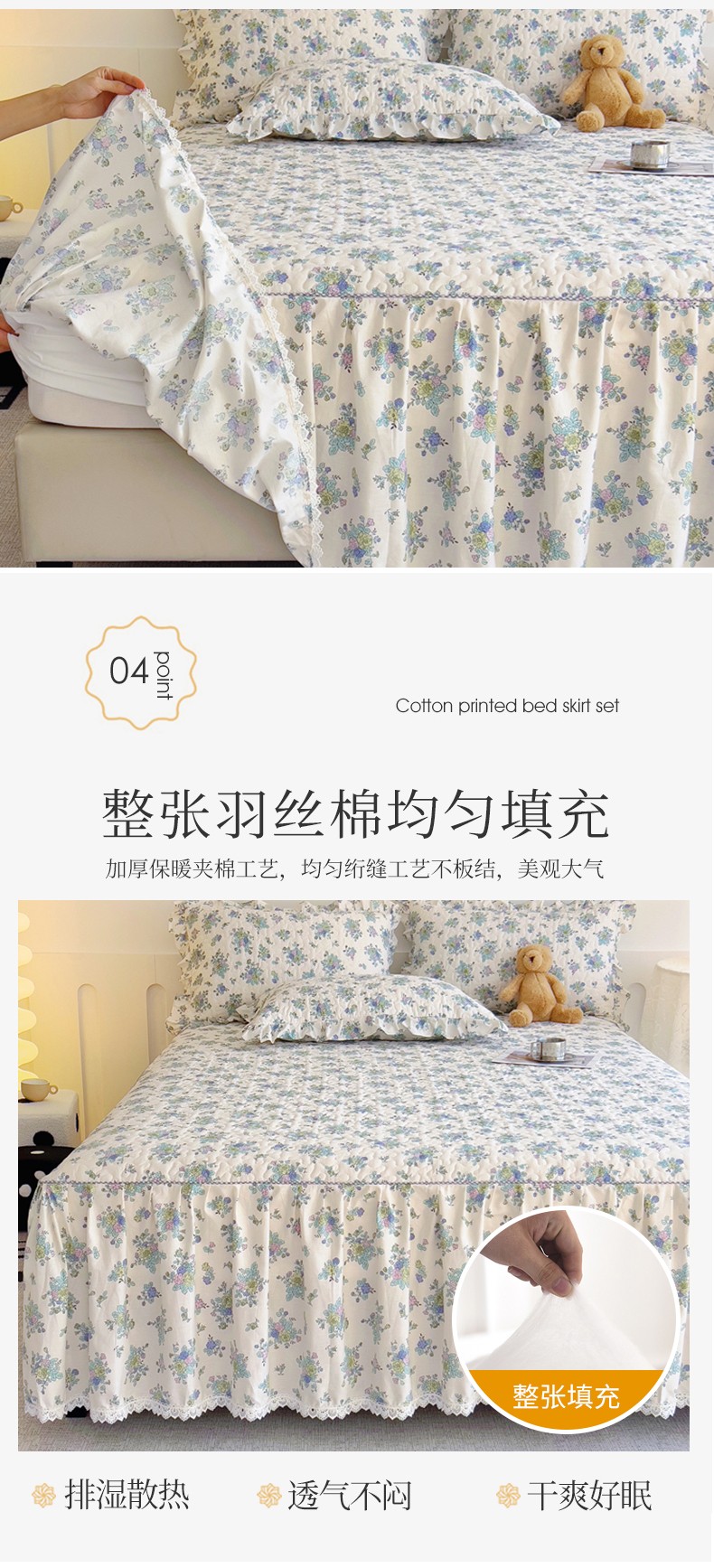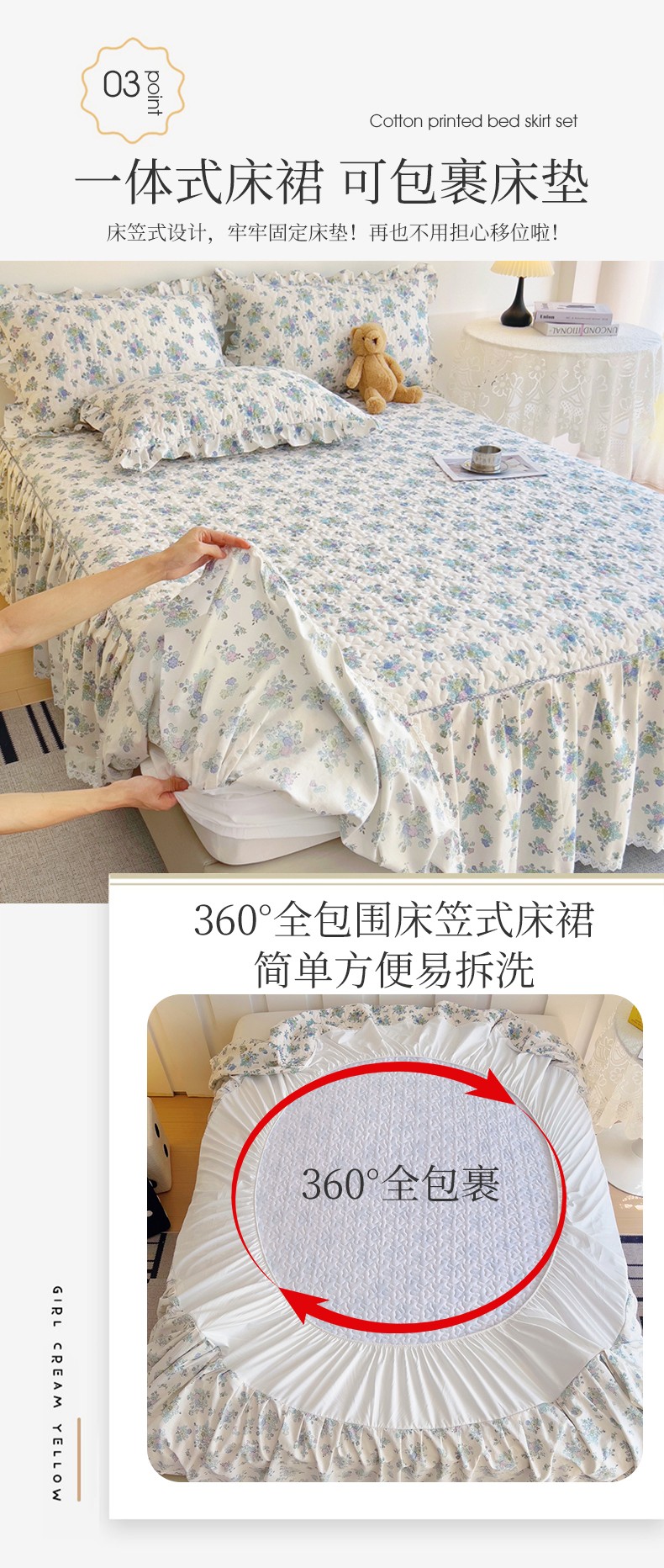 十个点 2024新款全棉印花床笠式单品床裙-樱桃系列 青花
