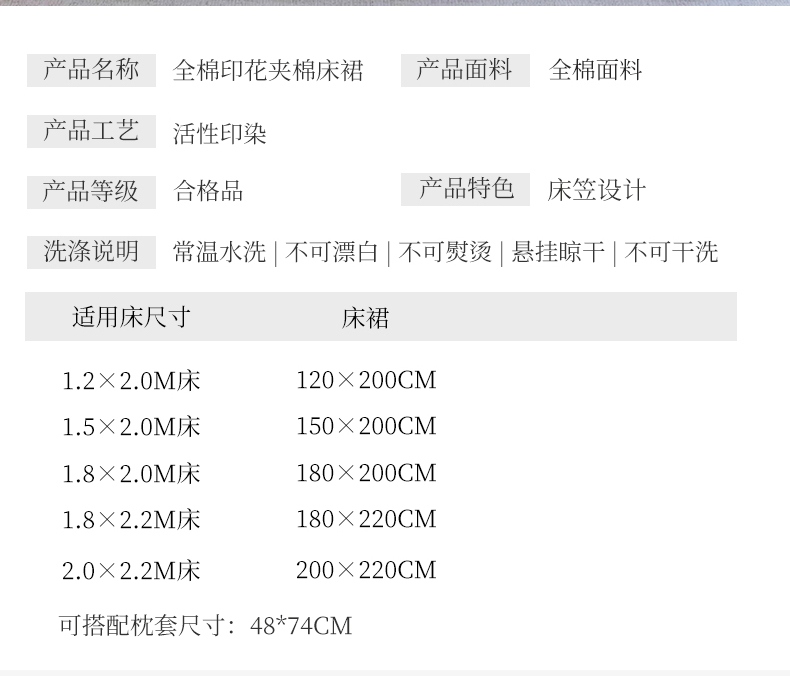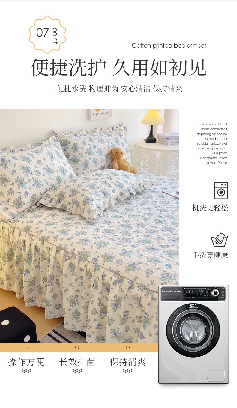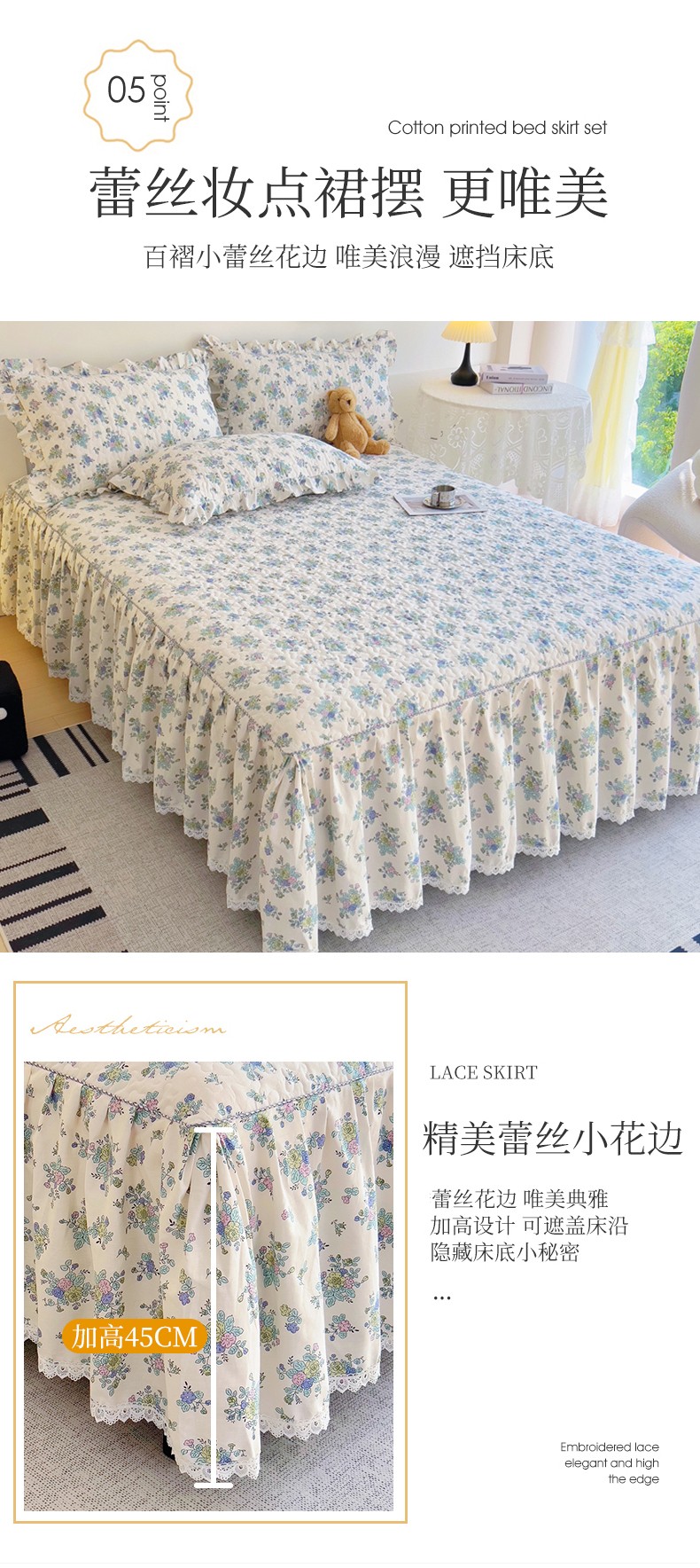 商品名称:十个点 2024新款全棉印花床笠式单品床裙-樱桃系列 青花