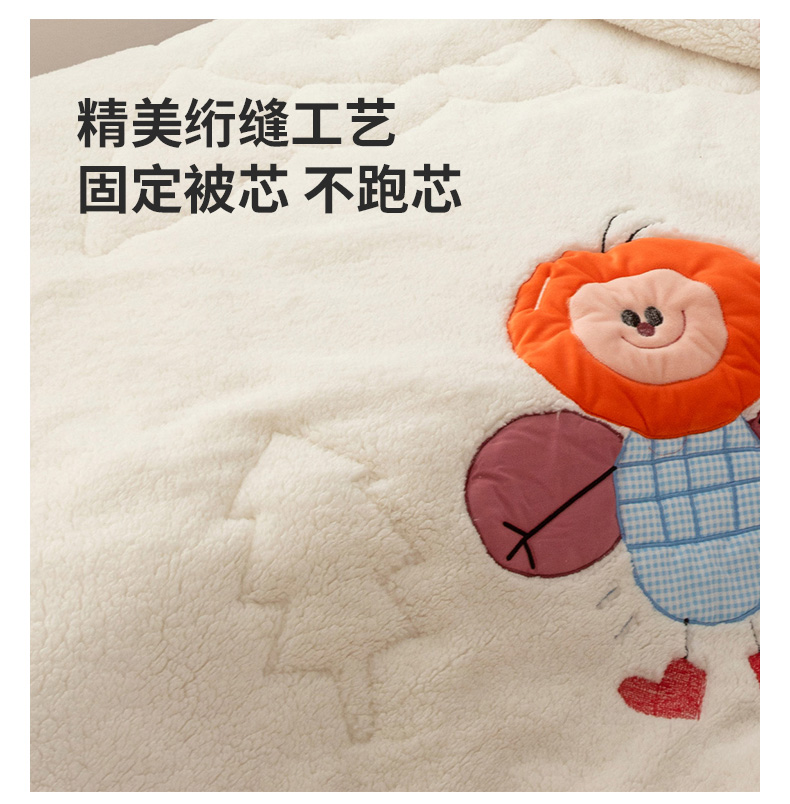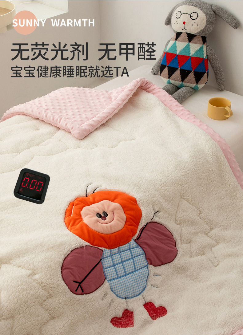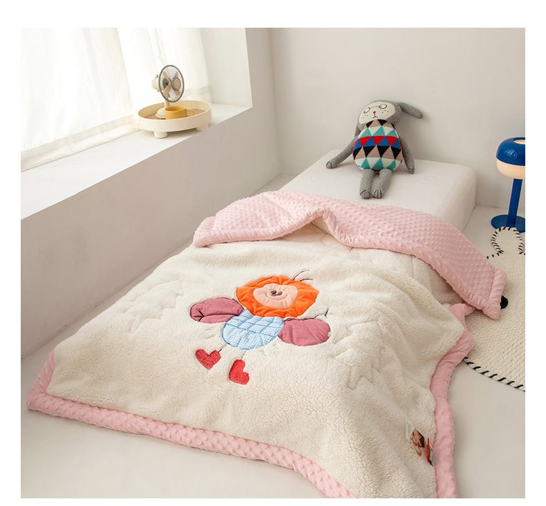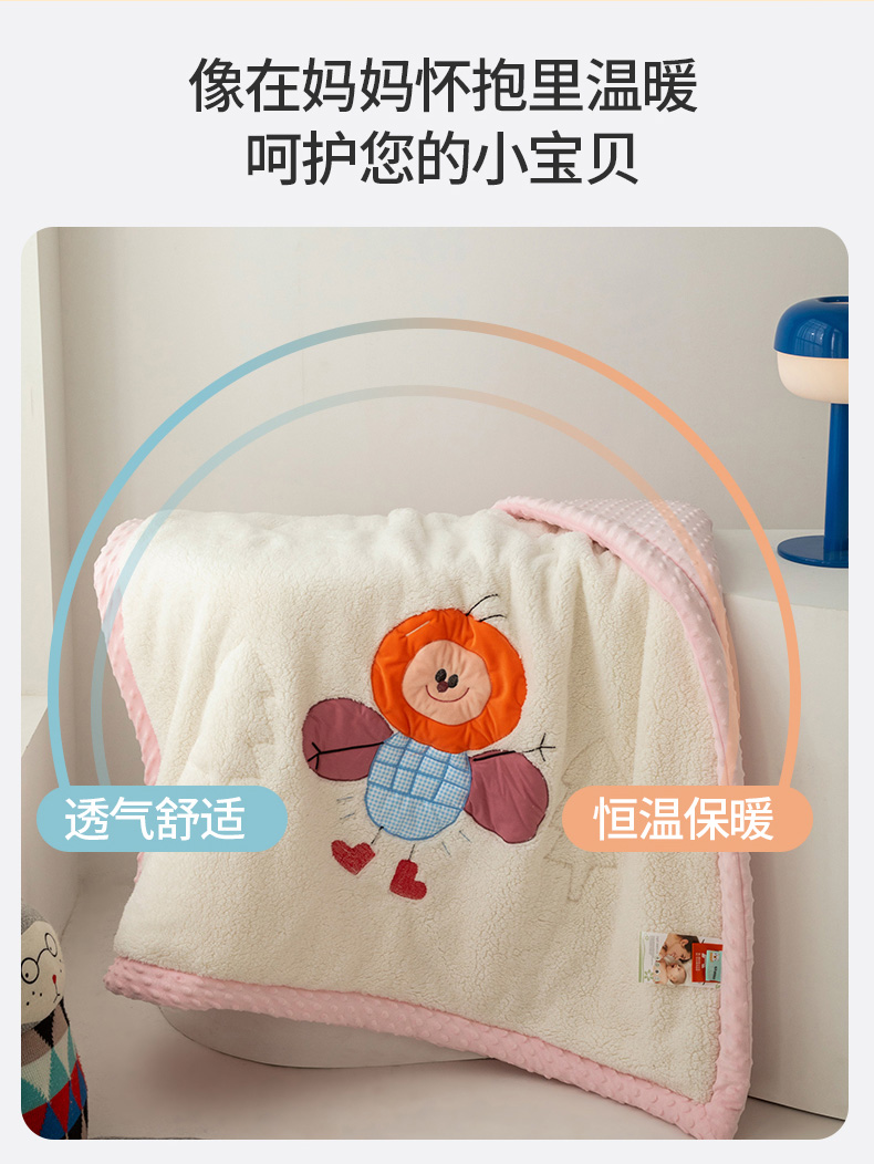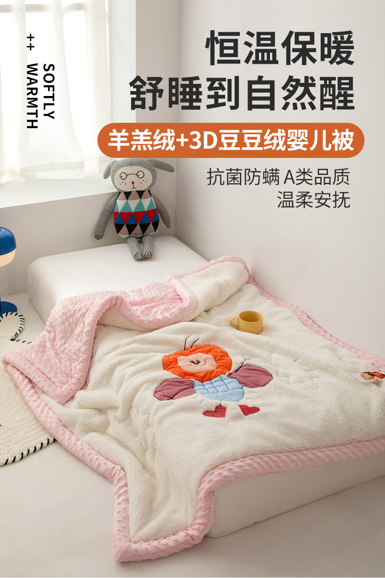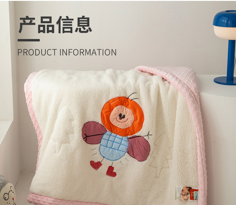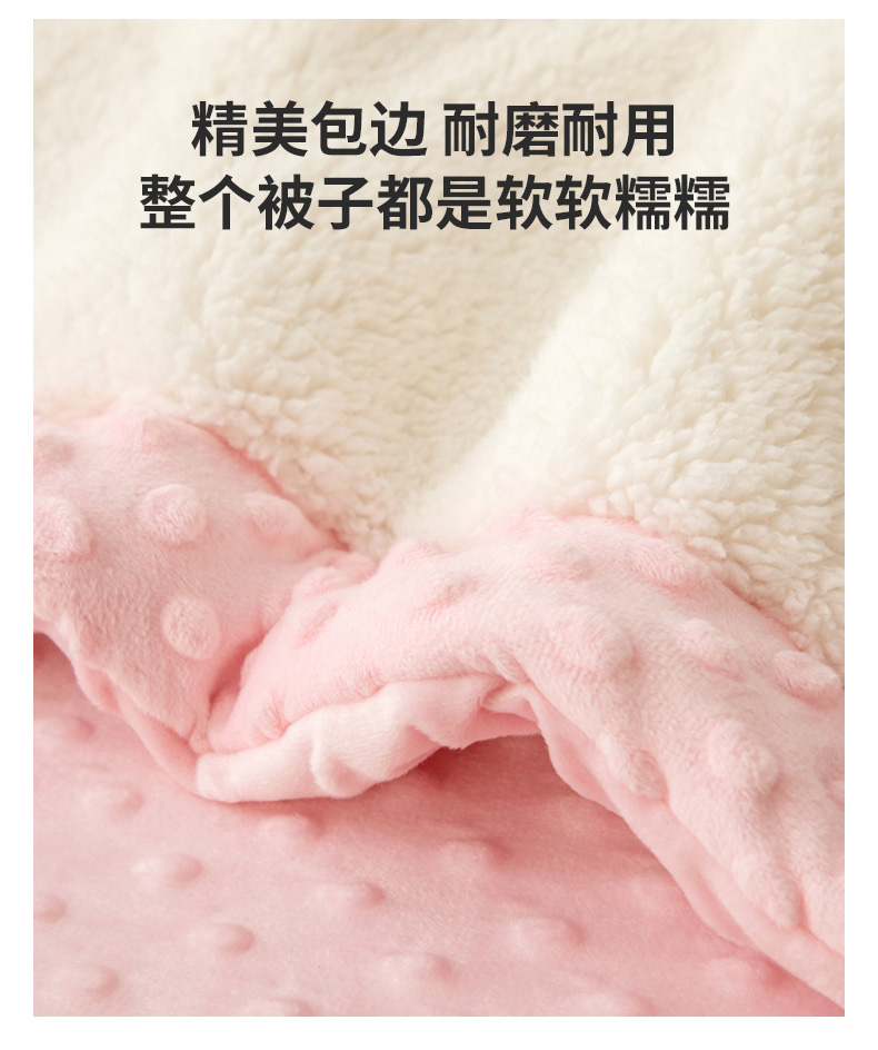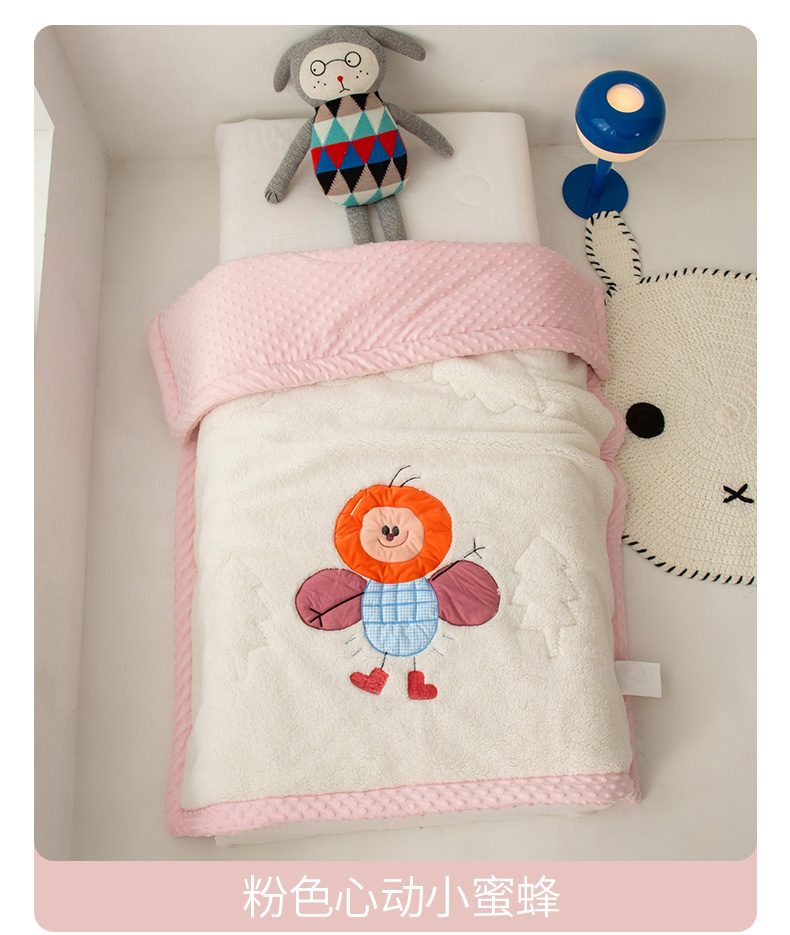 商品名称:喜多兔儿童家纺 2023新款羊羔绒3D抗菌豆豆绒毯 粉色心动小蜜蜂