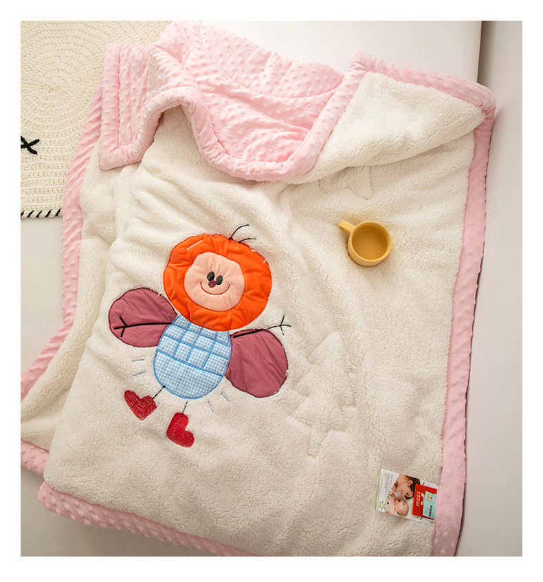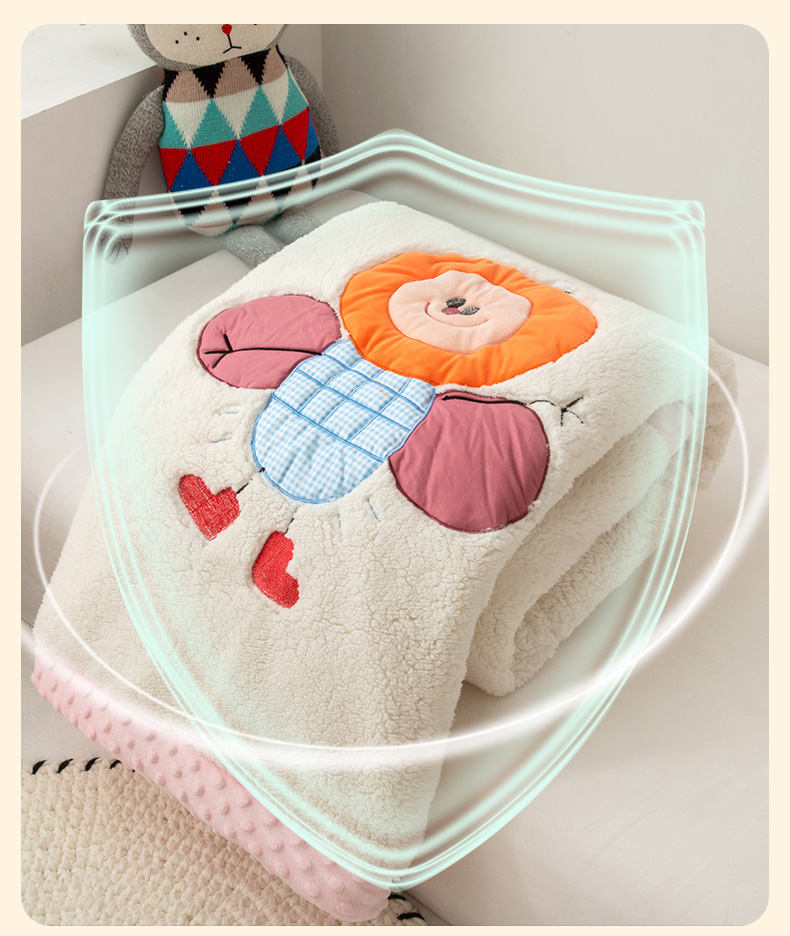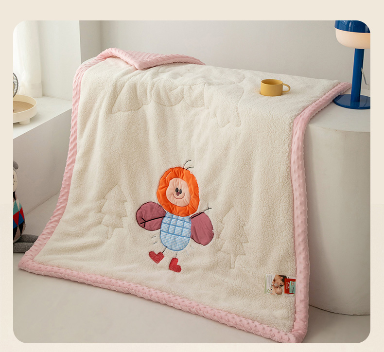 喜多兔儿童家纺 2023新款羊羔绒3D抗菌豆豆绒毯 粉色心动小蜜蜂