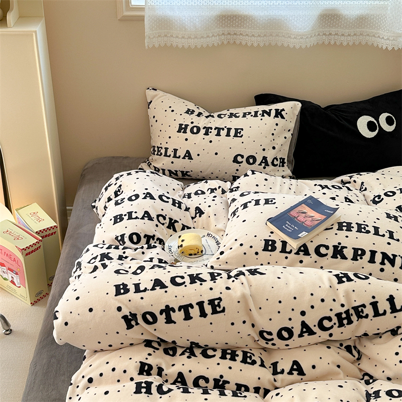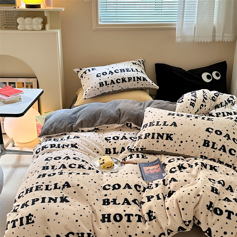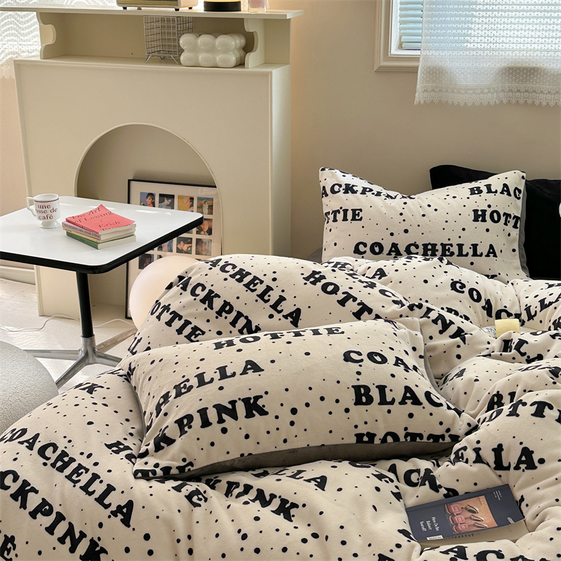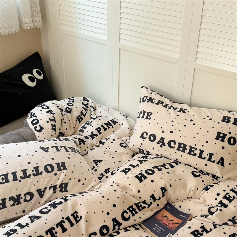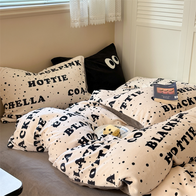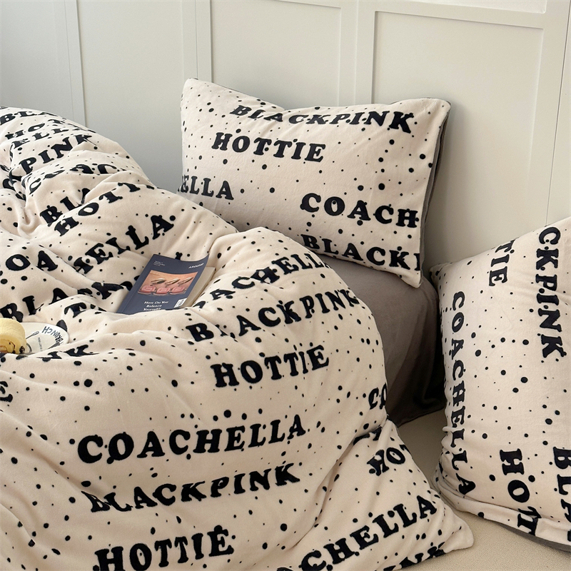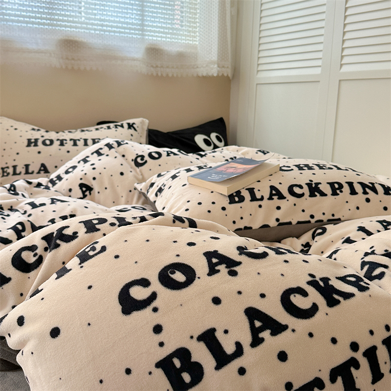 时年家纺 2023新款牛奶绒印花系列套件 简约风格 甜酷-米
