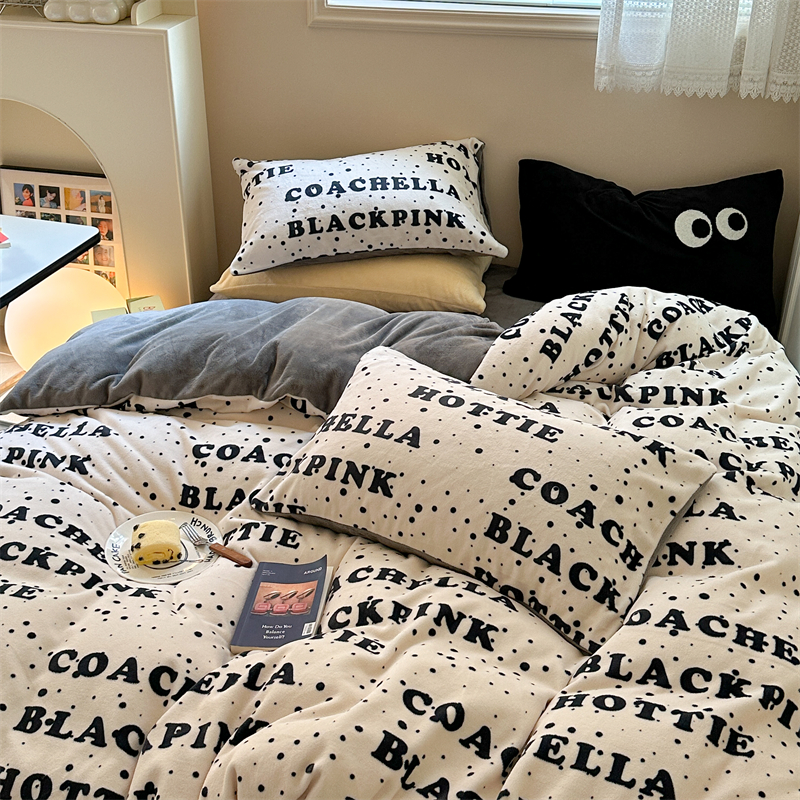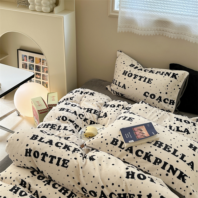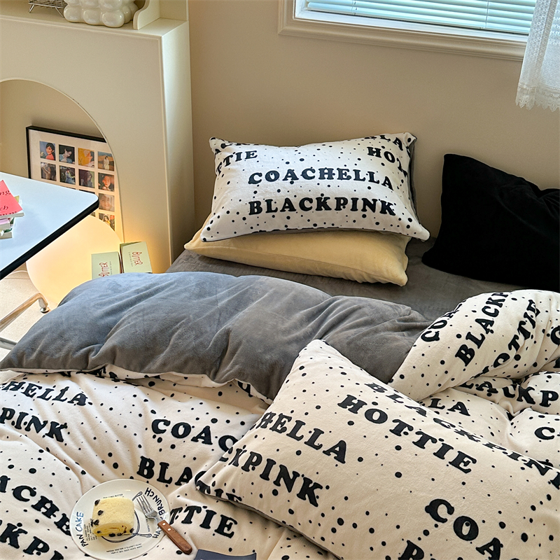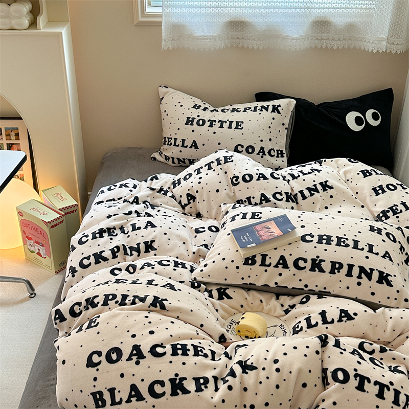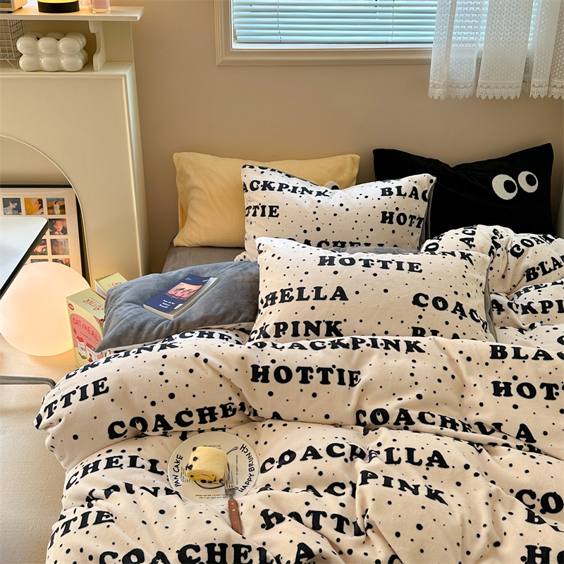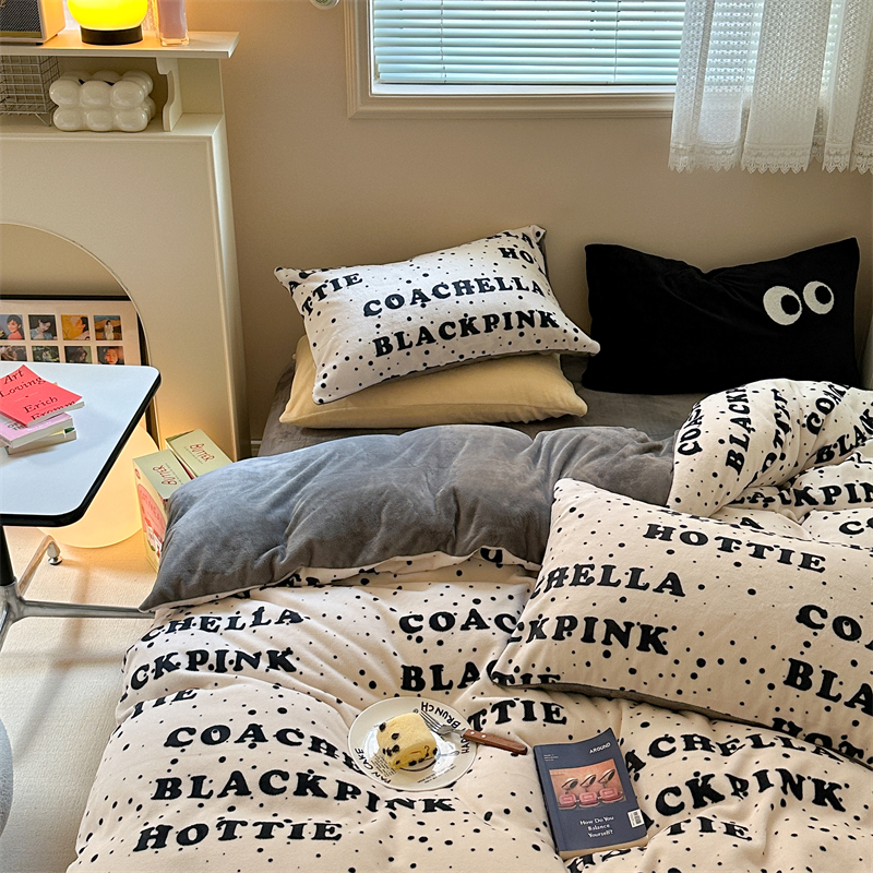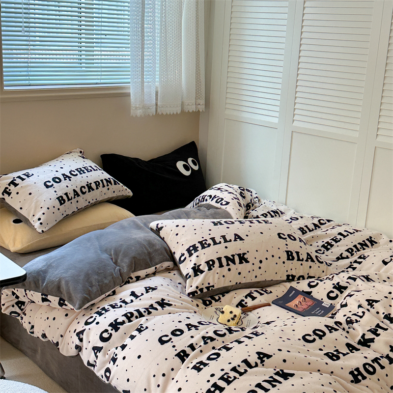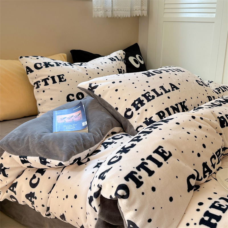 时年家纺 2023新款牛奶绒印花系列套件 简约风格 甜酷-米
