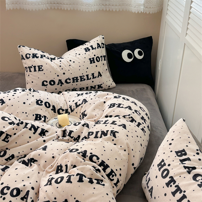 商品名称:时年家纺 2023新款牛奶绒印花系列套件 简约风格 甜酷-米