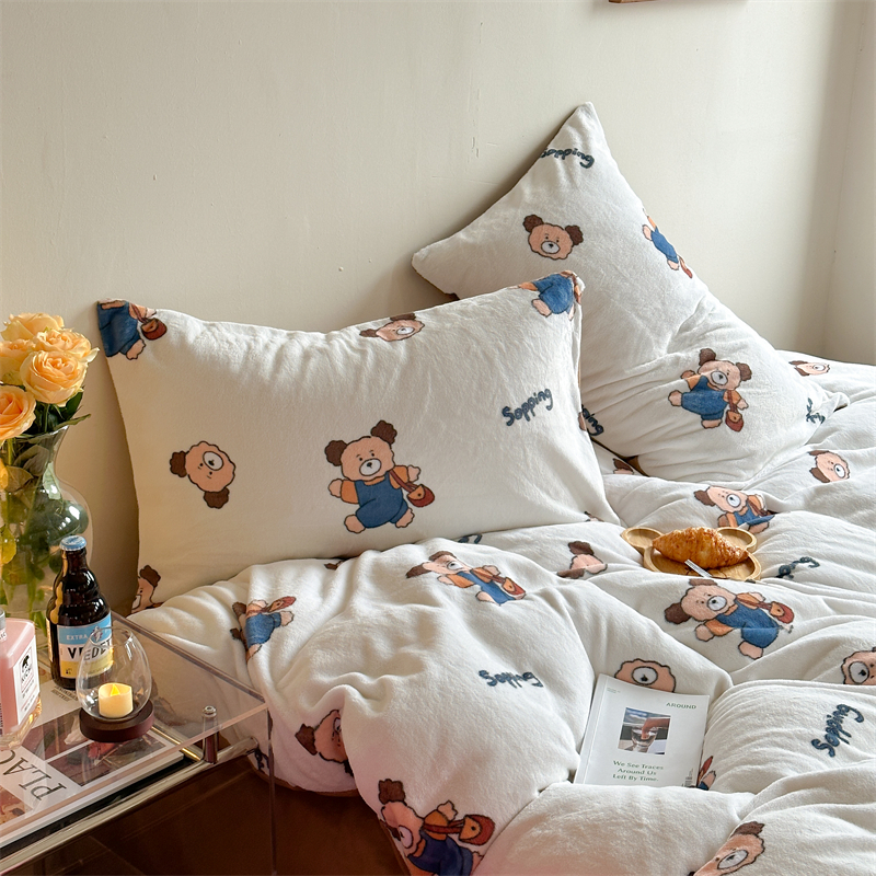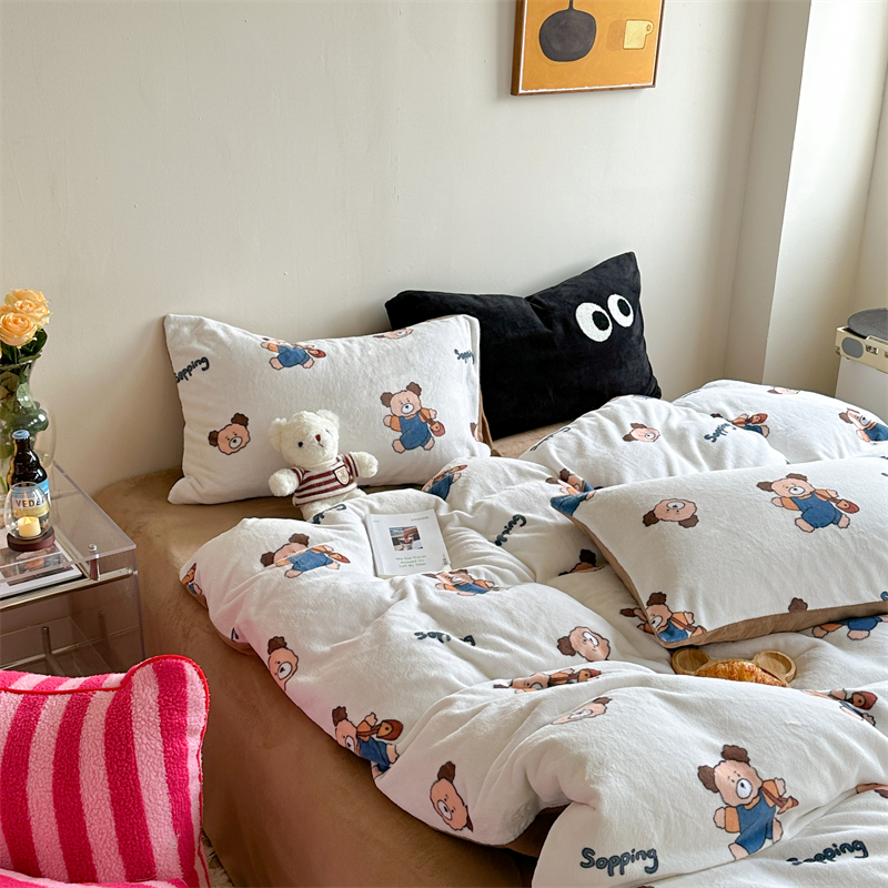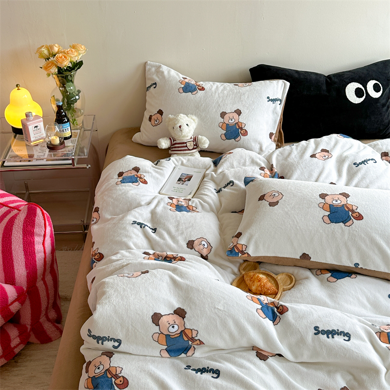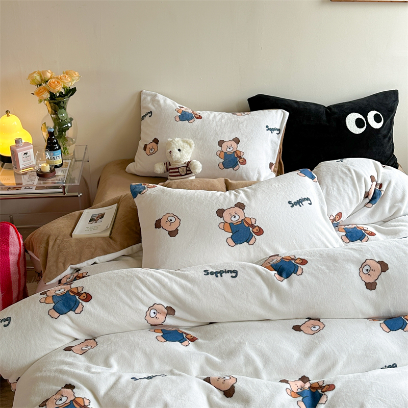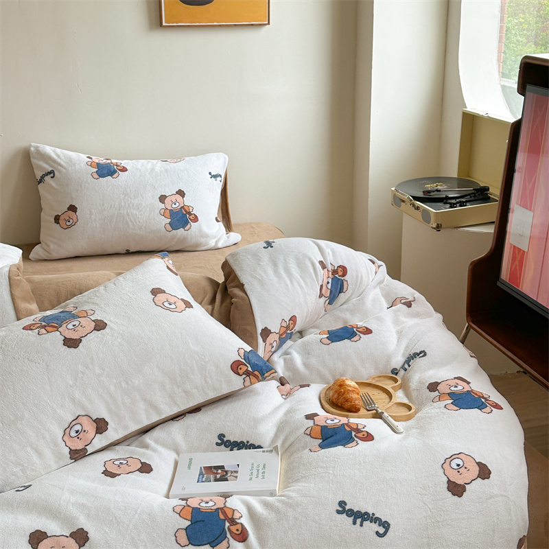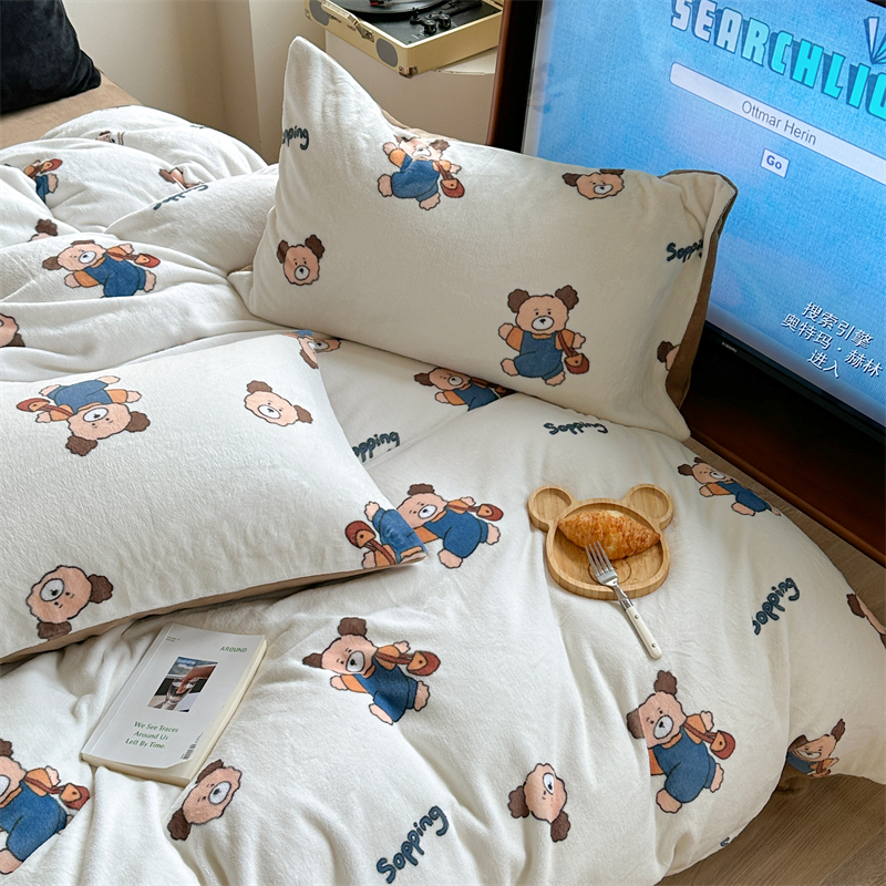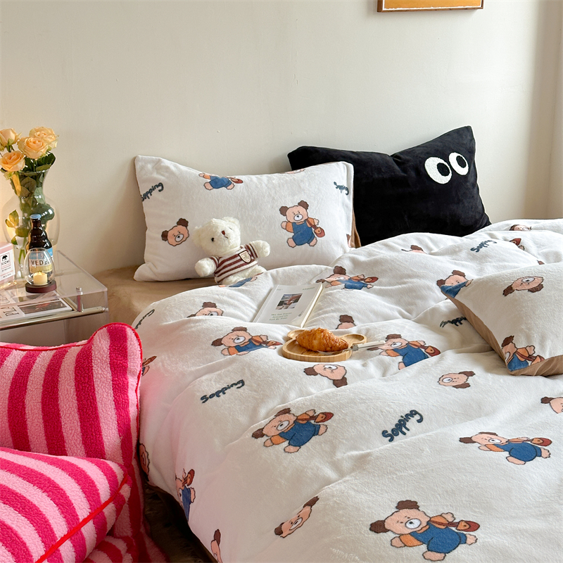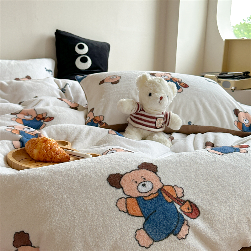 商品名称:时年家纺 2023新款牛奶绒印花系列套件 小可爱风格 背包小熊