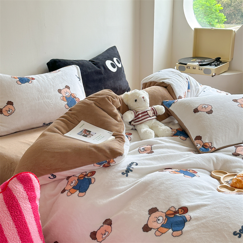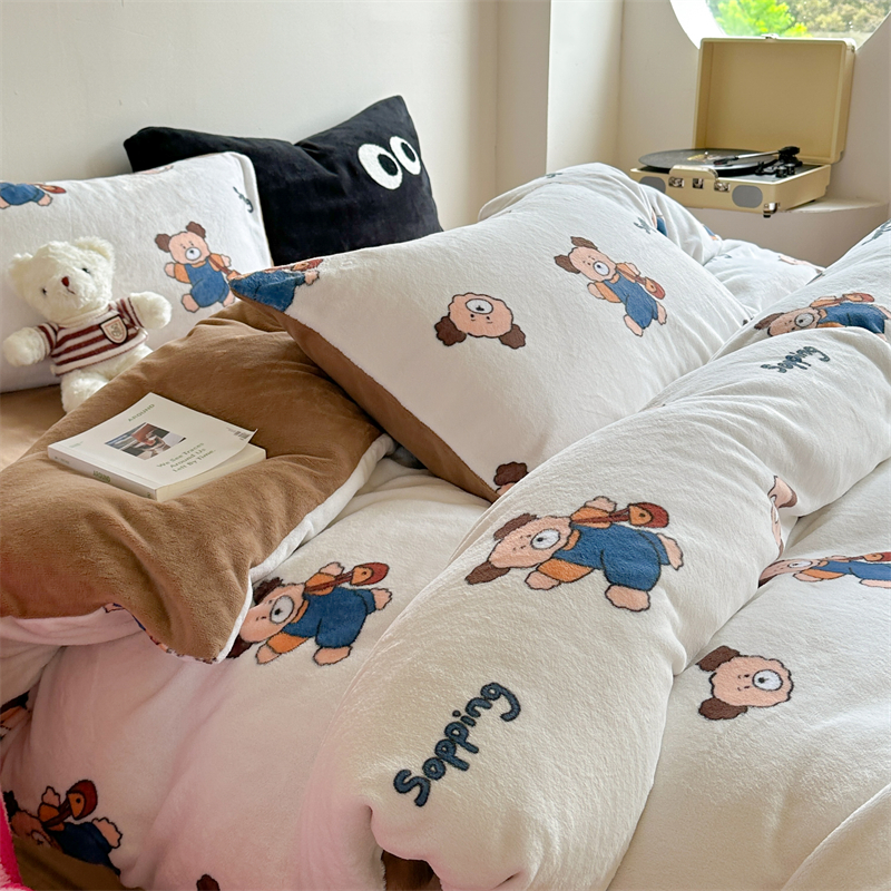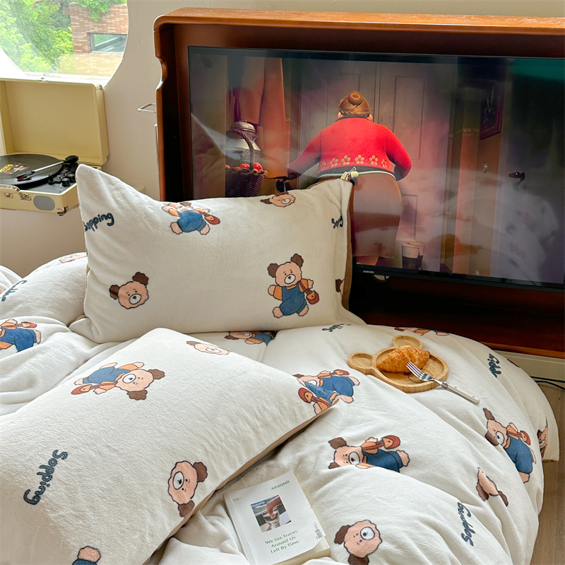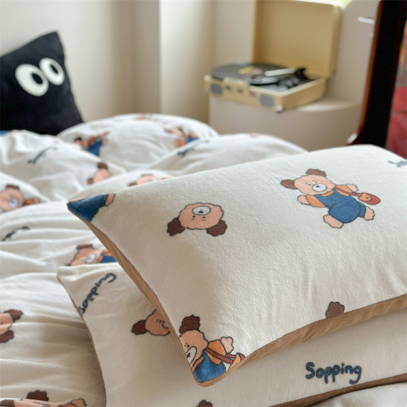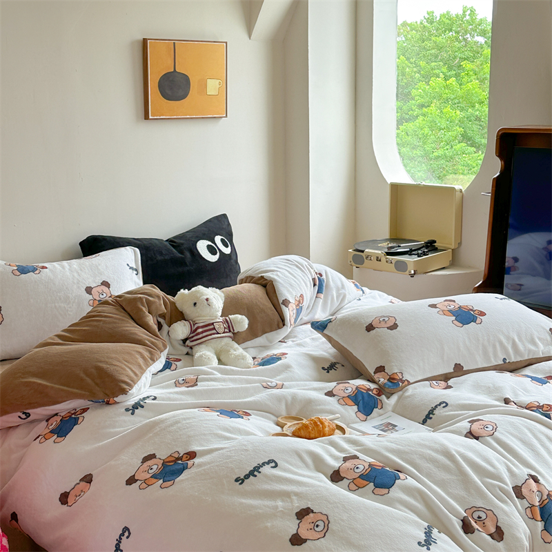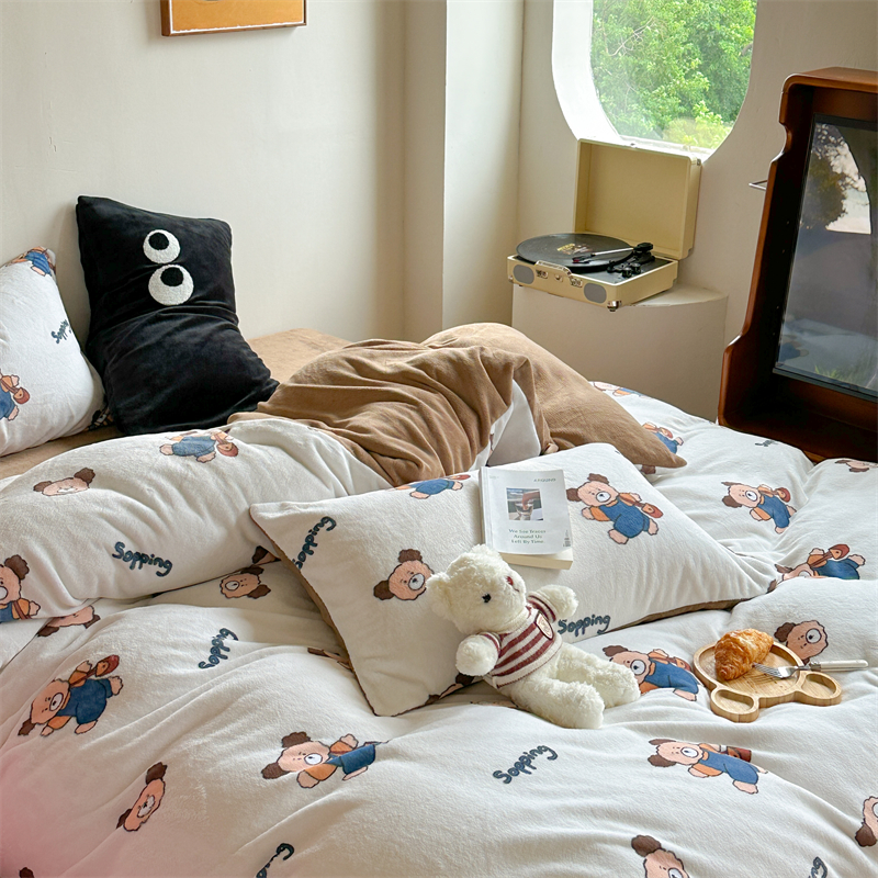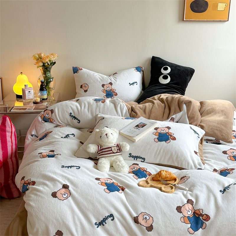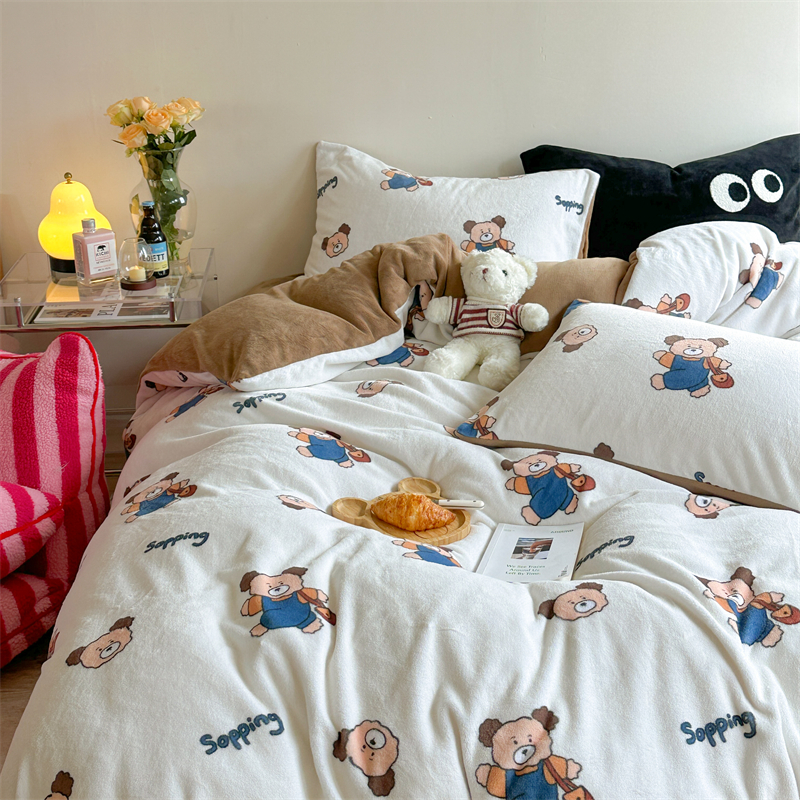 商品名称:时年家纺 2023新款牛奶绒印花系列套件 小可爱风格 背包小熊