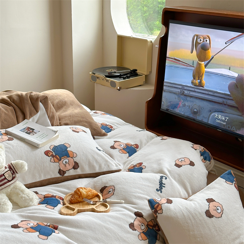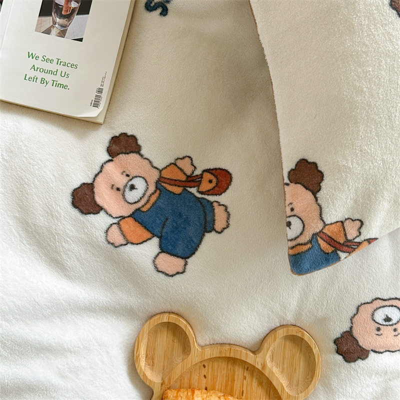 时年家纺 2023新款牛奶绒印花系列套件 小可爱风格 背包小熊