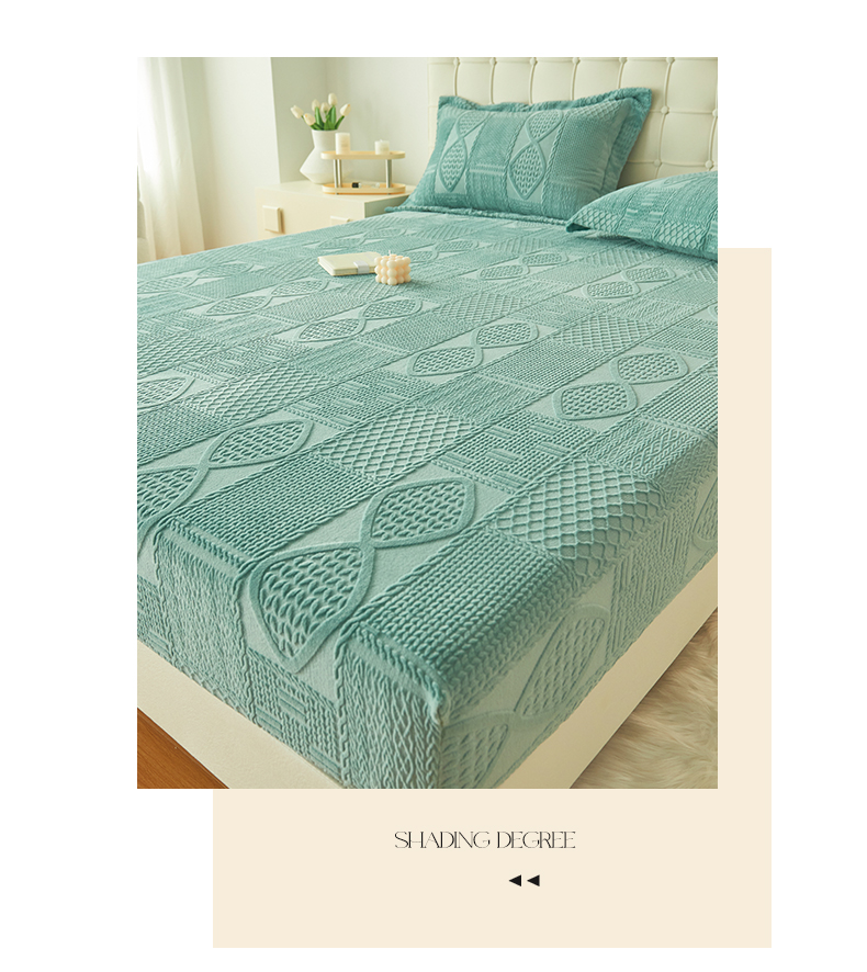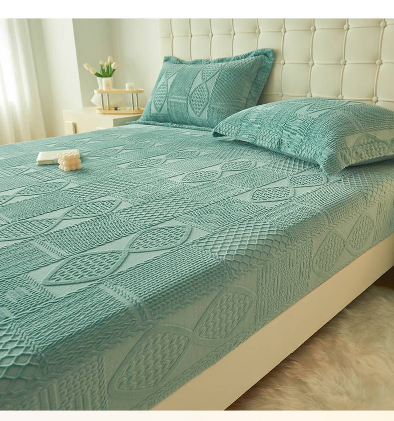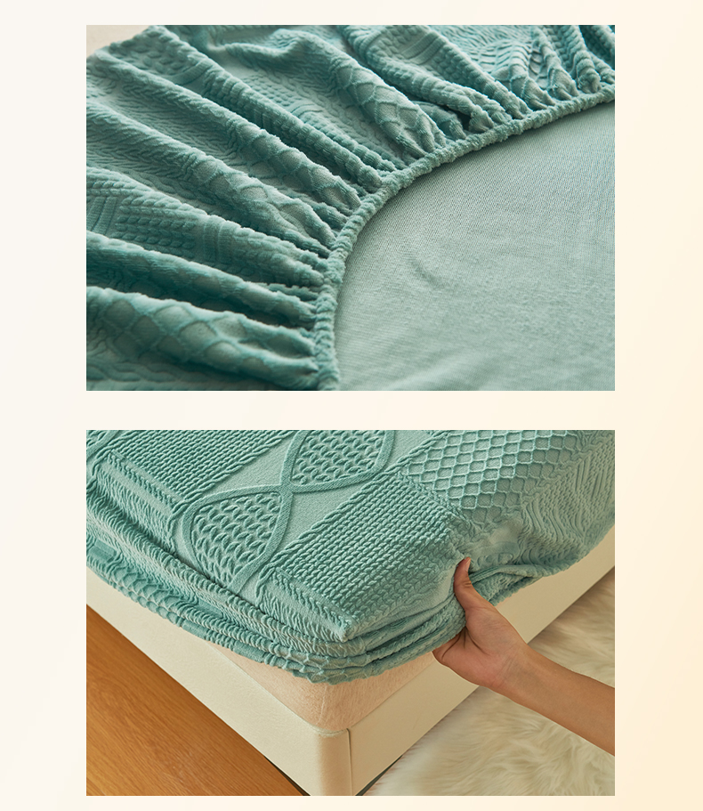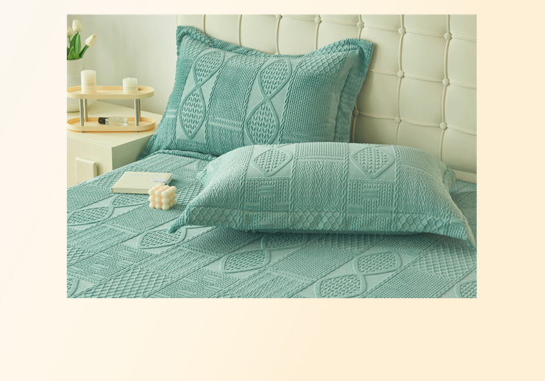 商品名称:吾诺家居 2023新款230克立体雕花牛奶绒床笠 毛衣-湖绿