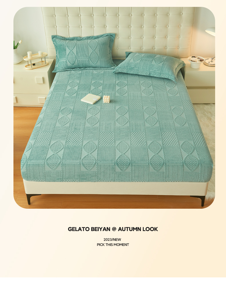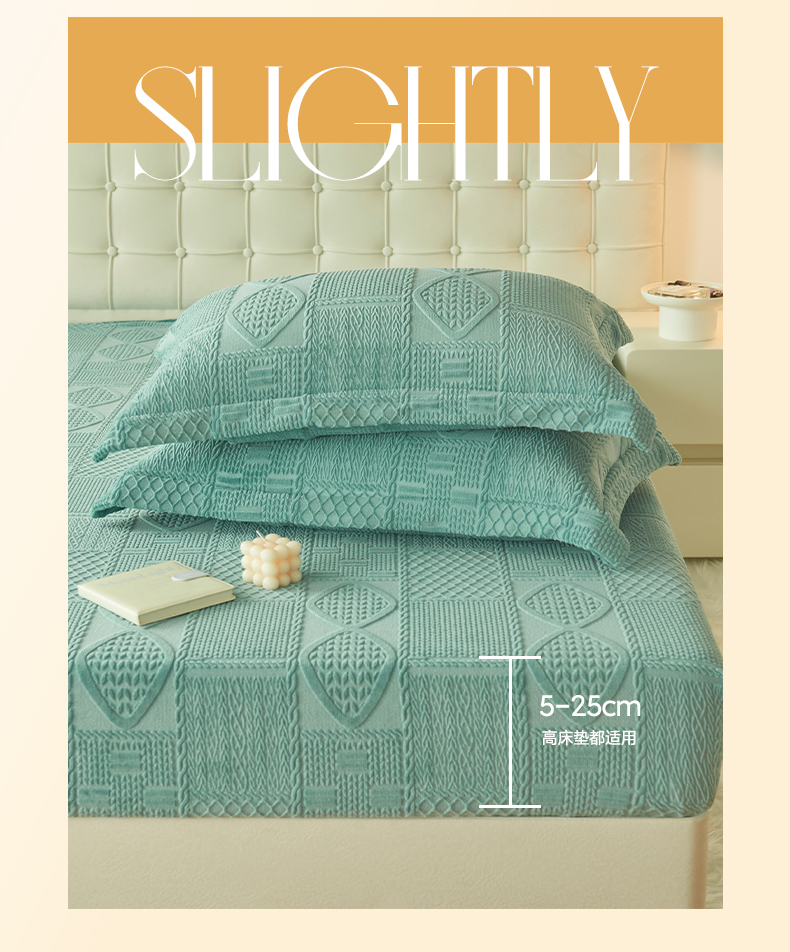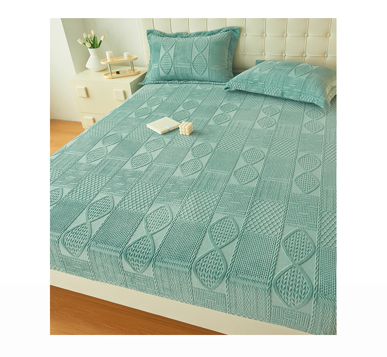吾诺家居 2023新款230克立体雕花牛奶绒床笠 毛衣-湖绿
