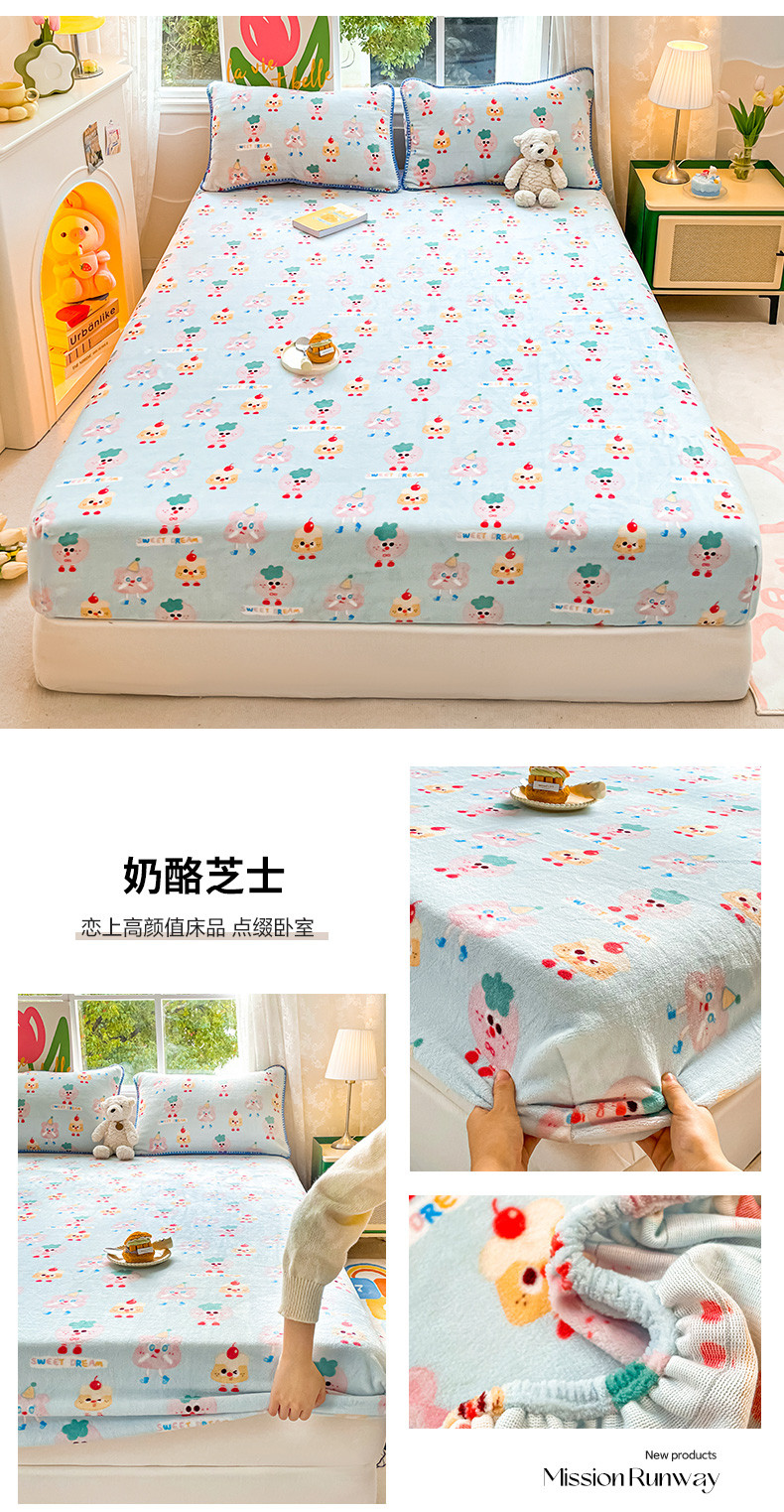 安哆啦家纺 2024新款高克重牛奶绒印花单床笠 奶酪芝士
