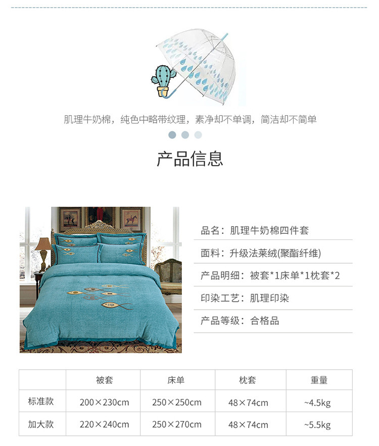 商品名称:(总)伊而梦 2023新款法莱绒毛巾绣四件套—年年有鱼系列