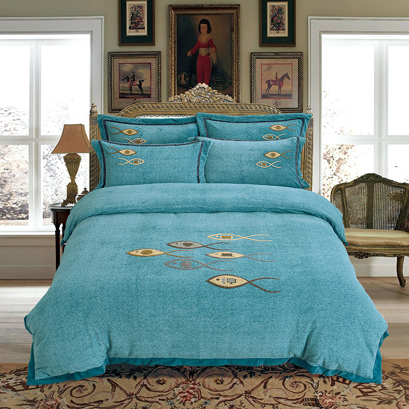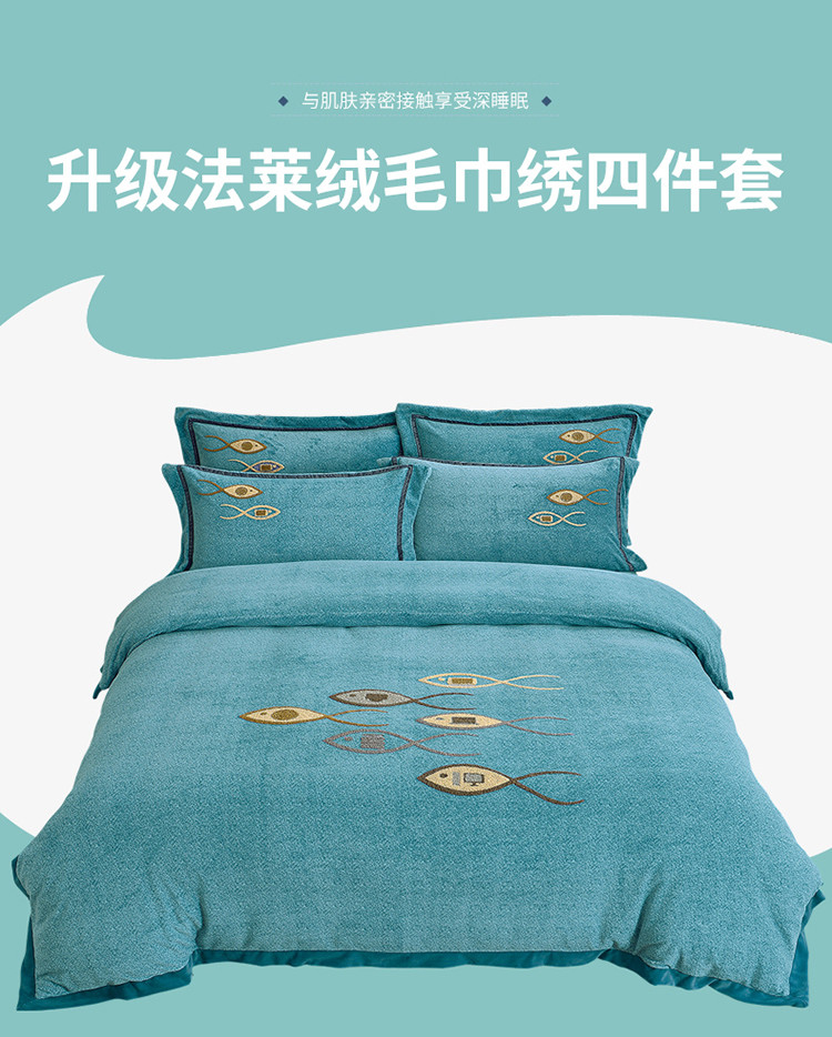 (总)伊而梦 2023新款法莱绒毛巾绣四件套—年年有鱼系列