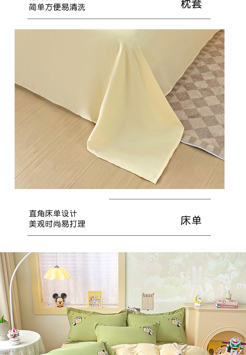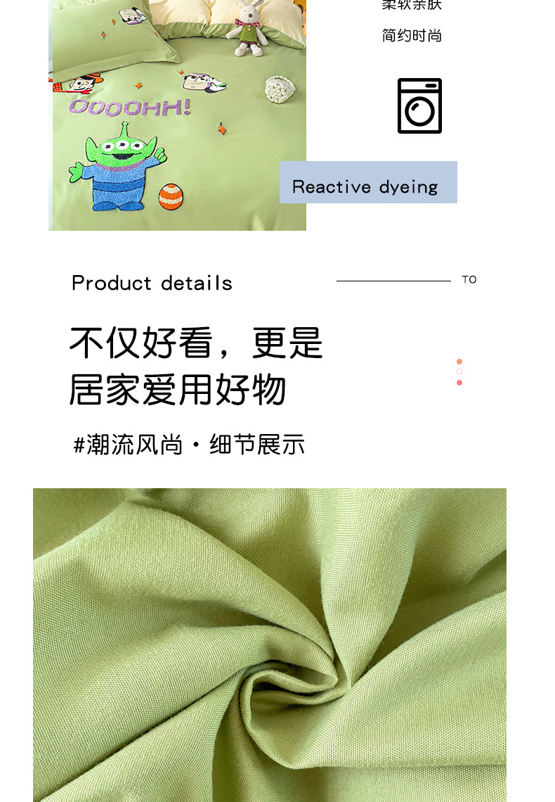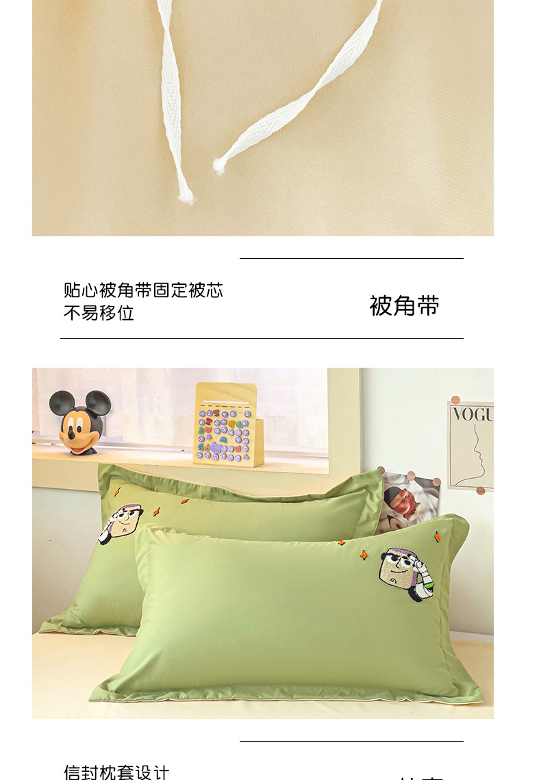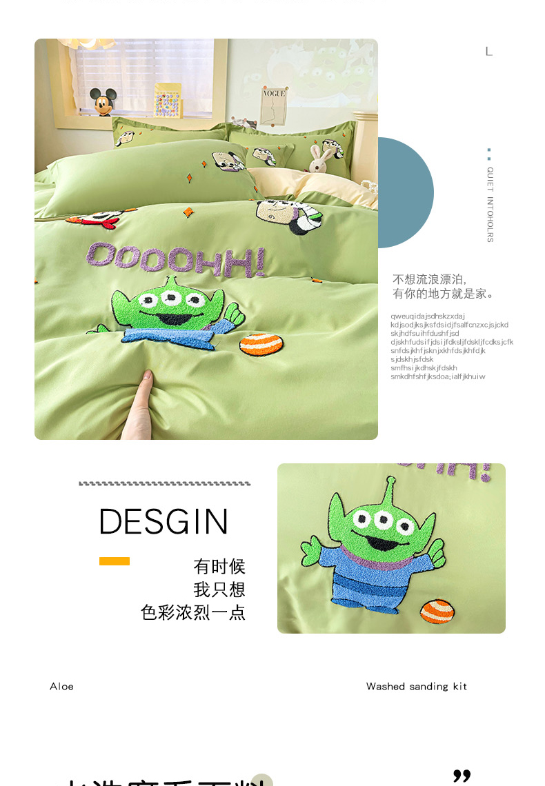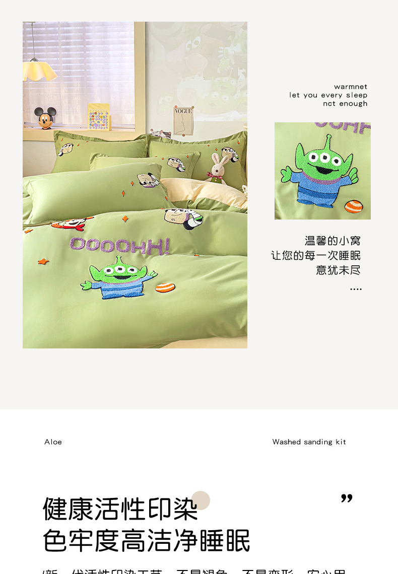 商品名称:娜娜 2023新款水洗磨毛毛巾绣四件套 胡迪和巴斯灰绿+白