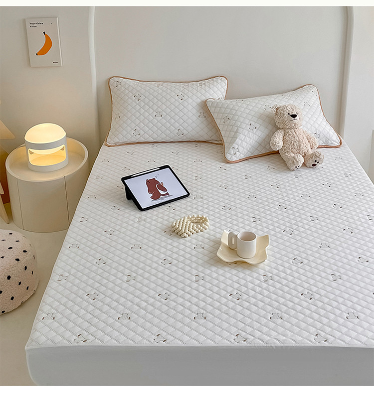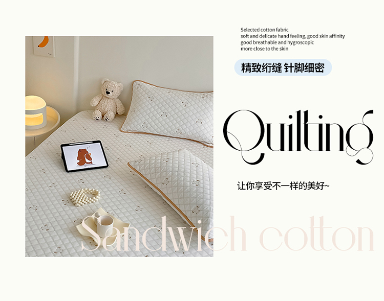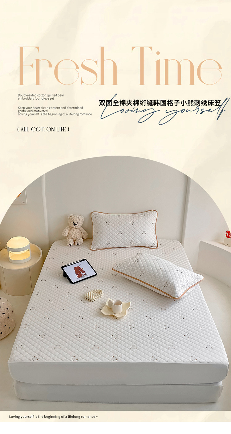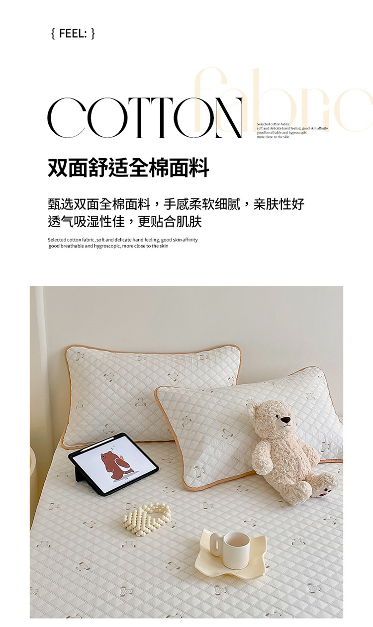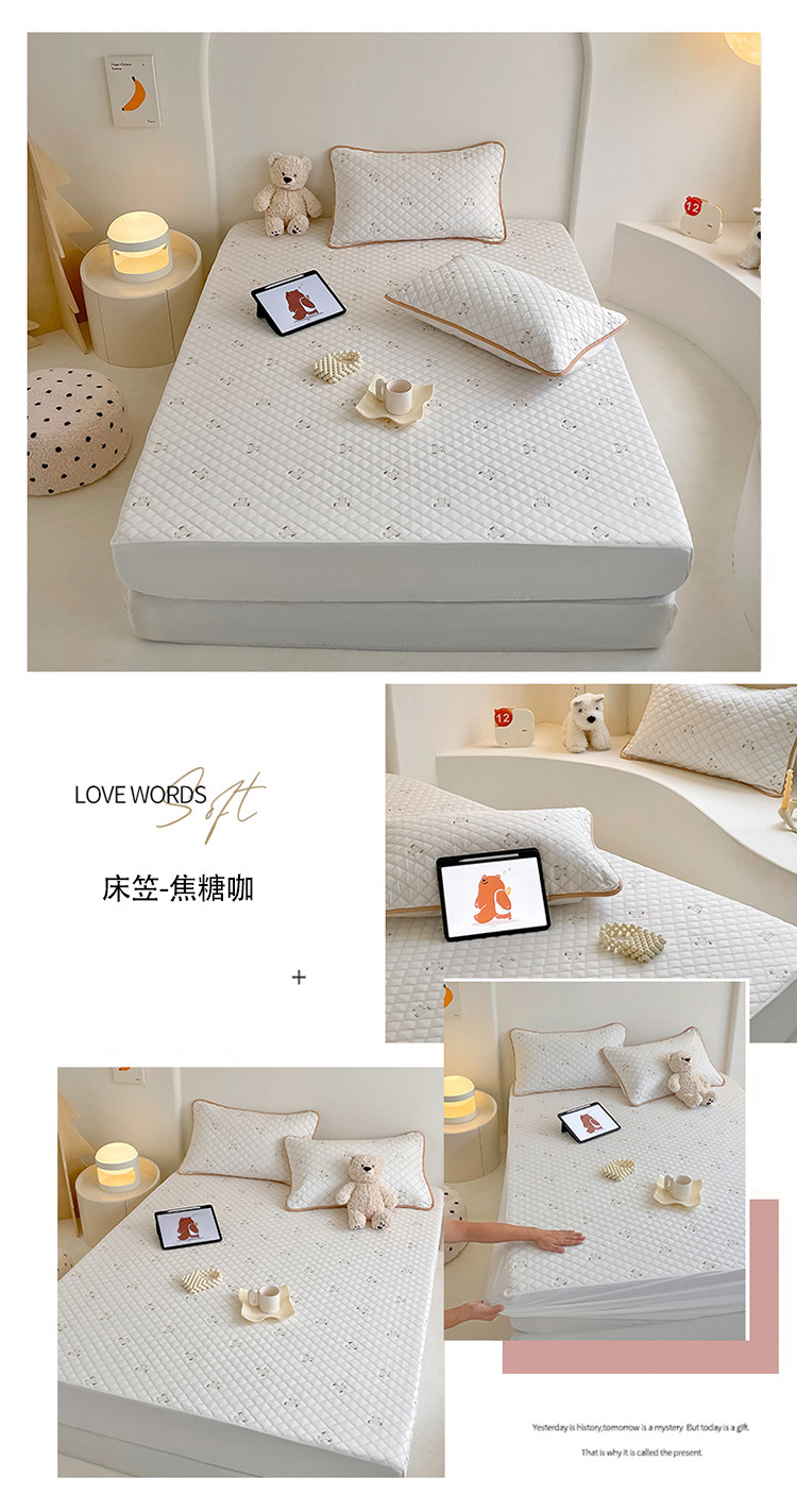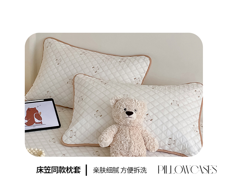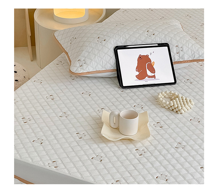 商品名称:漫调 2023新款全棉绗缝床笠格子小熊刺绣 床笠焦糖咖