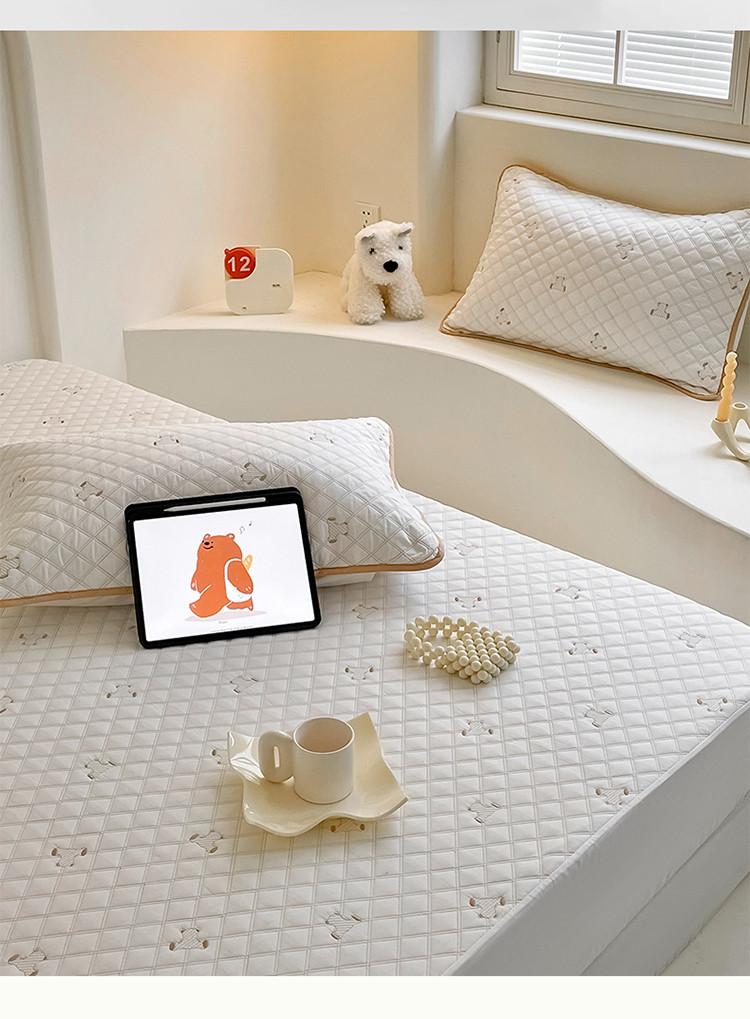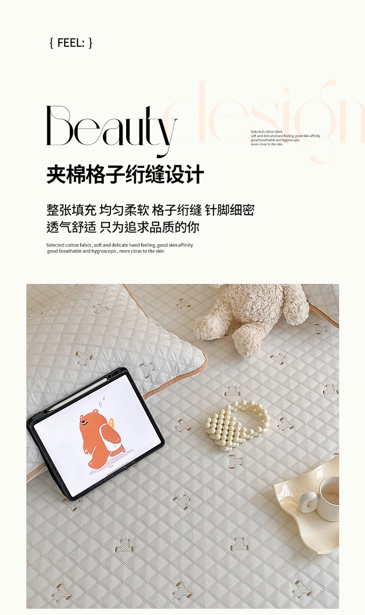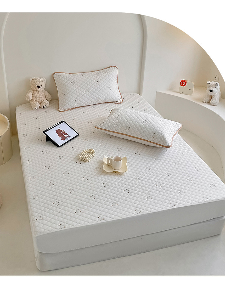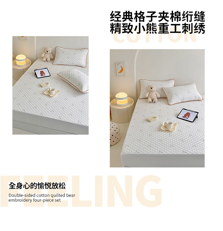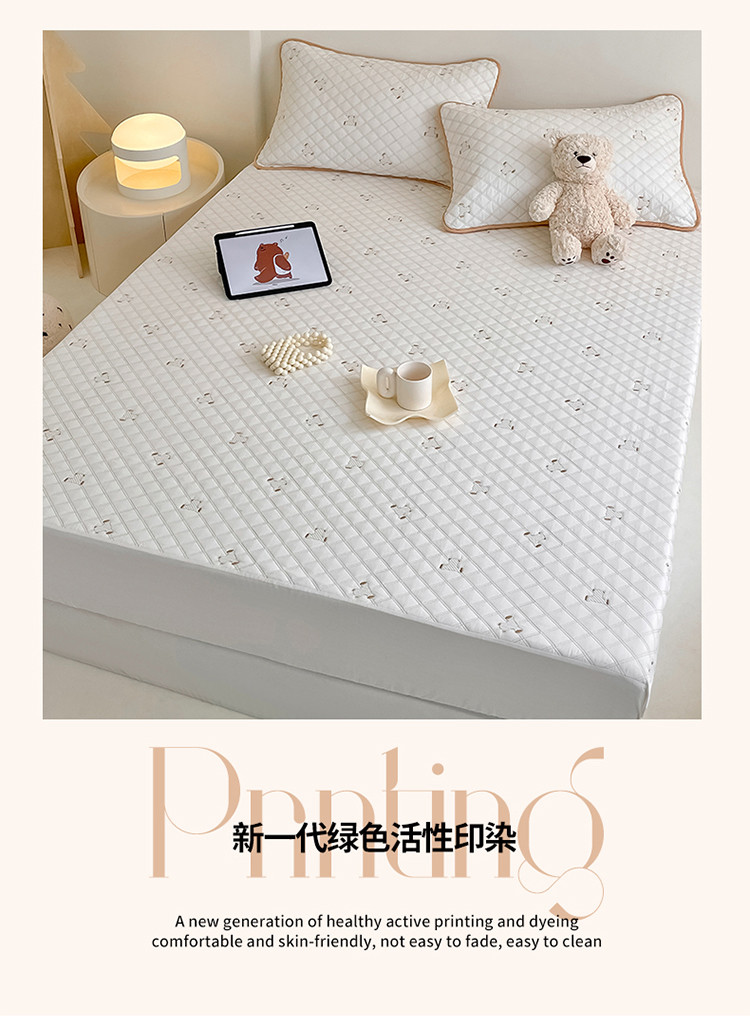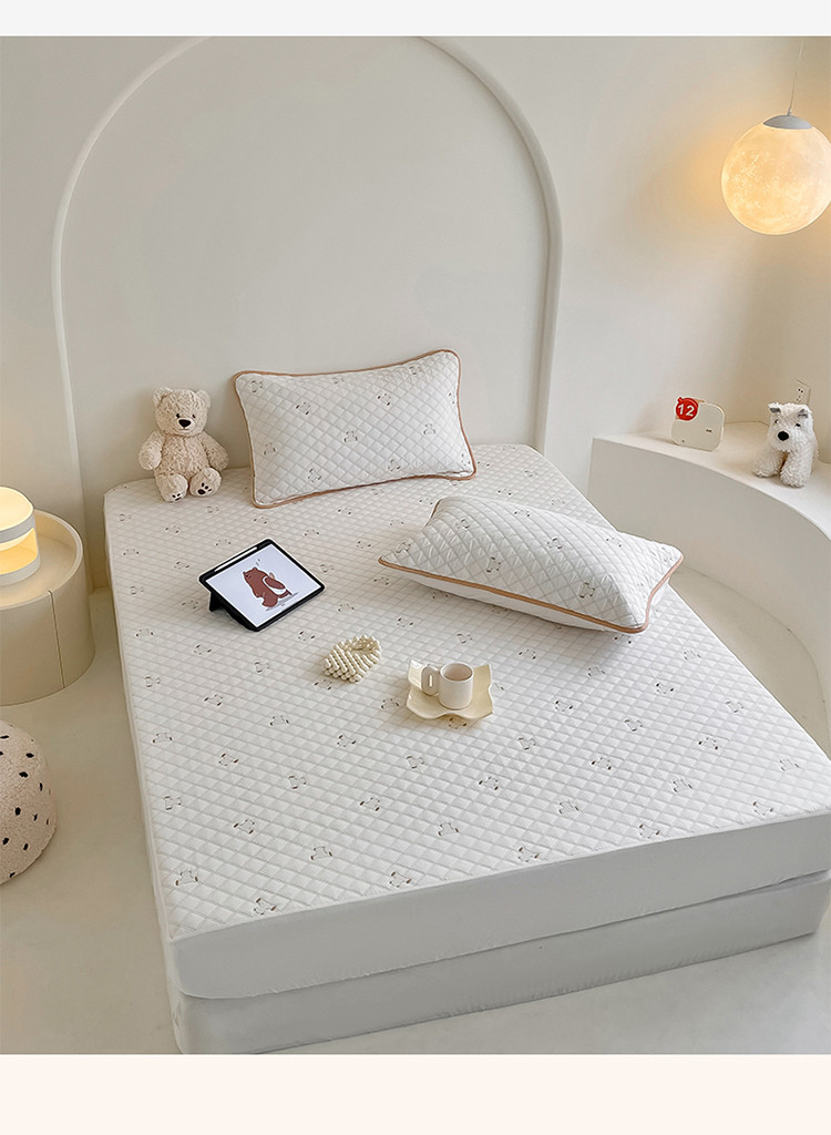 商品名称:漫调 2023新款全棉绗缝床笠格子小熊刺绣 床笠焦糖咖