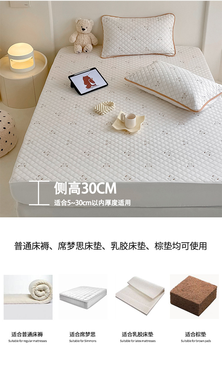 (总)漫调2025新款全棉星星床垫保护套夹棉床笠-繁星,组合图仅供参考,繁星白,繁星粉,繁星灰,繁星咖,繁星绿,繁星杏