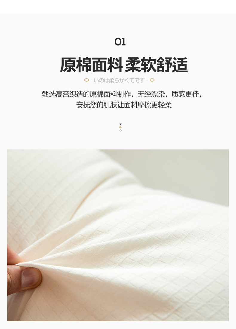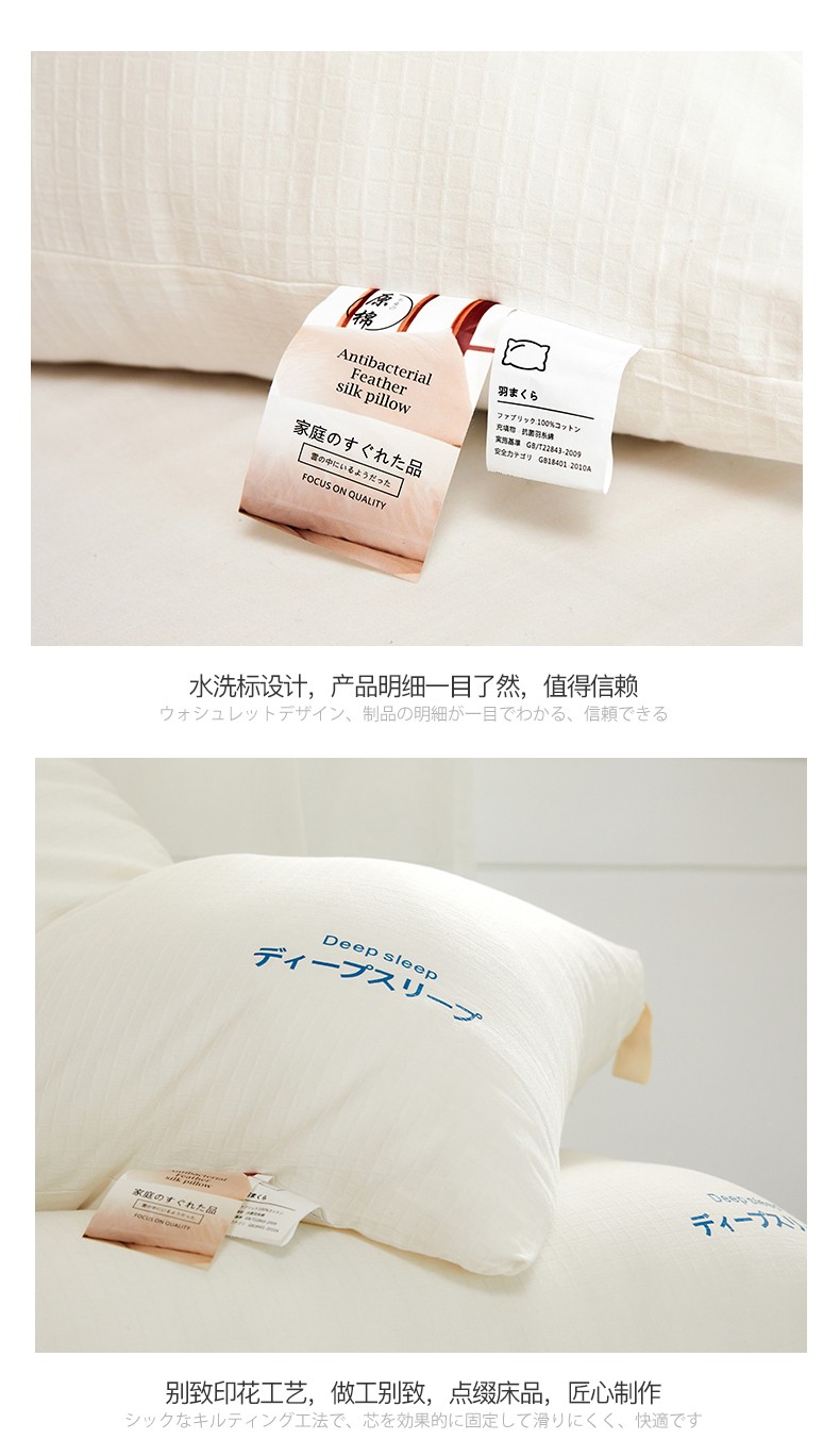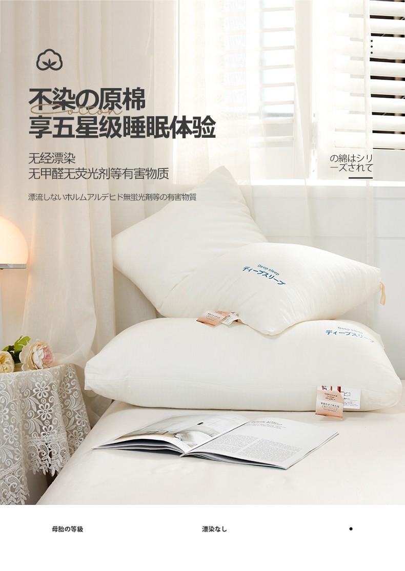 2023新款 原棉羽丝绒枕头 无印无染全棉高弹舒软护颈枕芯