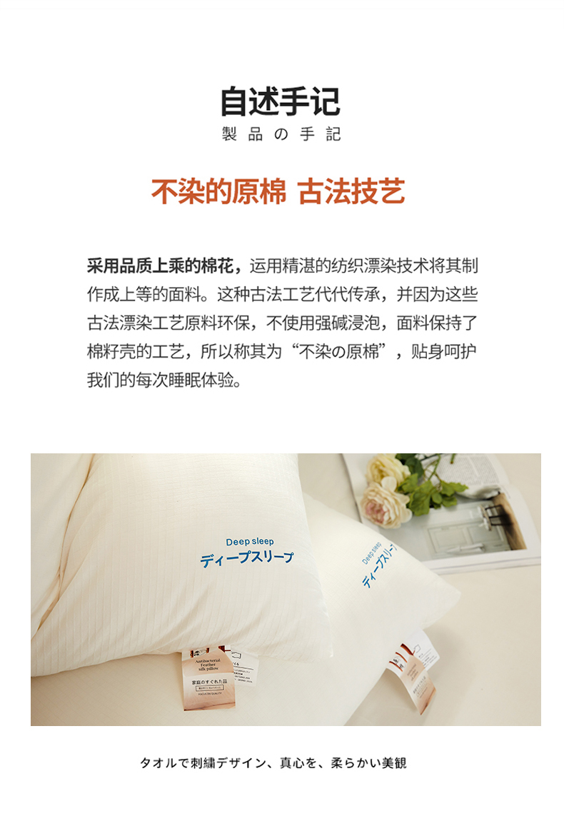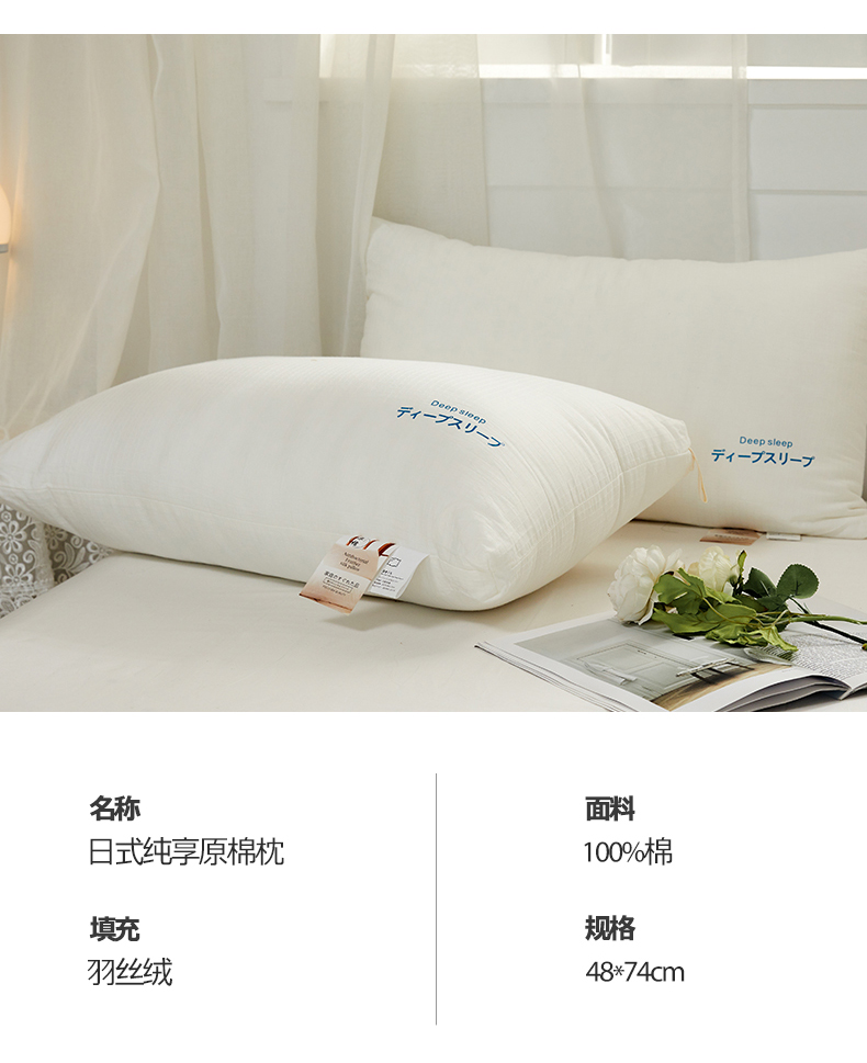 商品名称:2023新款 原棉羽丝绒枕头 无印无染全棉高弹舒软护颈枕芯