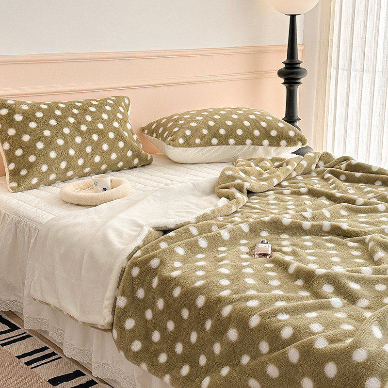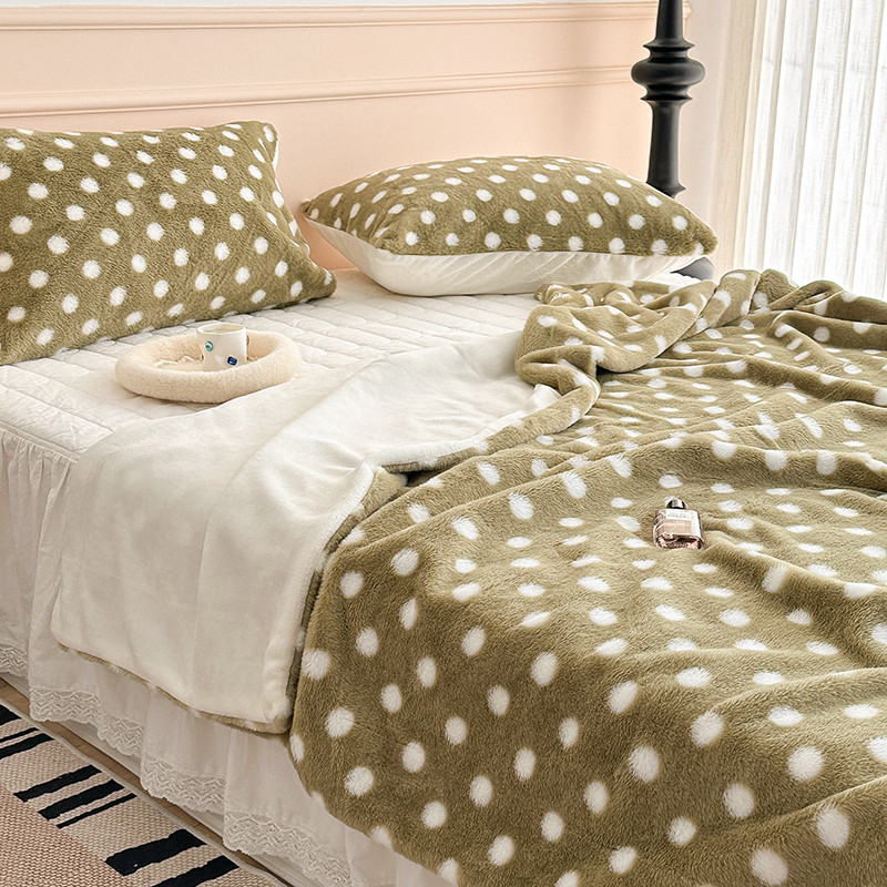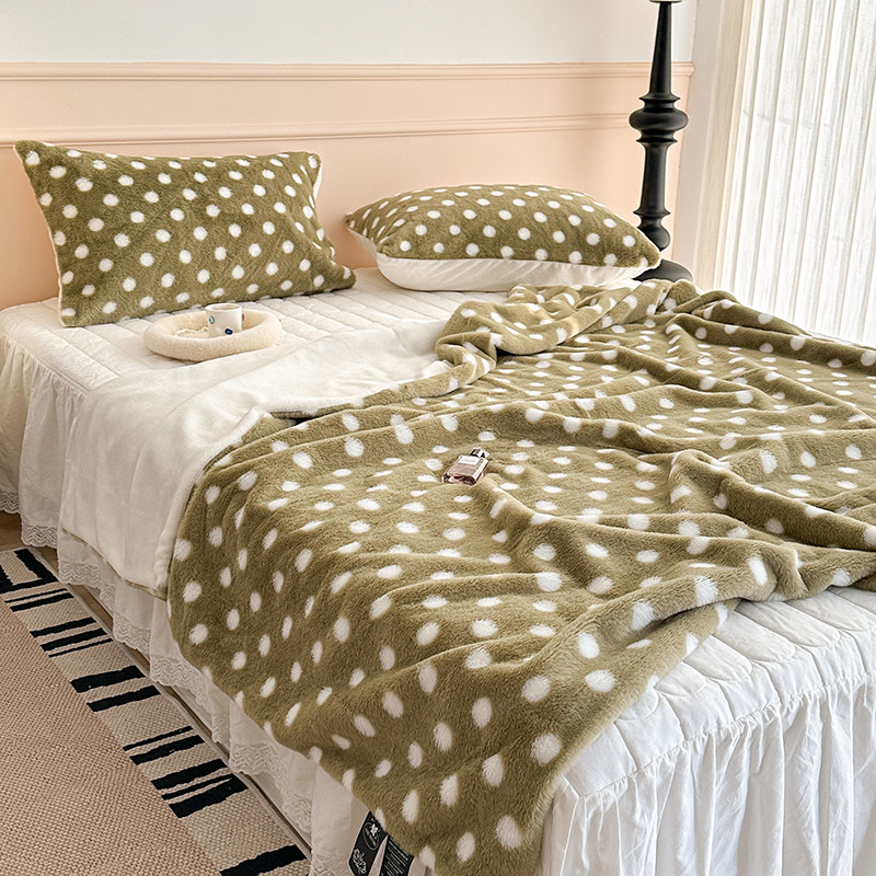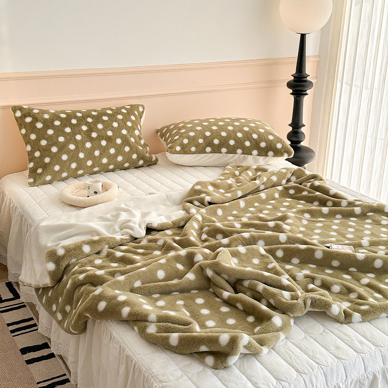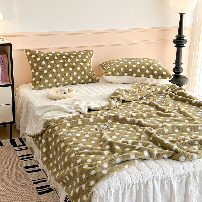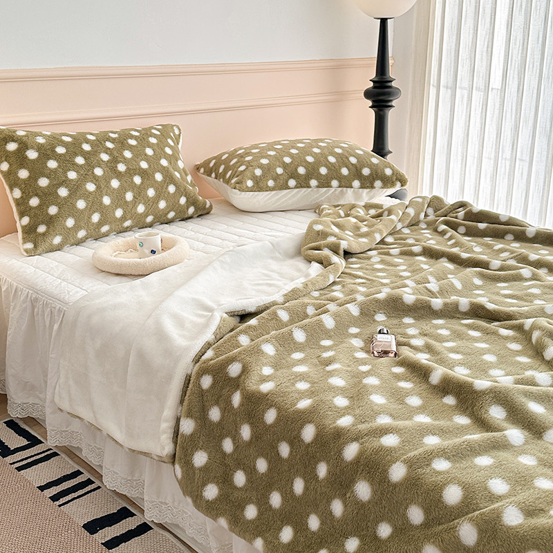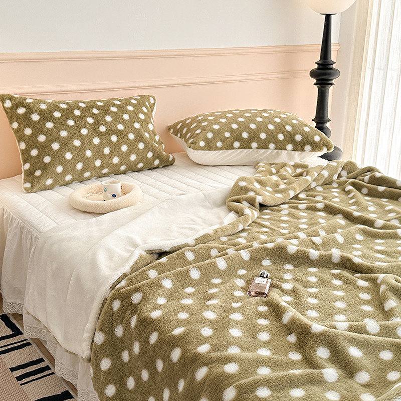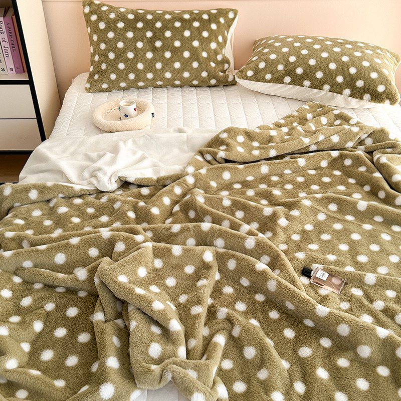 昔可 2023新款波点兔兔绒毛毯 毛毯抹茶绿波点