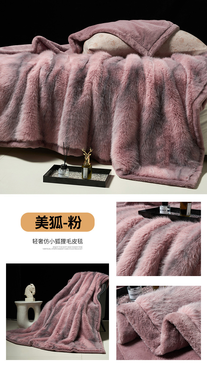 商品名称:轻奢豹点虎纹仿皮毛沙发双人床边狐狸毛毯婚庆别墅公寓拉舍尔毯子美狐-粉