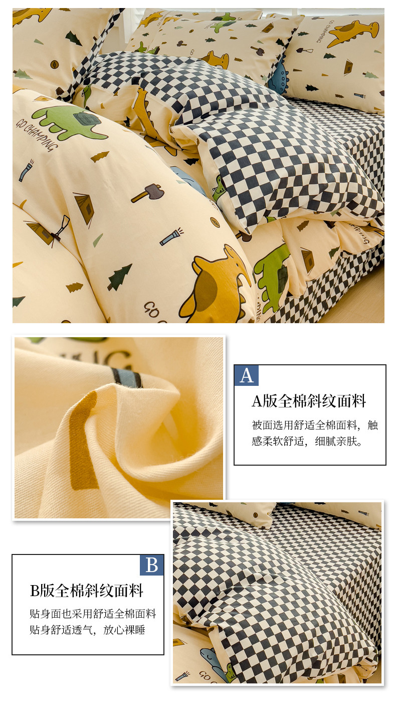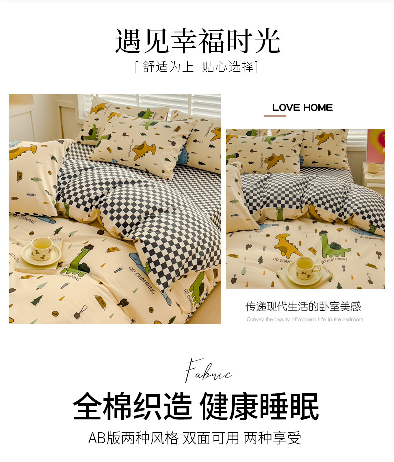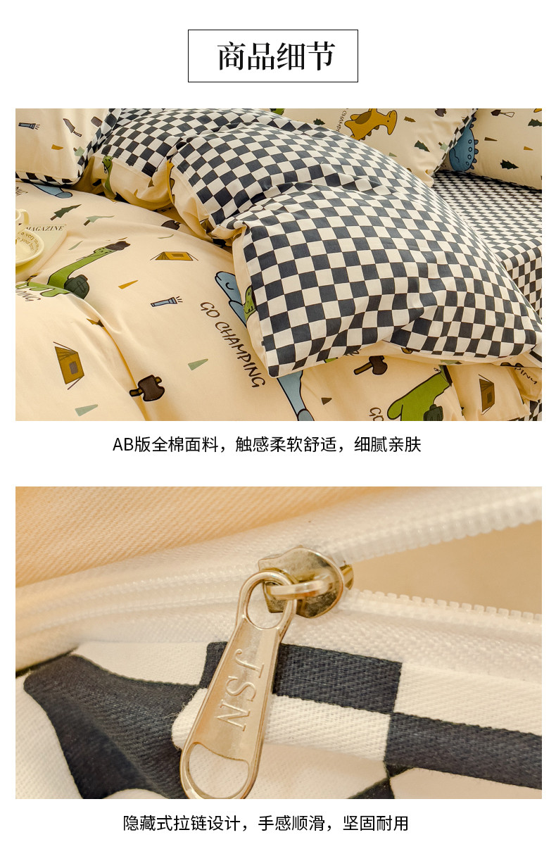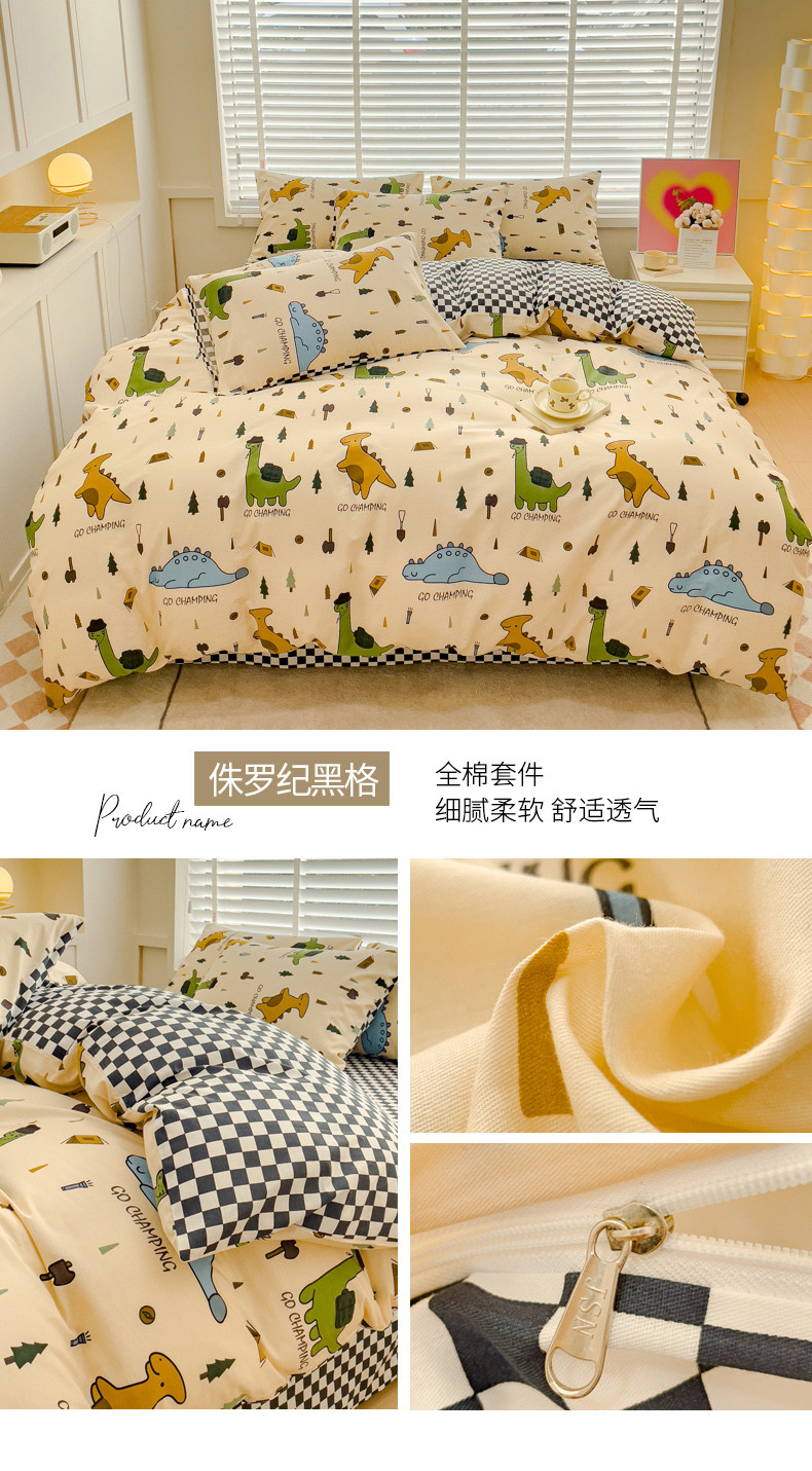 当前位置: 91家纺网 > 商品网购 > 床品套件 > 四件套 > 全棉普通四件套 > 金丝鸟 2023新款全棉可爱卡通印花小清新四件套-第一批 侏罗纪 黑格