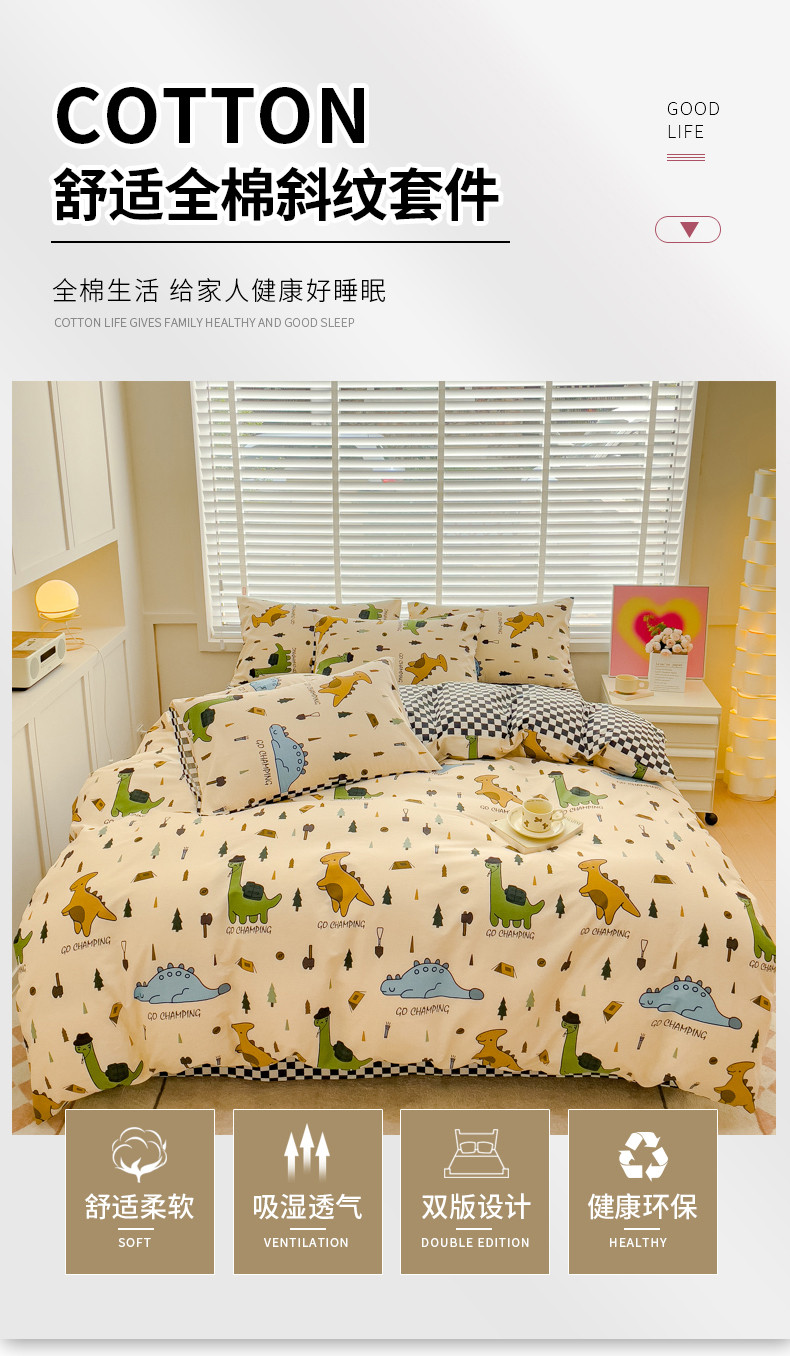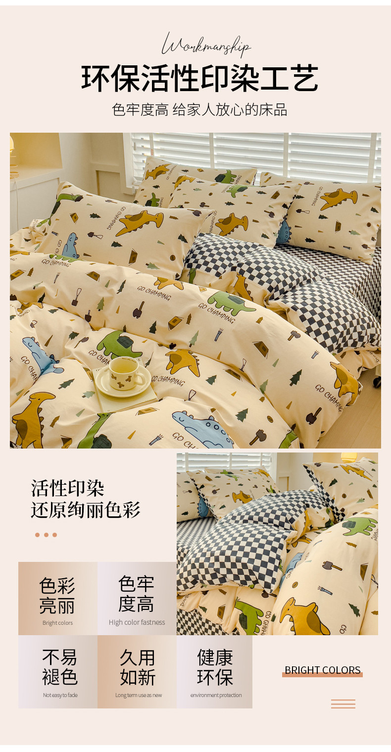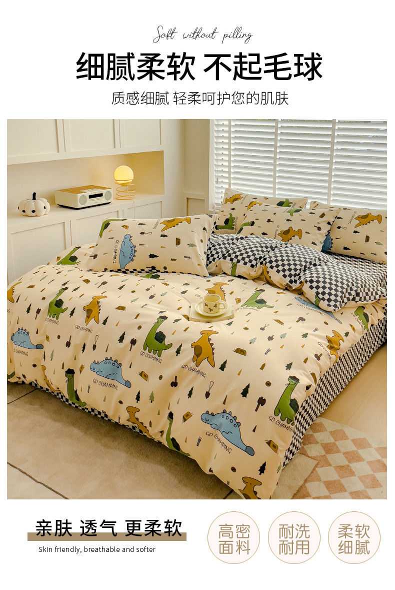 当前位置: 91家纺网 > 商品网购 > 床品套件 > 四件套 > 全棉普通四件套 > 金丝鸟 2023新款全棉可爱卡通印花小清新四件套-第一批 侏罗纪 黑格