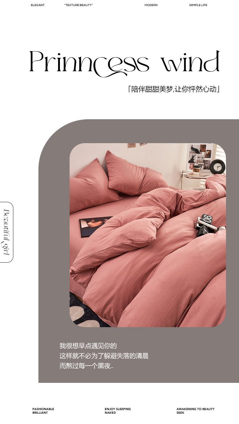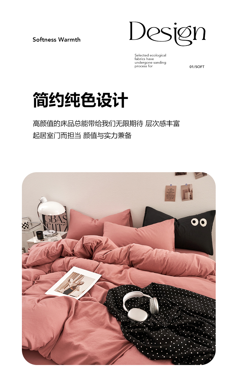 当前位置: 91家纺网 > 商品网购 > 床品套件 > 四件套 > 水洗棉四件套 > 卡迪熊家纺 2024新款ins风超柔褶皱亲肤磨毛水洗m四件套纯色系列 梦露粉