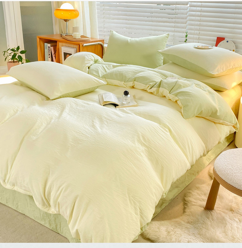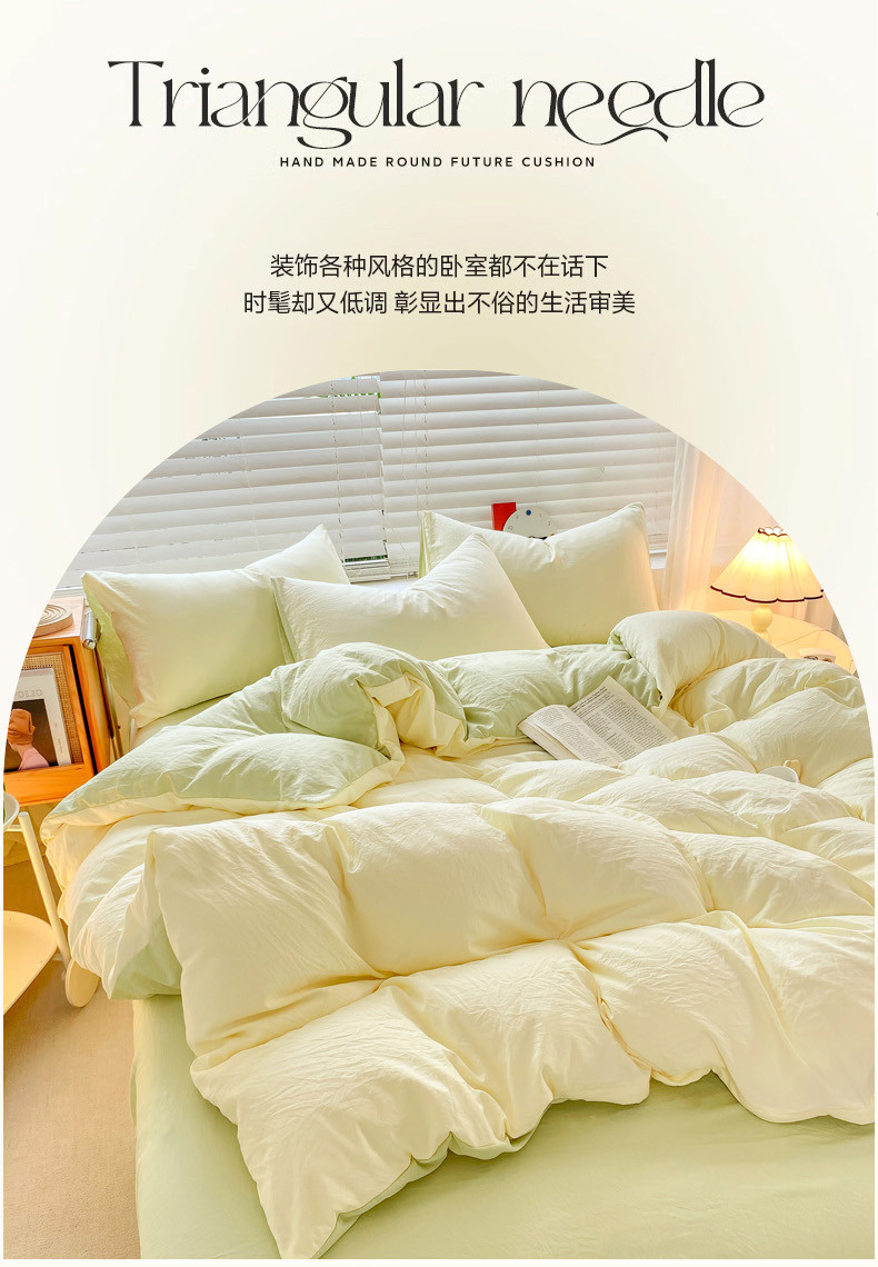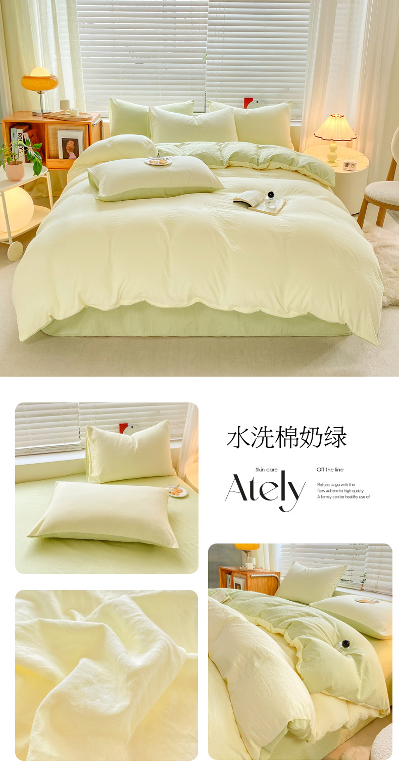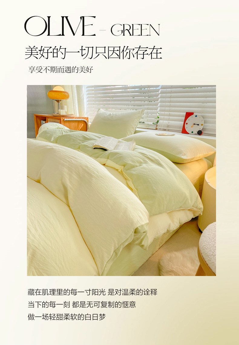 当前位置: 91家纺网 > 商品网购 > 床品套件 > 四件套 > 水洗棉四件套 > 雨帆家纺 2024新款简约亲肤水洗棉双拼四件套 水洗棉奶绿