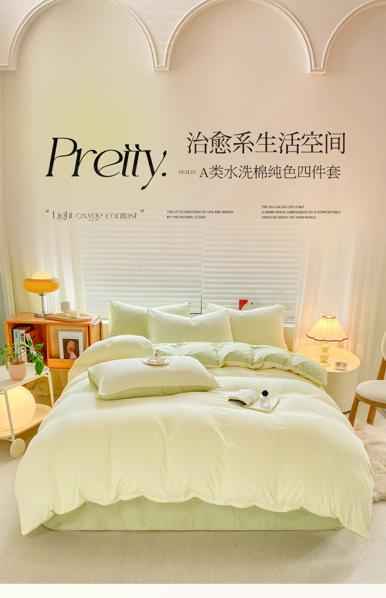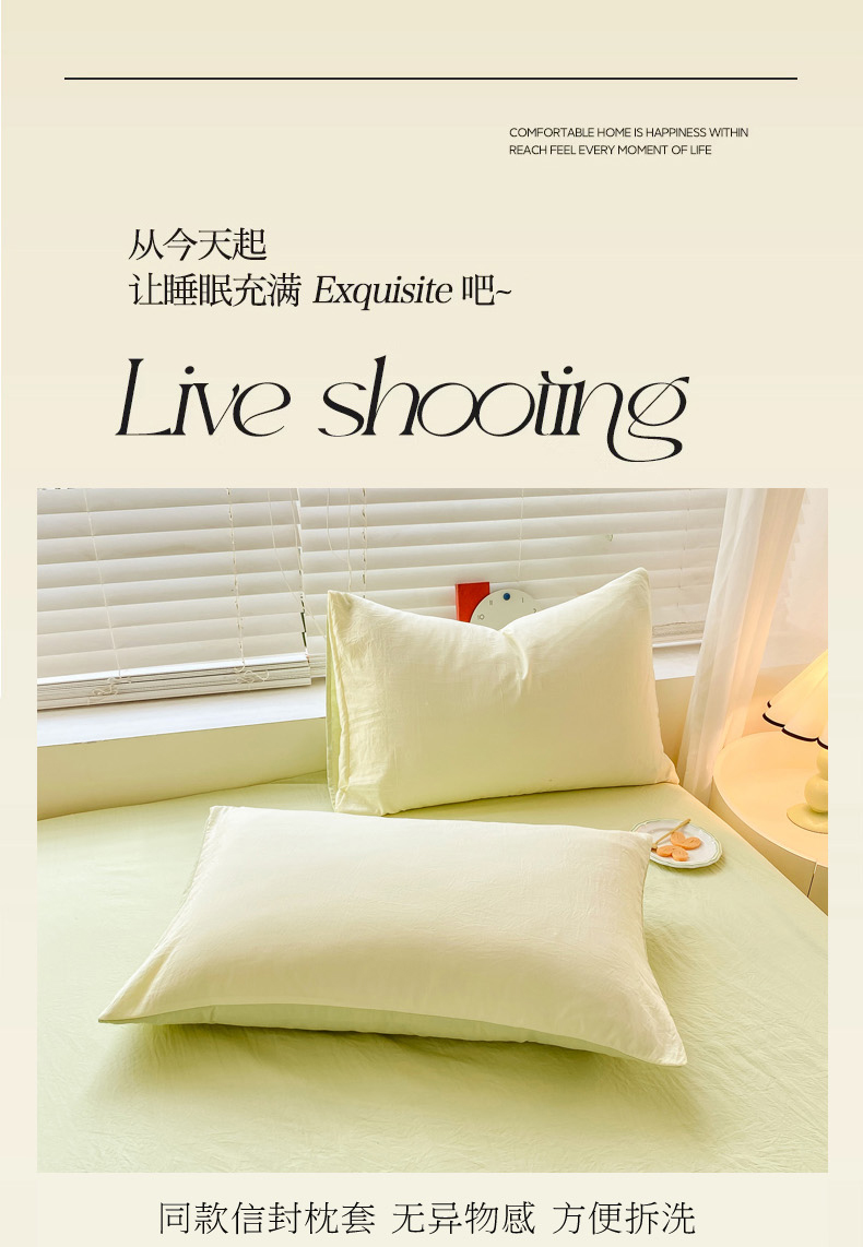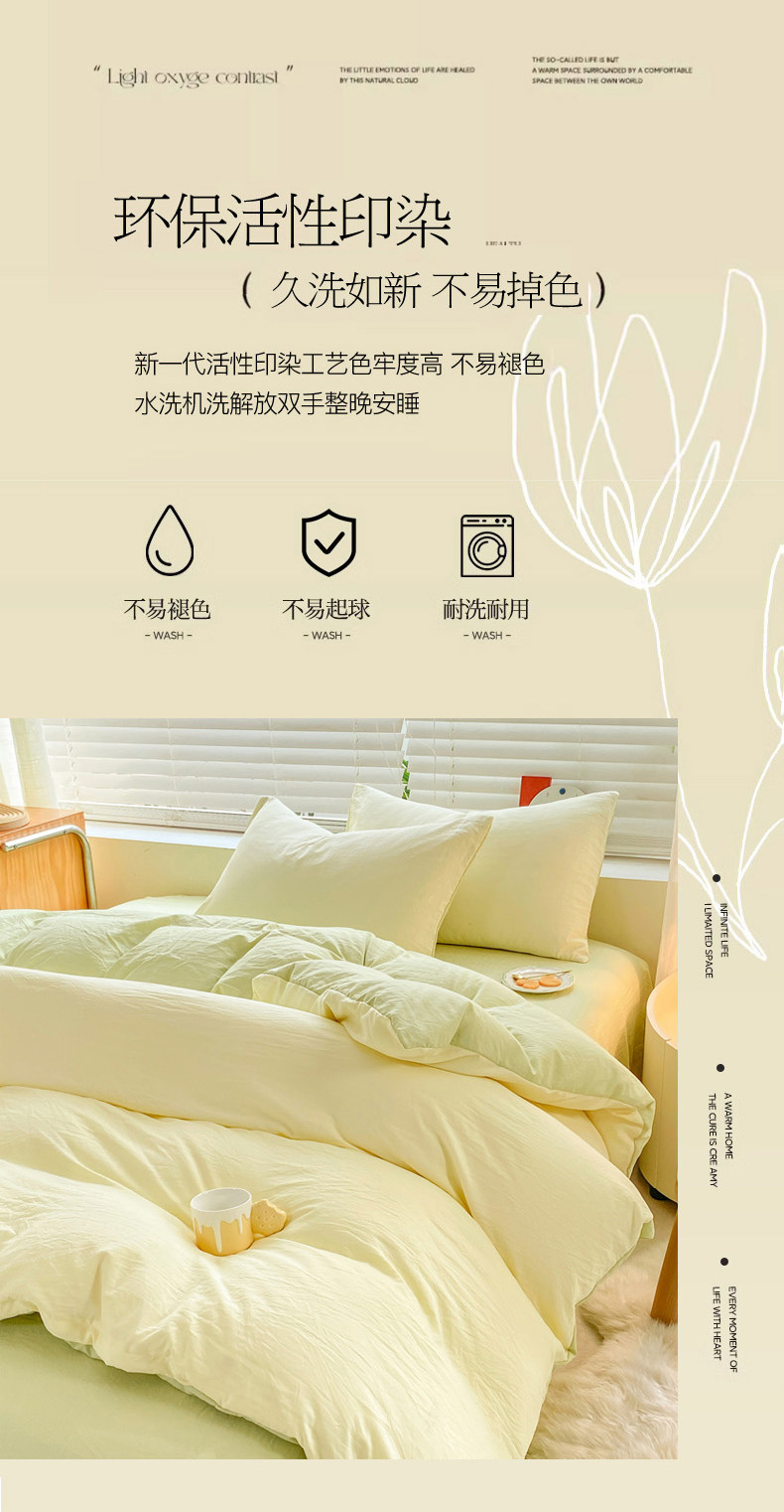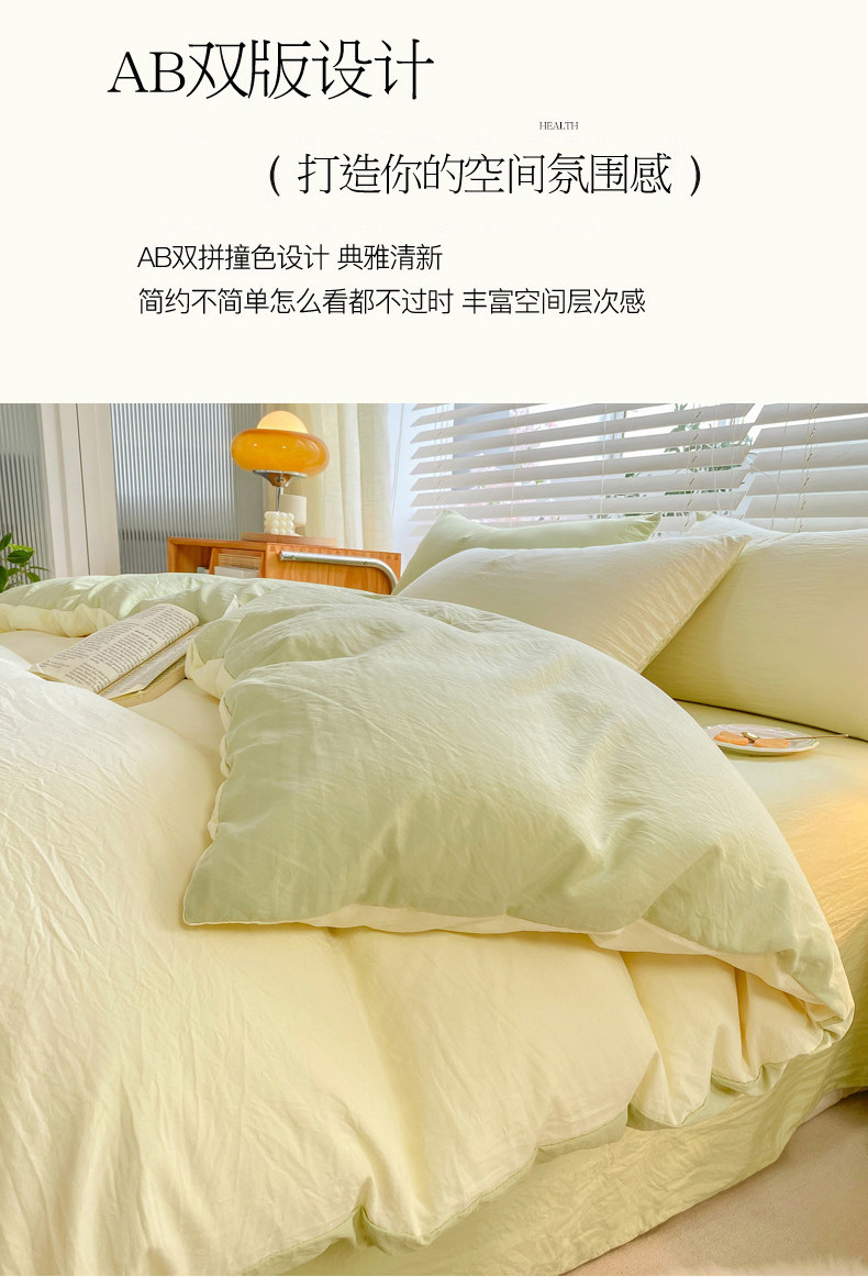 当前位置: 91家纺网 > 商品网购 > 床品套件 > 四件套 > 水洗棉四件套 > 雨帆家纺 2024新款简约亲肤水洗棉双拼四件套 水洗棉奶绿