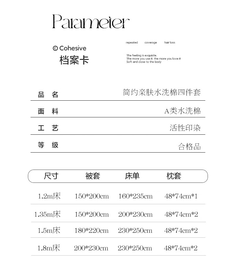 1.5m床单款四件套(被套200*230cm) | ¥50.00 |