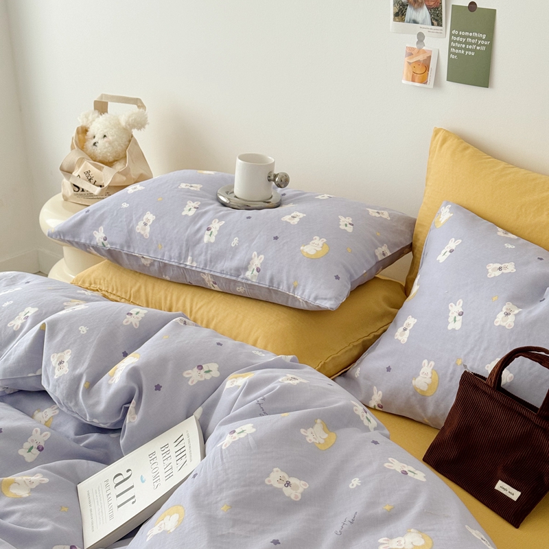 安莱生活 2024新款高奢全棉新疆棉双层纱四件套 晚安熊