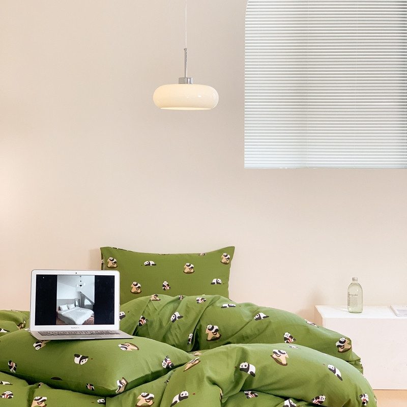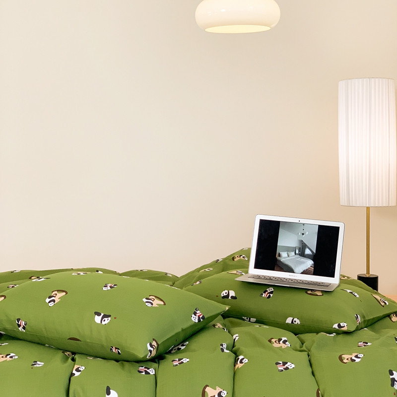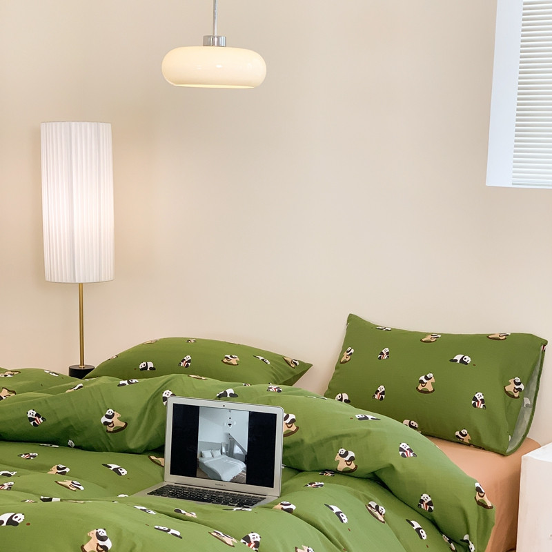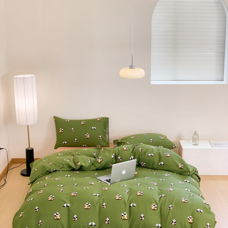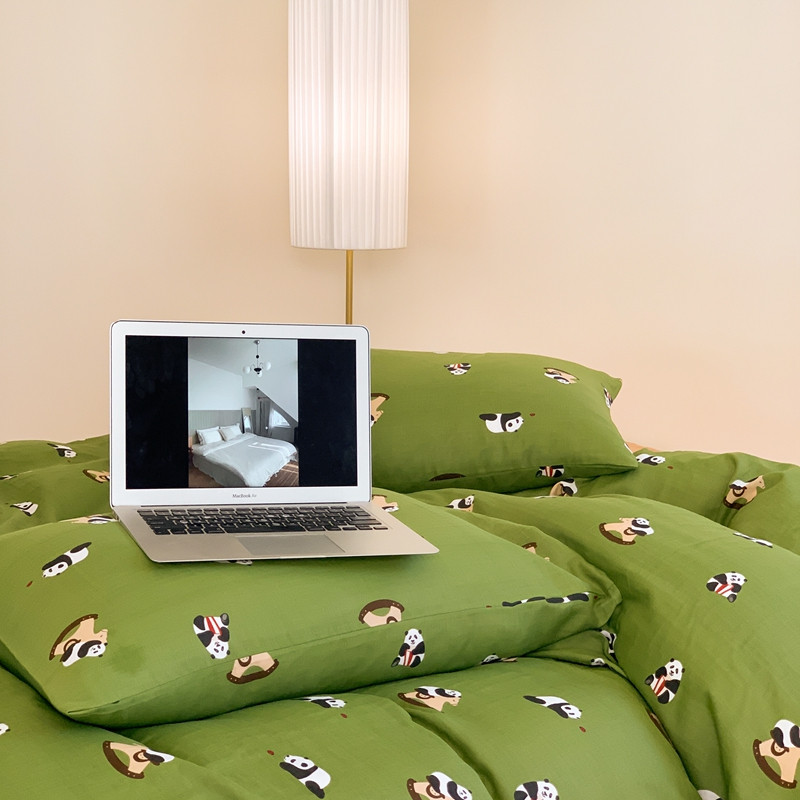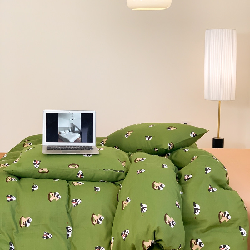 源启生活 新原创A类双层纱布全棉印花四件套纯棉三件套 绿色熊猫