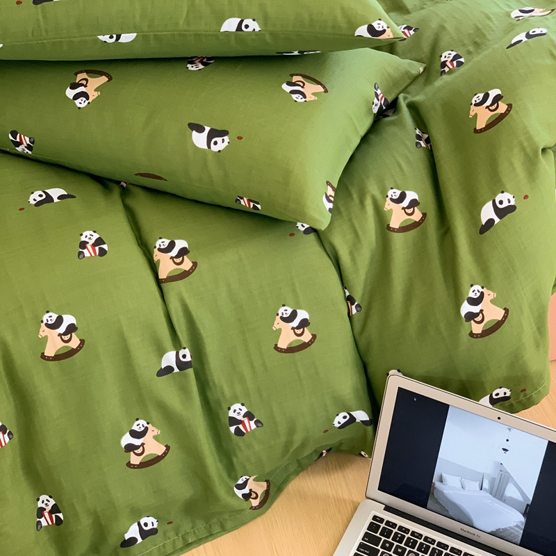 商品名称:源启生活 新原创A类双层纱布全棉印花四件套纯棉三件套 绿色熊猫
