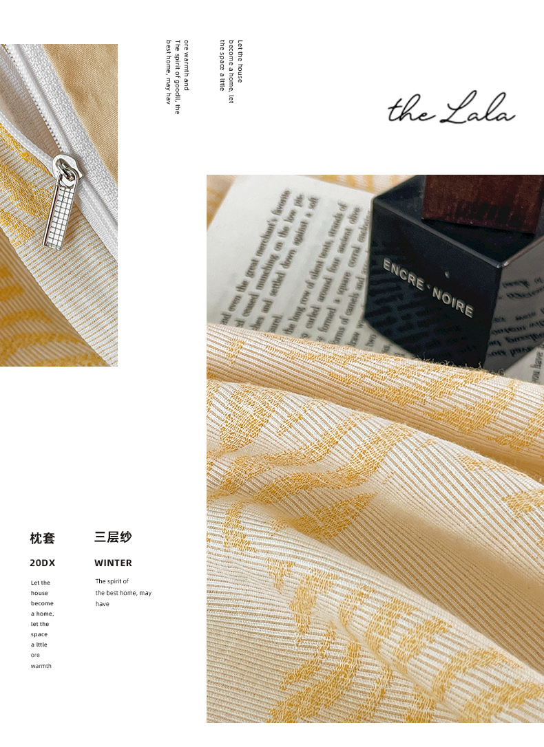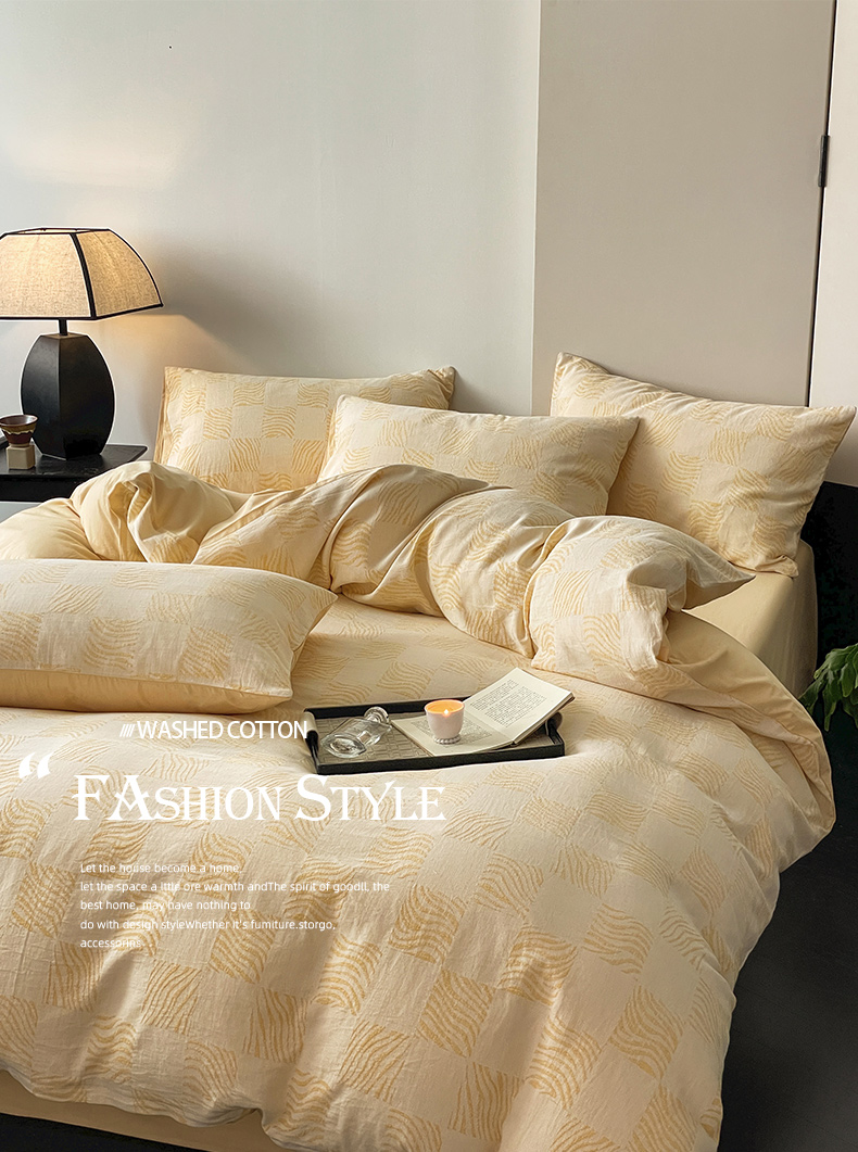 商品名称:ab家纺 2024新款全棉三层纱提花四件套系列-方格 方格杏