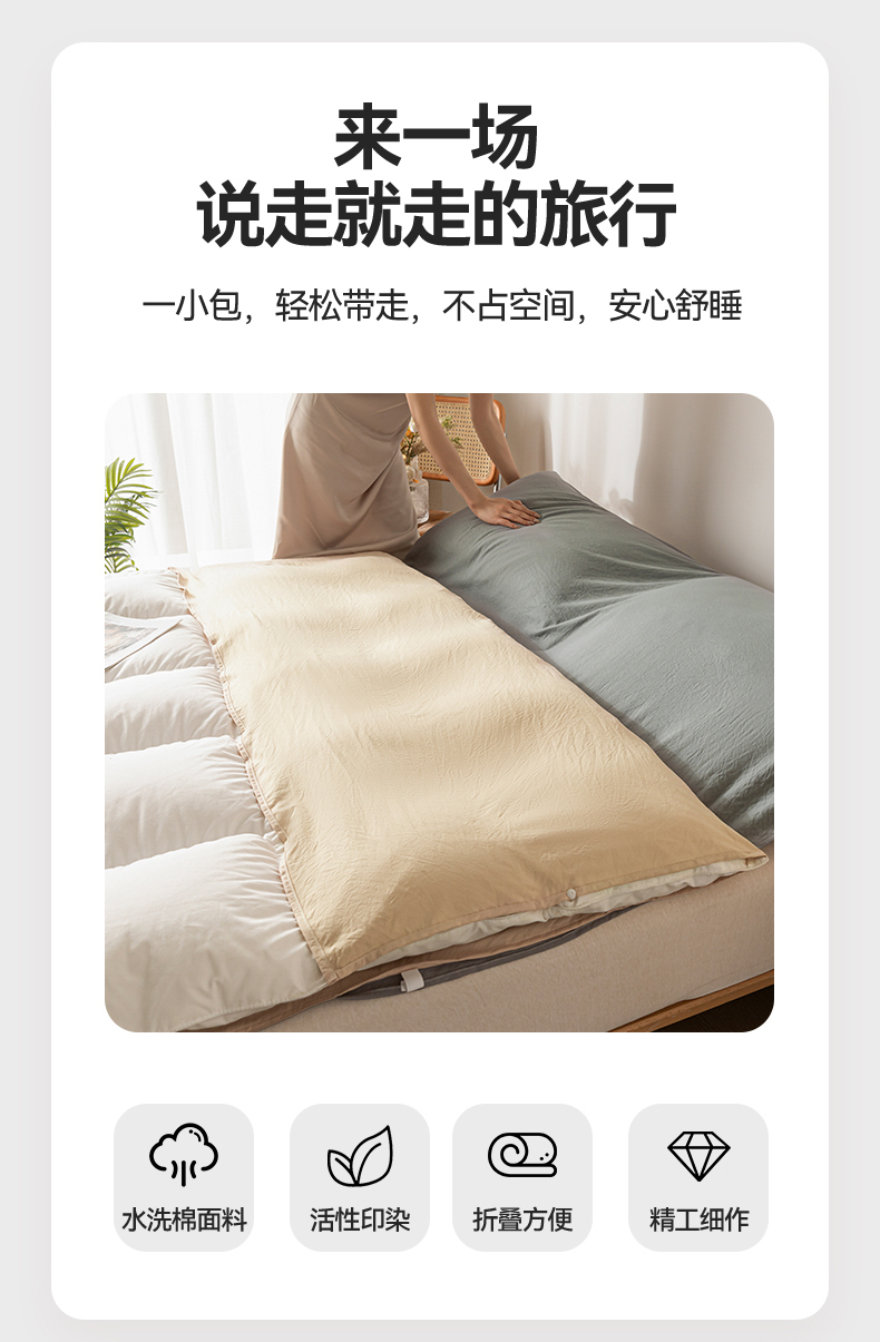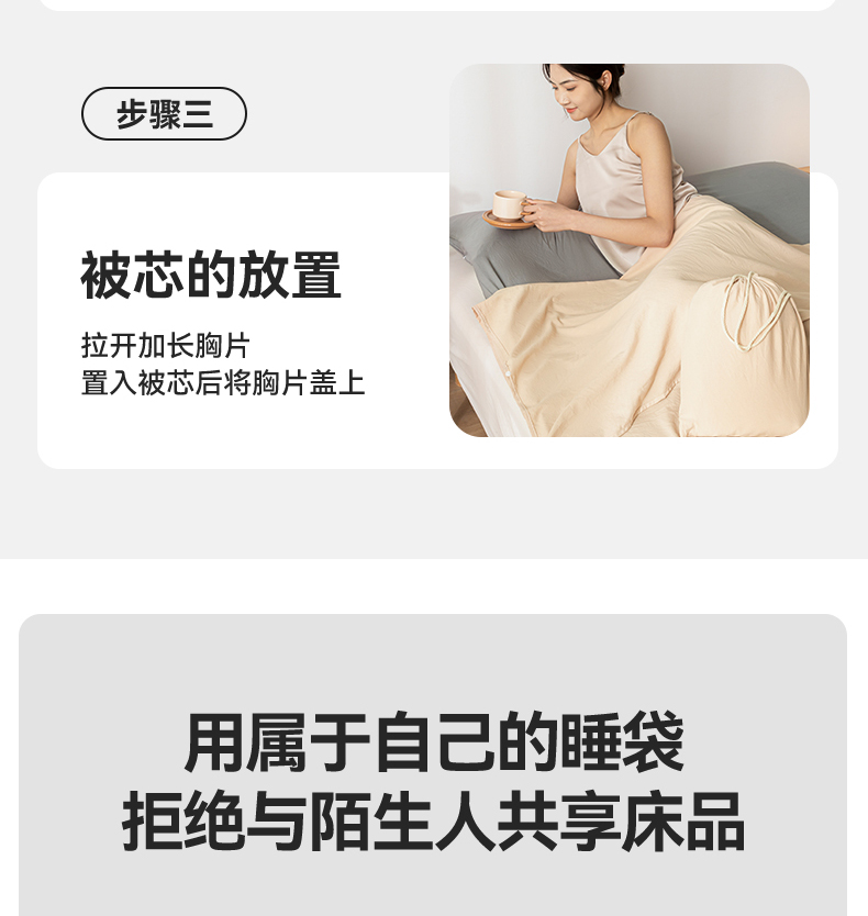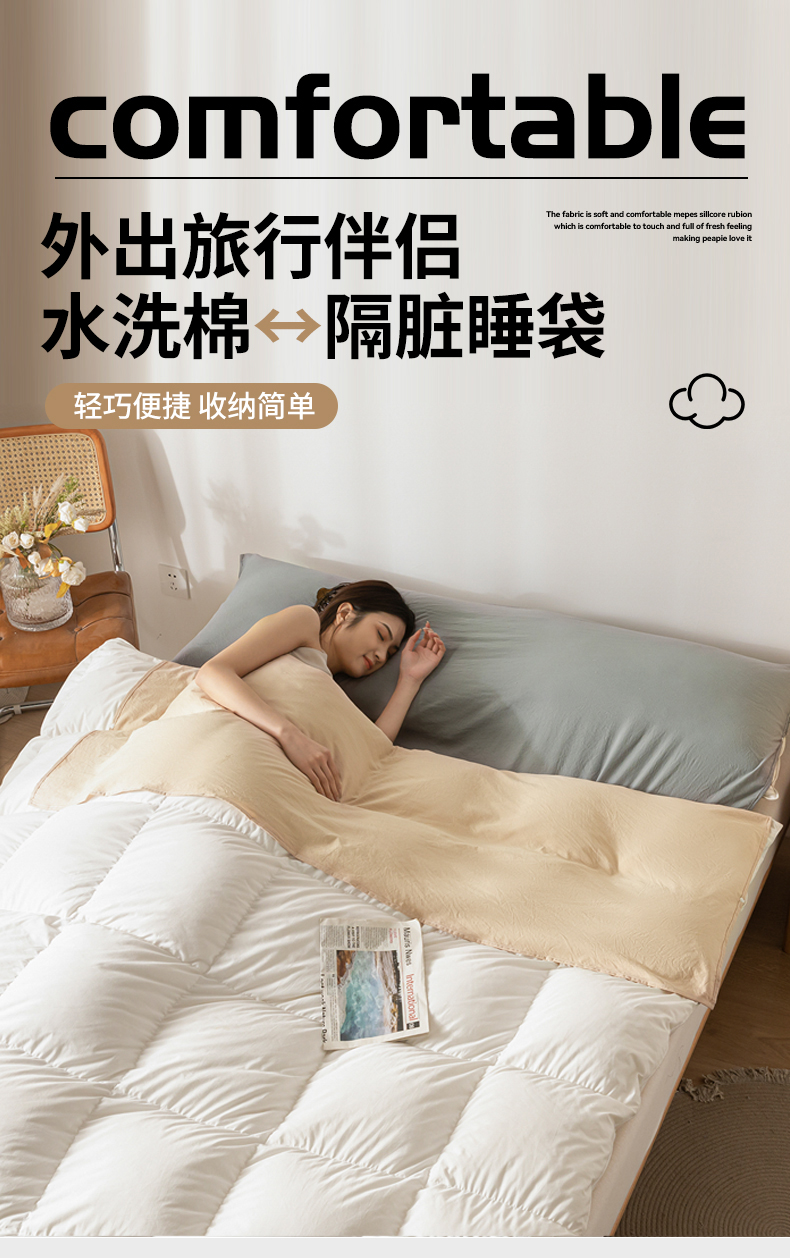 商品名称:古吉梦 2024新款水洗棉隔脏睡袋 奶茶+中灰