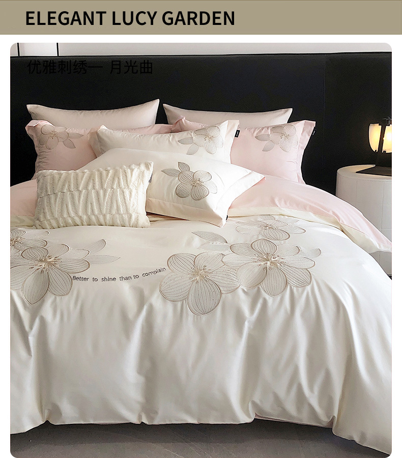 商品名称:卡姿家纺 2024新款春夏全棉优雅刺绣四件套—月光曲 月光曲白