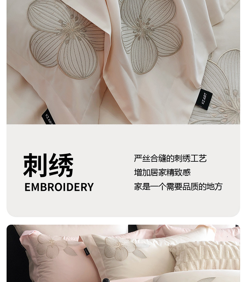 (总)卡姿家纺 2025春夏新款轻奢优雅刺绣金丝羽系列四件套,金丝羽白,金丝羽粉,金丝羽蓝,金丝羽紫