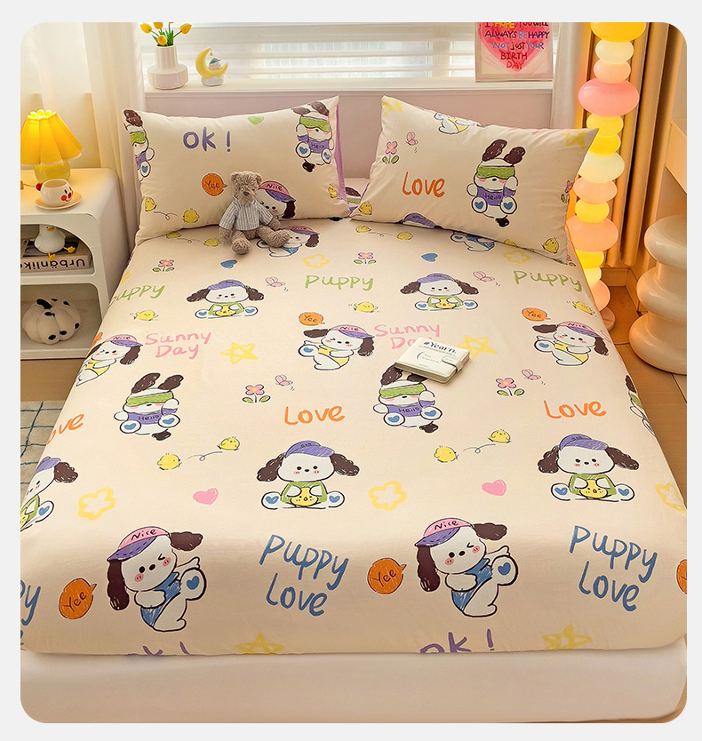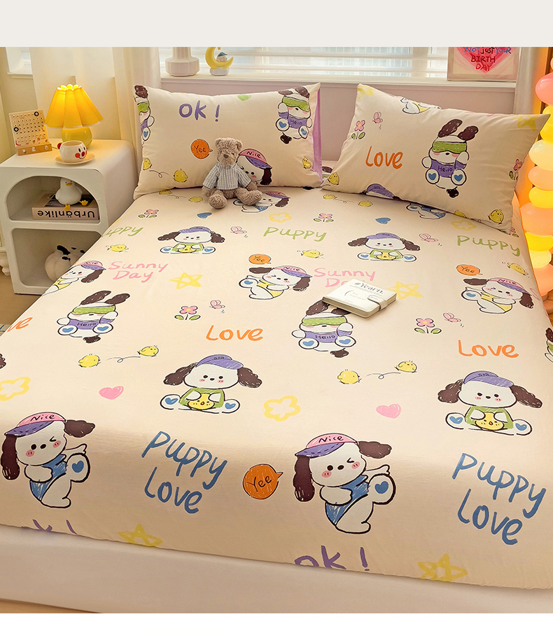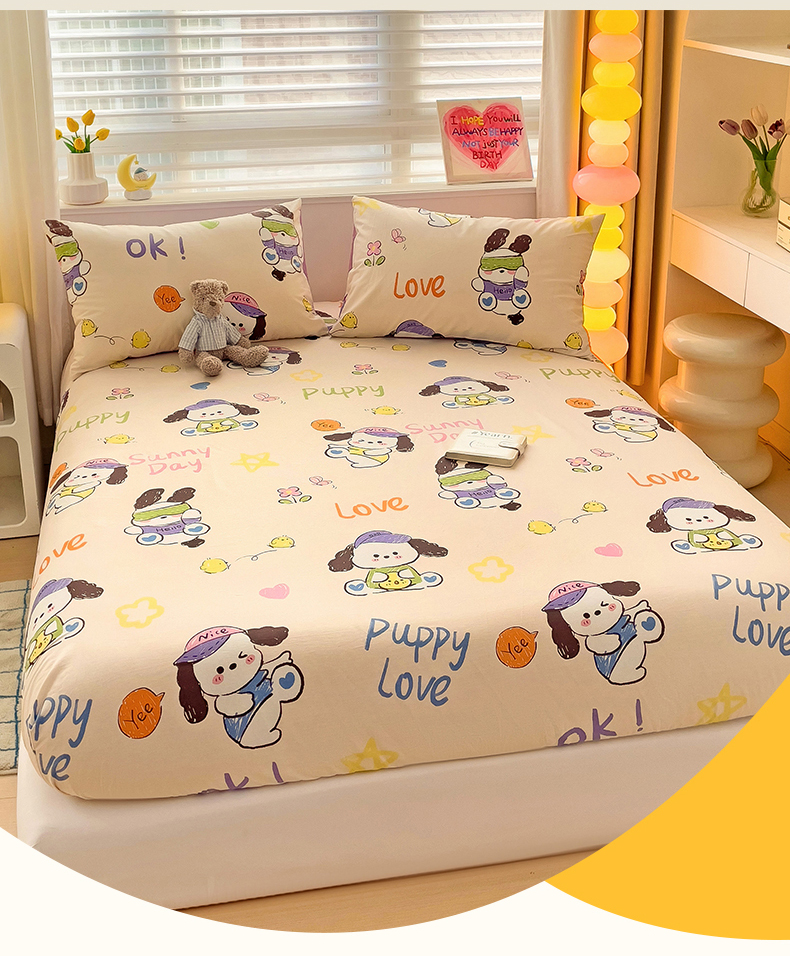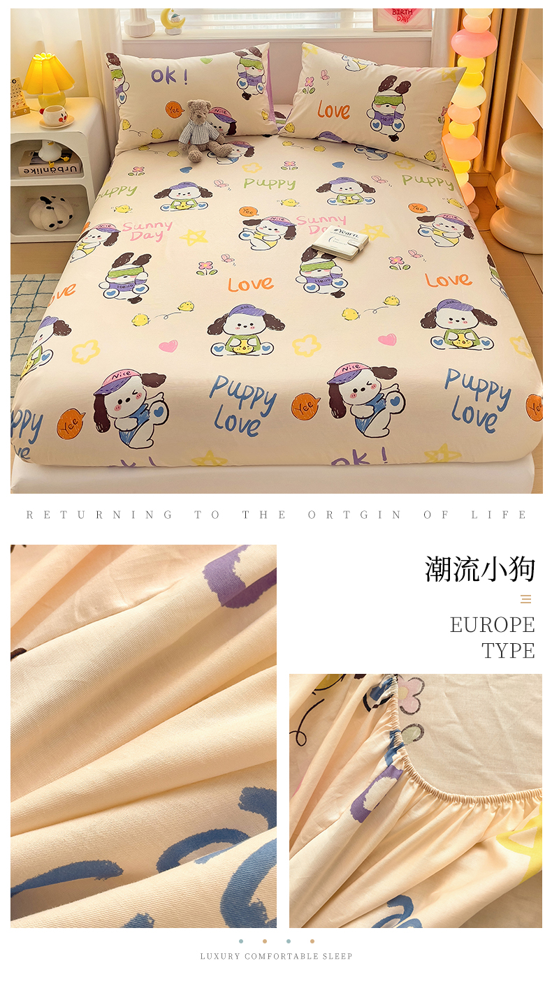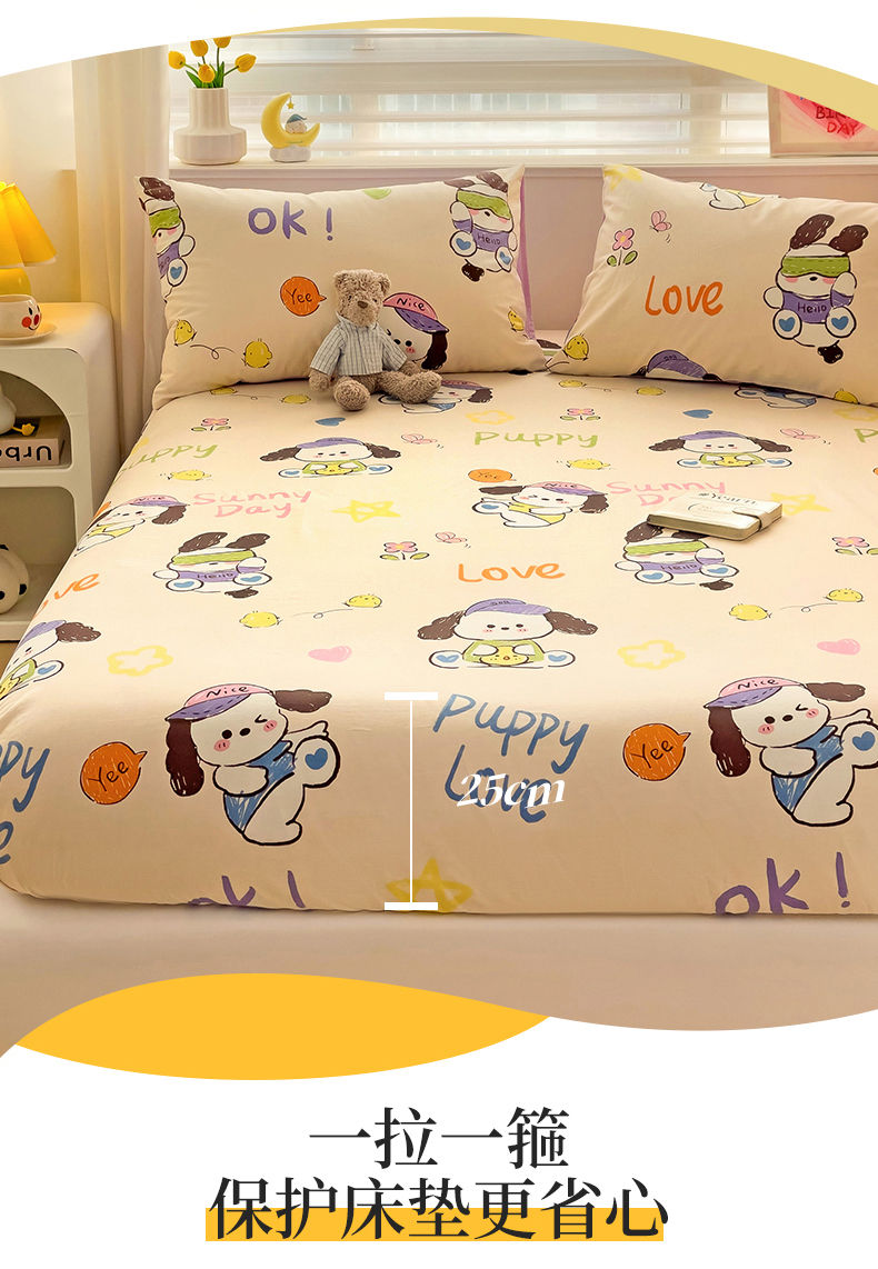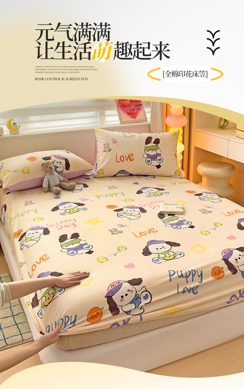• 91家纺网 家纺一手货源 找家纺 名兮家居 2024新款全棉印花单床笠 潮流小狗
